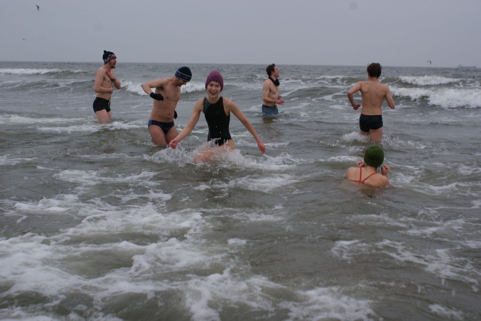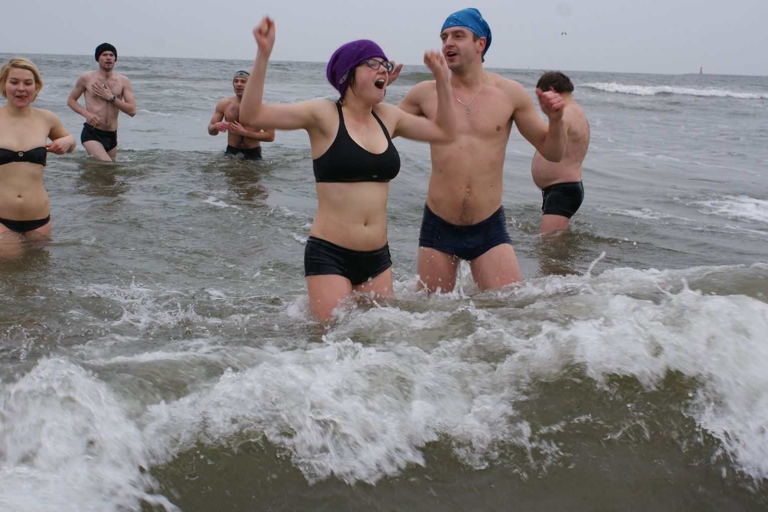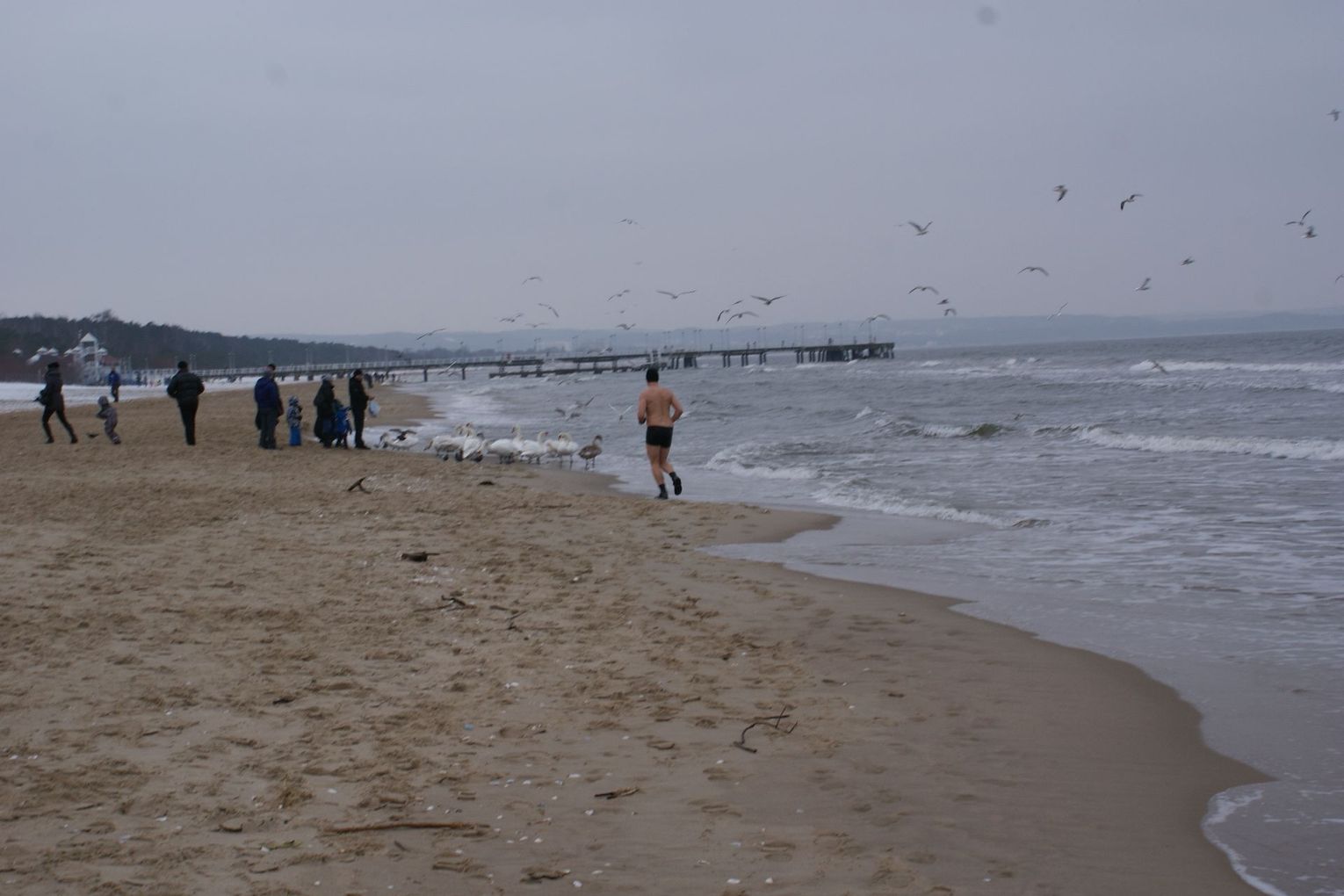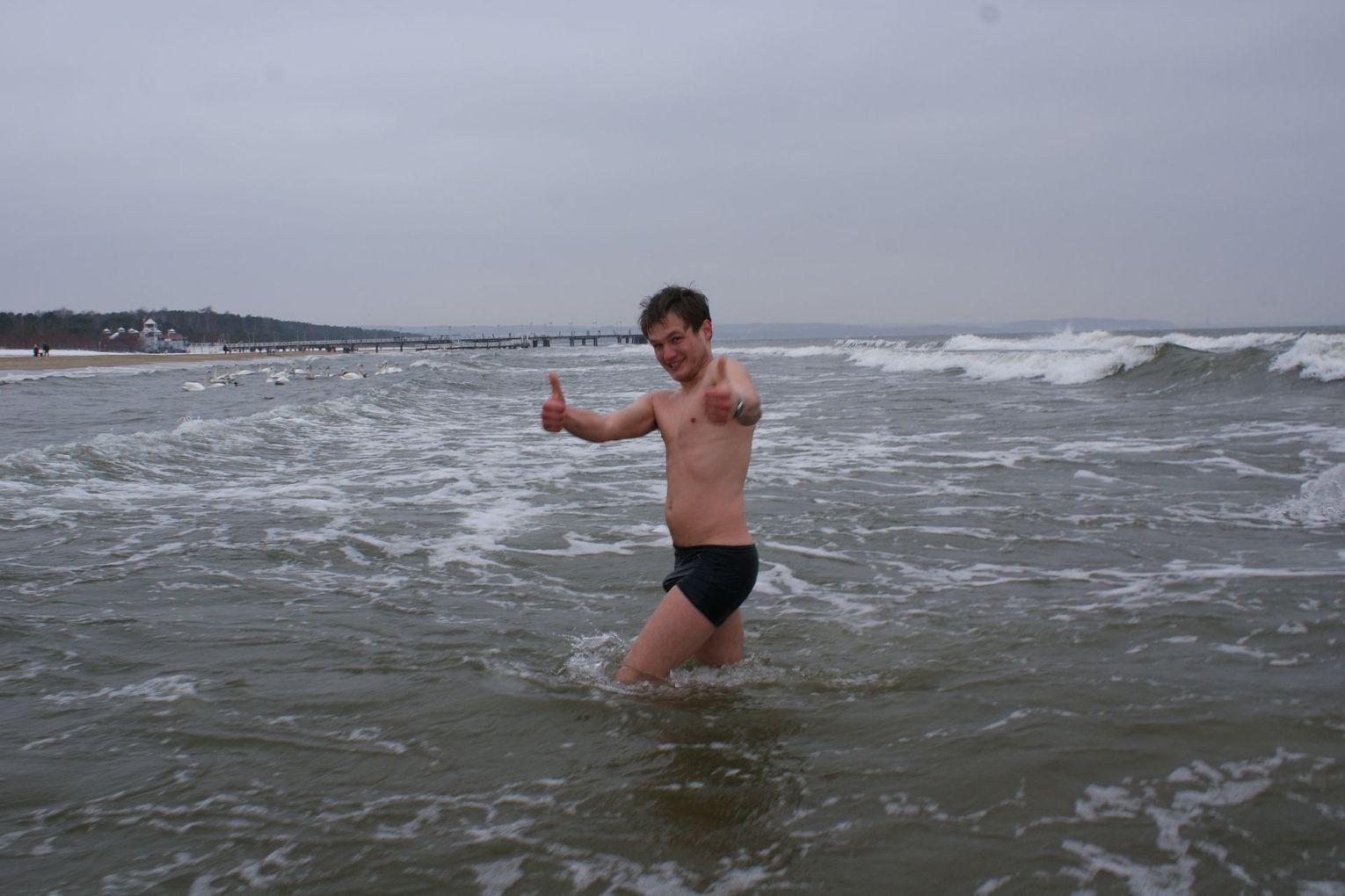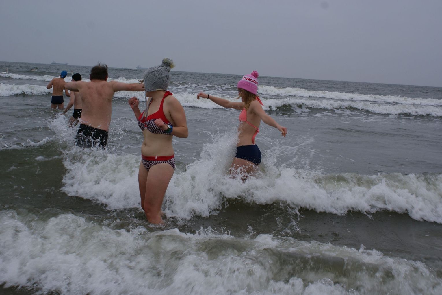 W Brzeźnie, na plaży coraz więcej chętnych do kąpieli w lodowatej wodzie. W niedzielę była wysoka fala i wspaniała zabawa. Temperatura jak dla morsów "letnia" - "tylko" minus 2 stopnie.