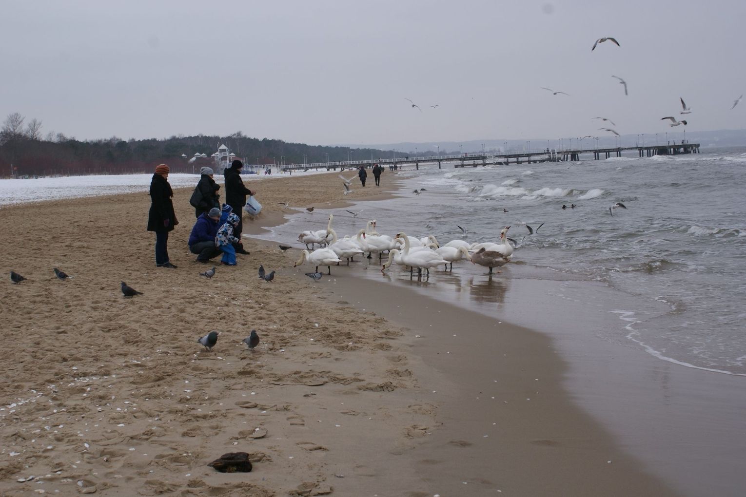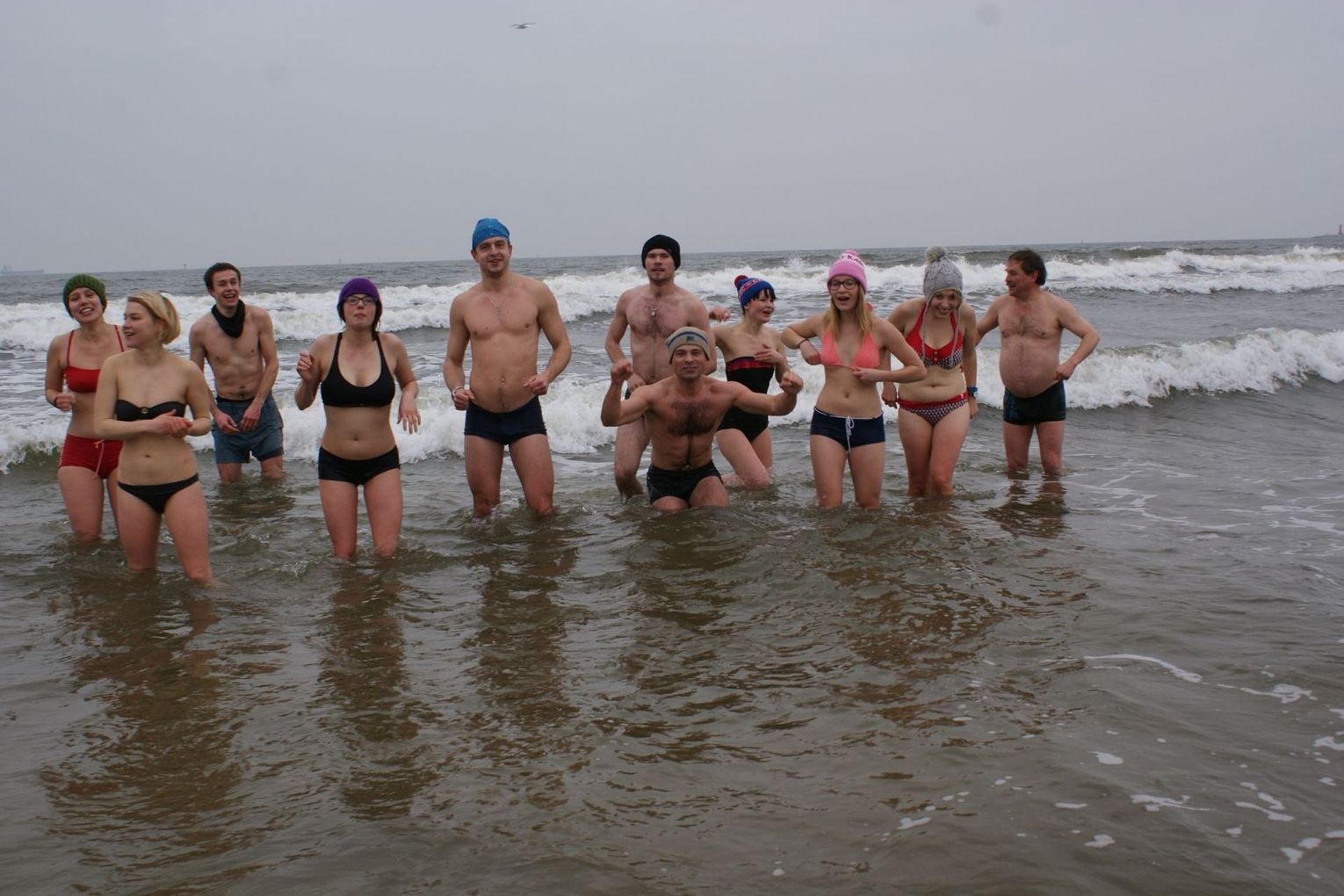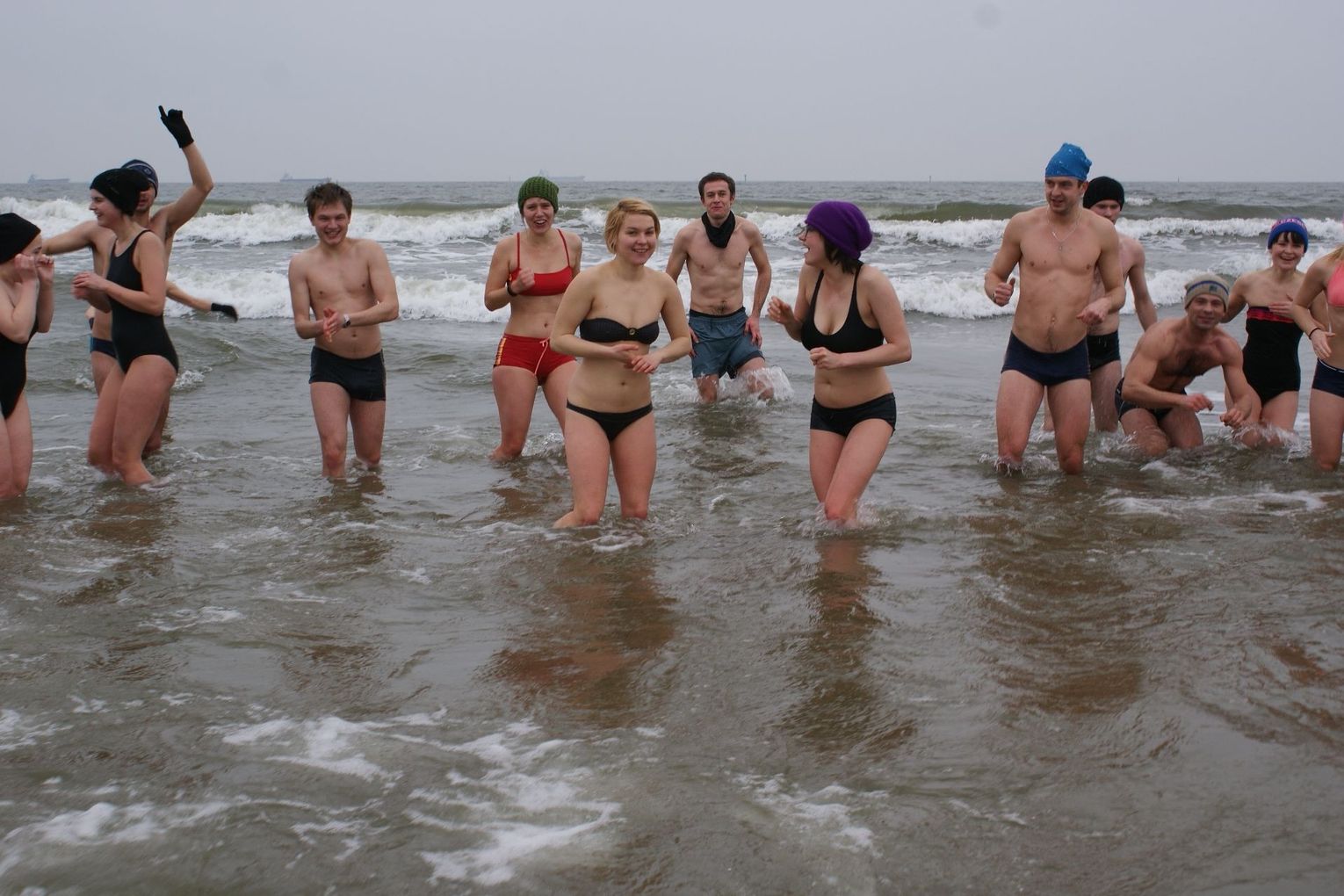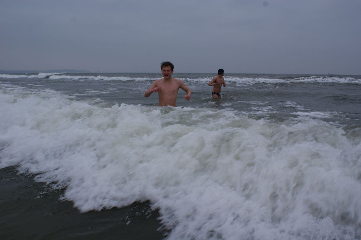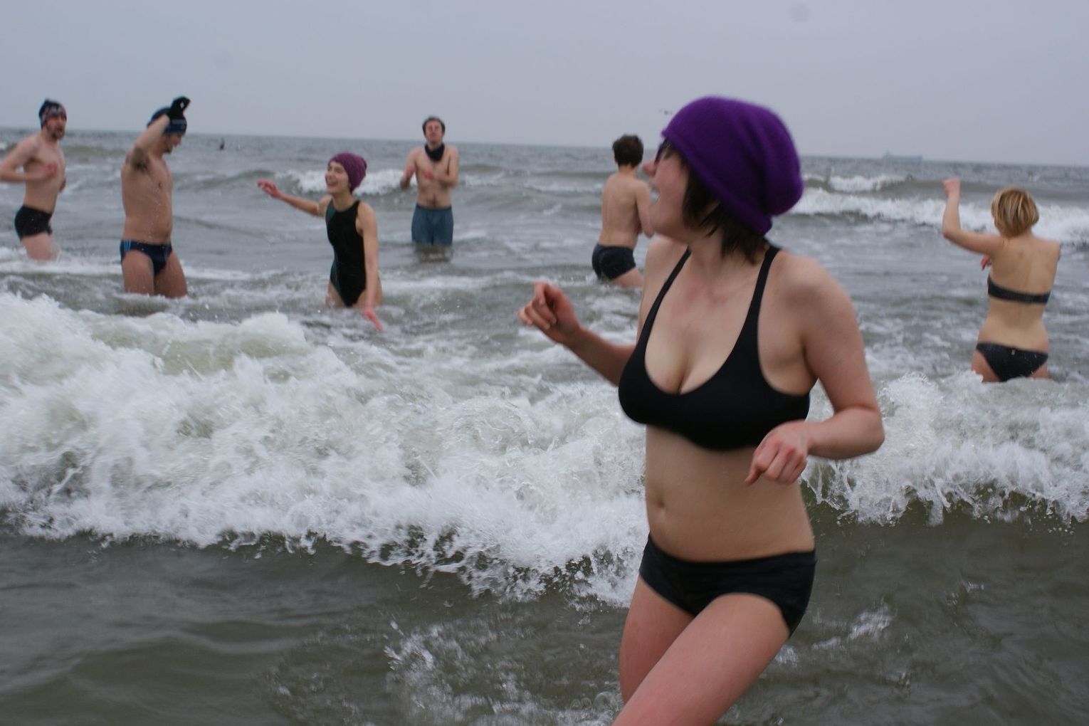 W Brzeźnie, na plaży coraz więcej chętnych do kąpieli w lodowatej wodzie. W niedzielę była wysoka fala i wspaniała zabawa. Temperatura jak dla morsów "letnia" - "tylko" minus 2 stopnie.
