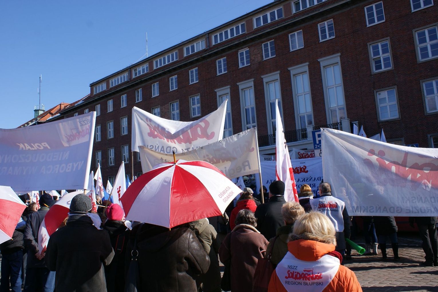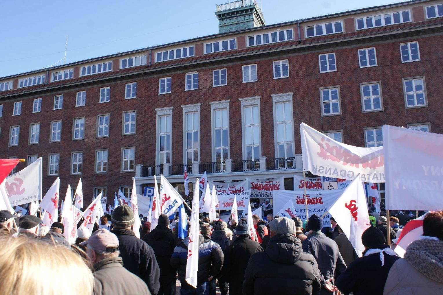Kilkaset osób wzięło udział w pomorskiej manifestacji solidarnościowej ze strajkującymi pracownikami na Śląsku. Liczne delegacje związków zawodowych oraz organizacji patriotyczno-narodowych przybyło o godz. 9 przed Urząd Wojewódzki aby wyrazić poparcie dla strajkującego w tym czasie Śląska.