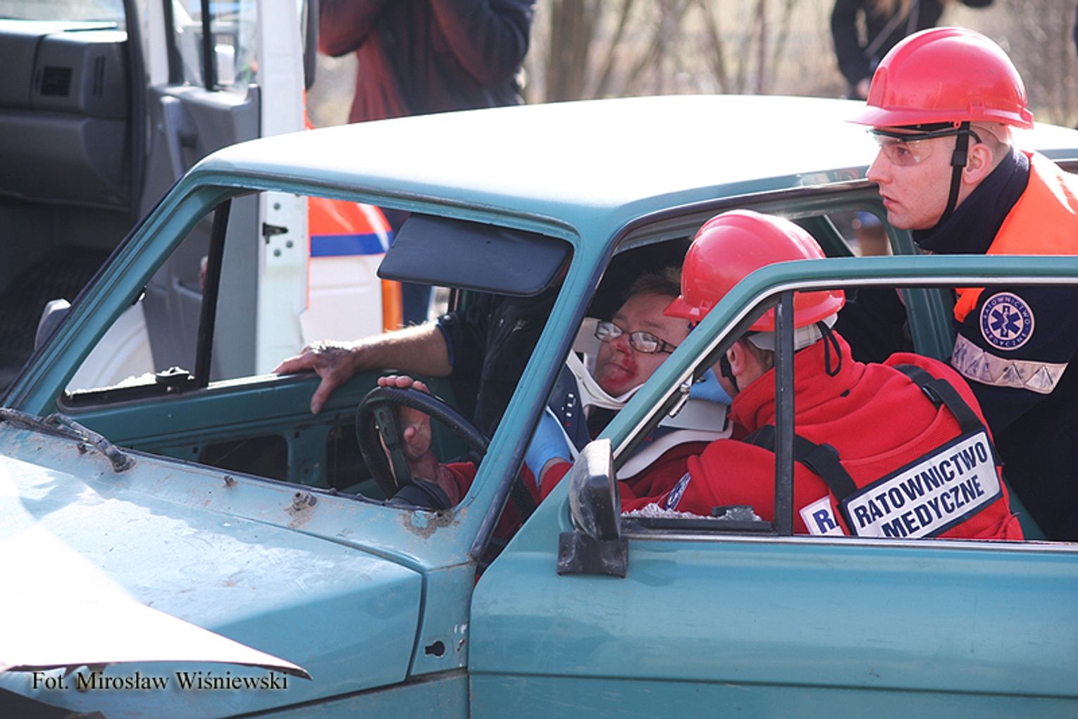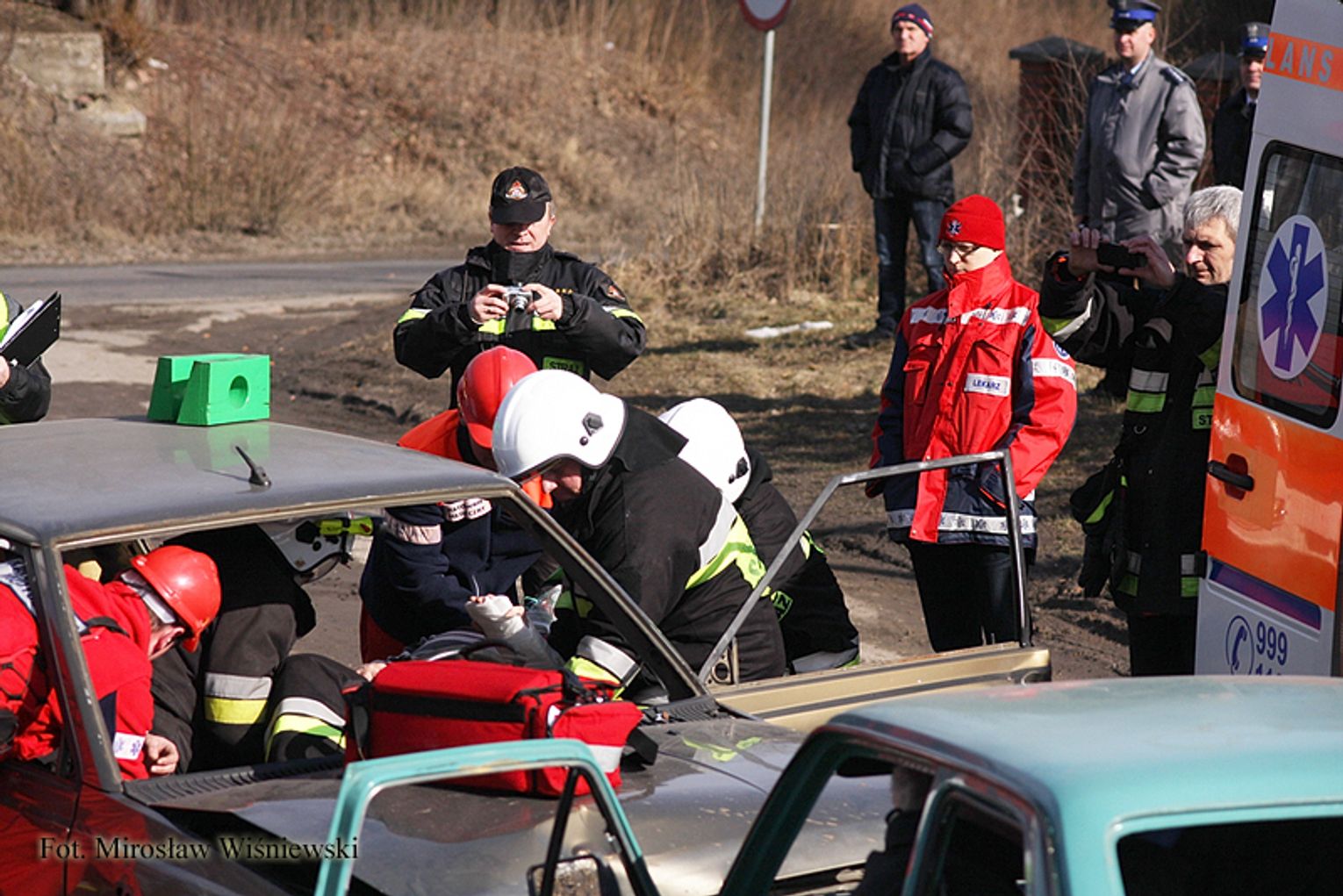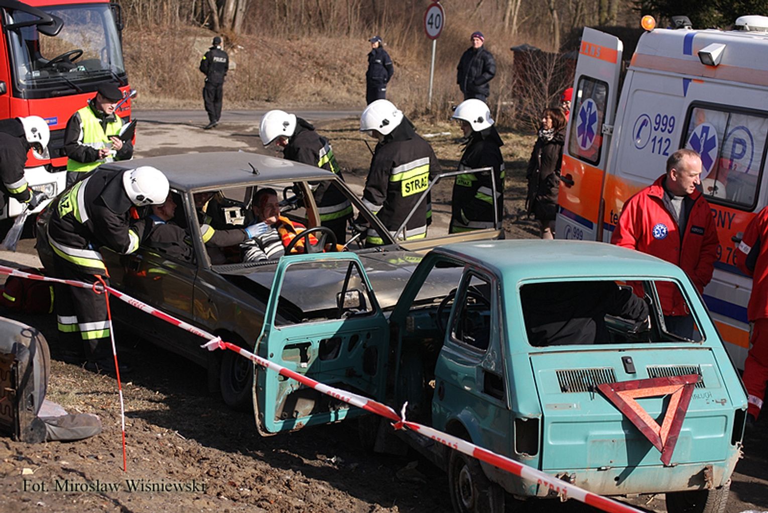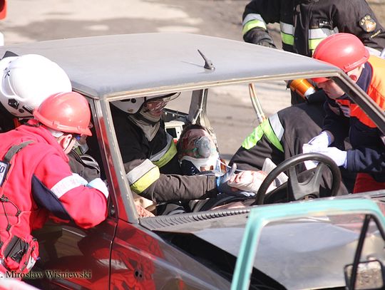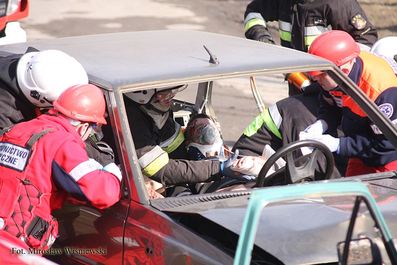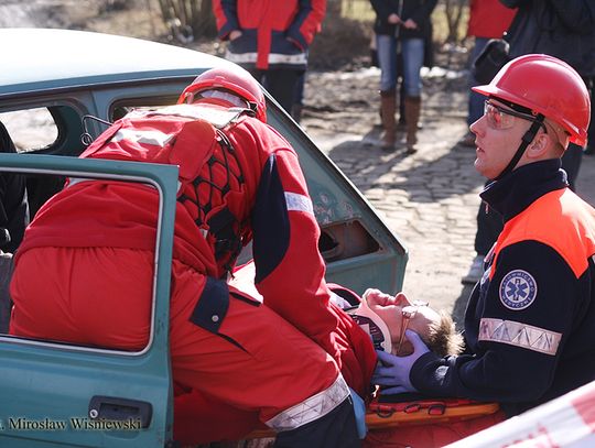 Wypadek drogowy - ćwiczenia służb ratowniczych