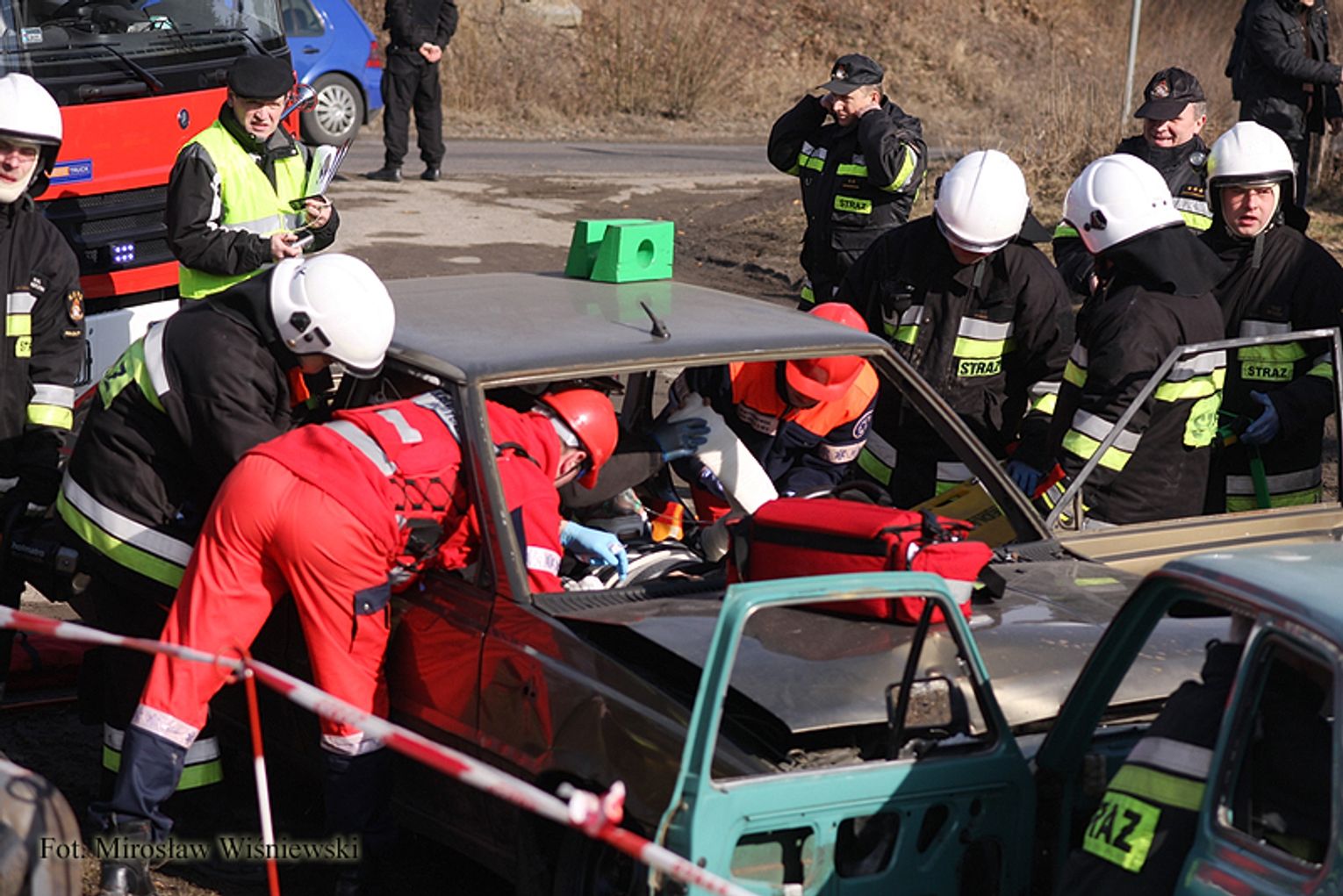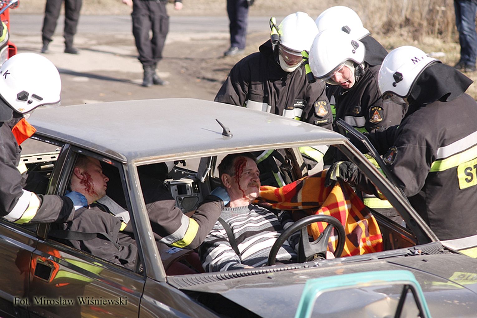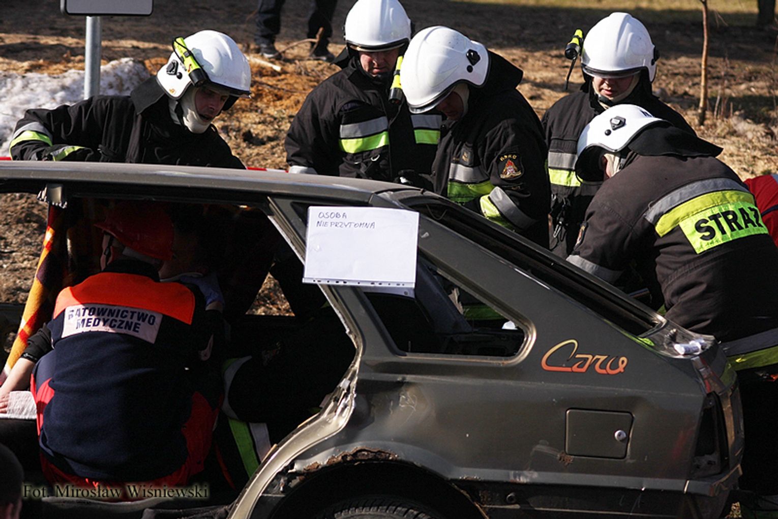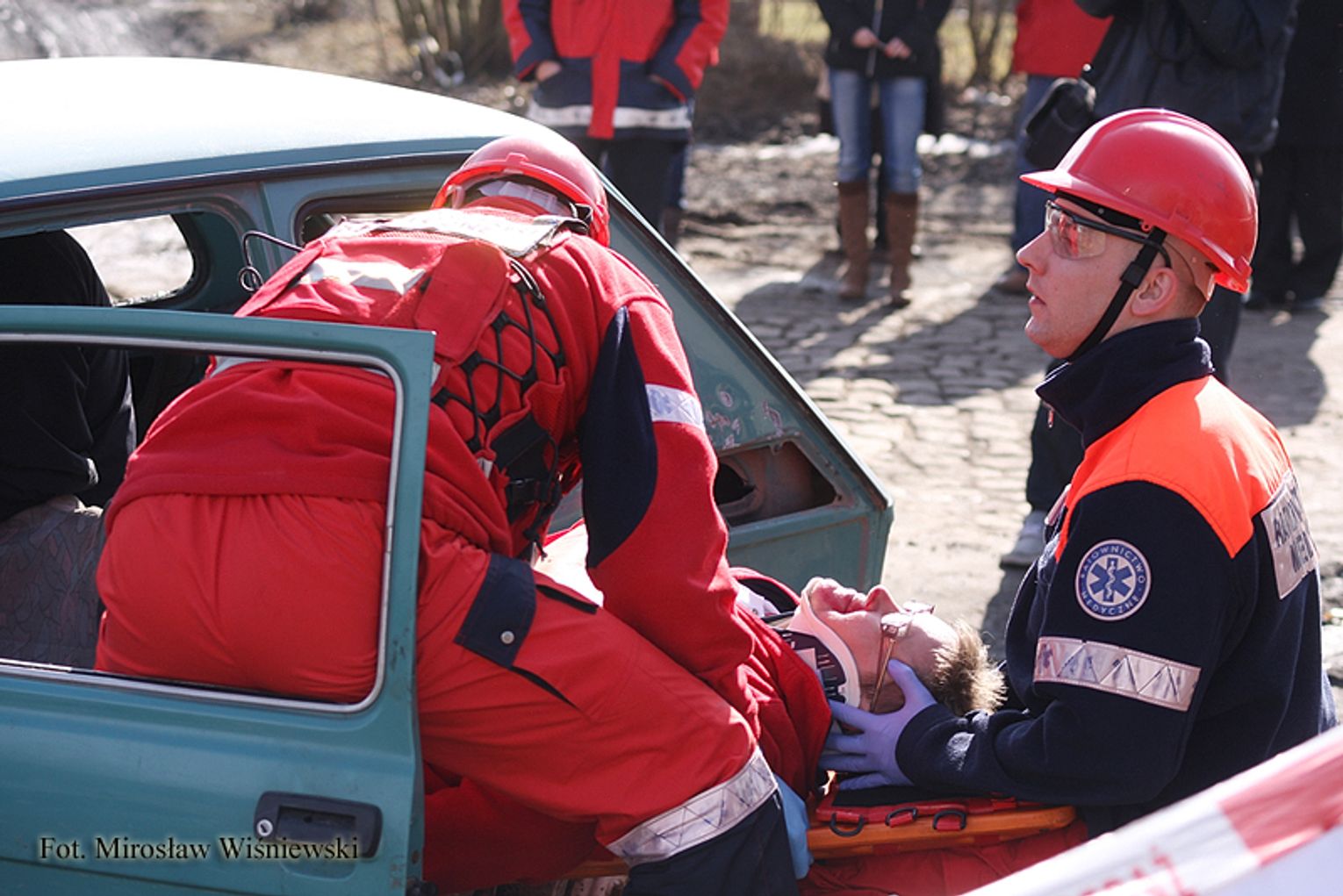 Wypadek drogowy - ćwiczenia służb ratowniczych