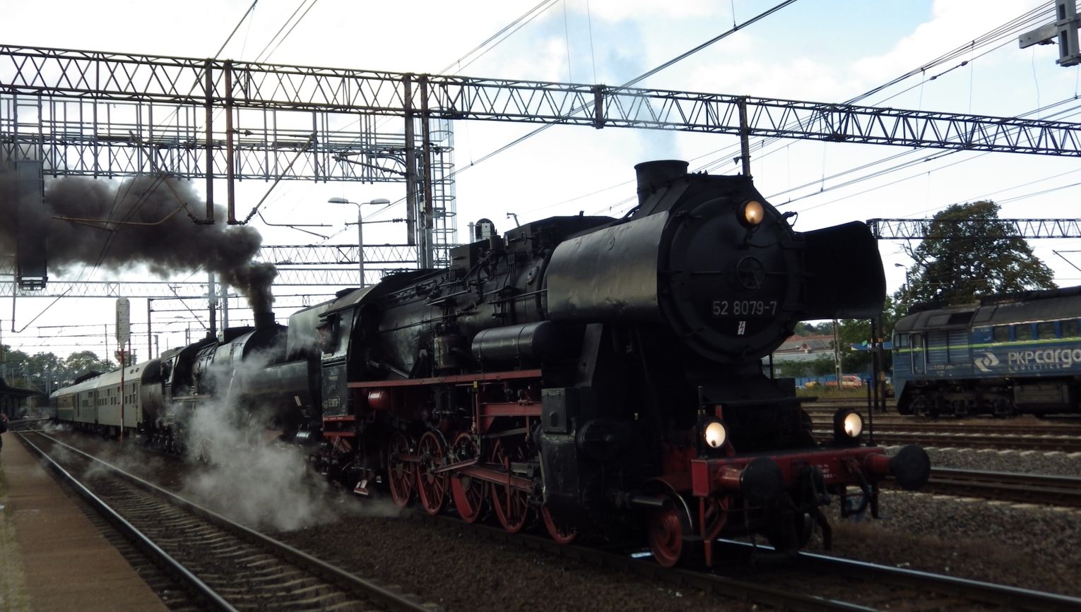 Specjalny niemiecki pociąg turystyczny prowadzony przez dwa parowozy pojawił się w Malborku. Zobacz zdjęcia.