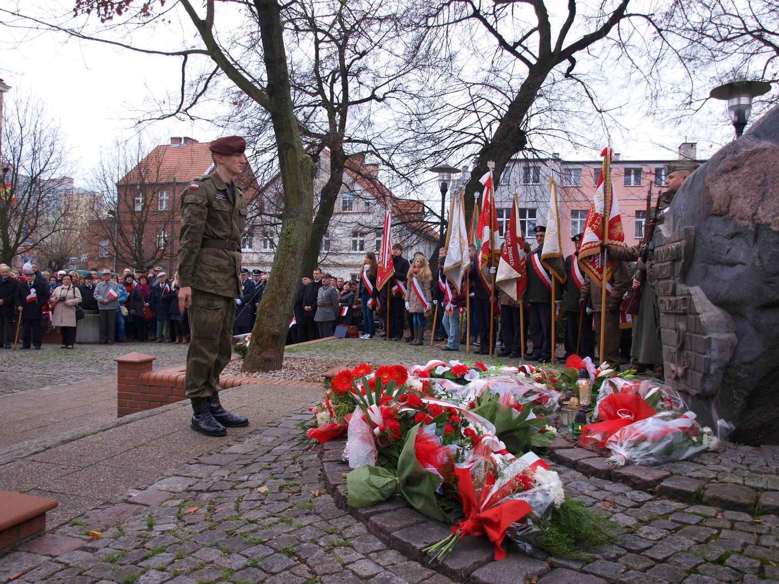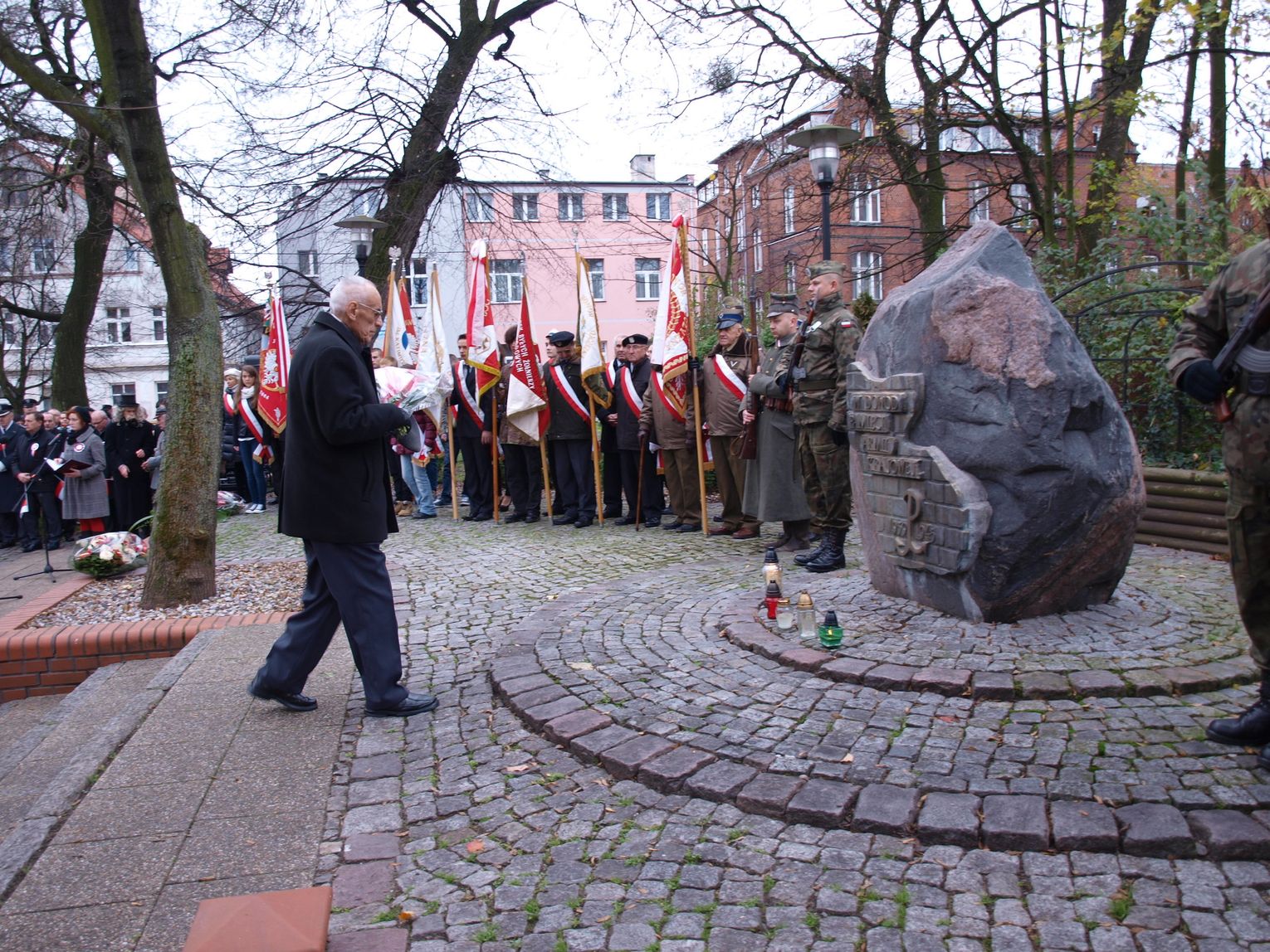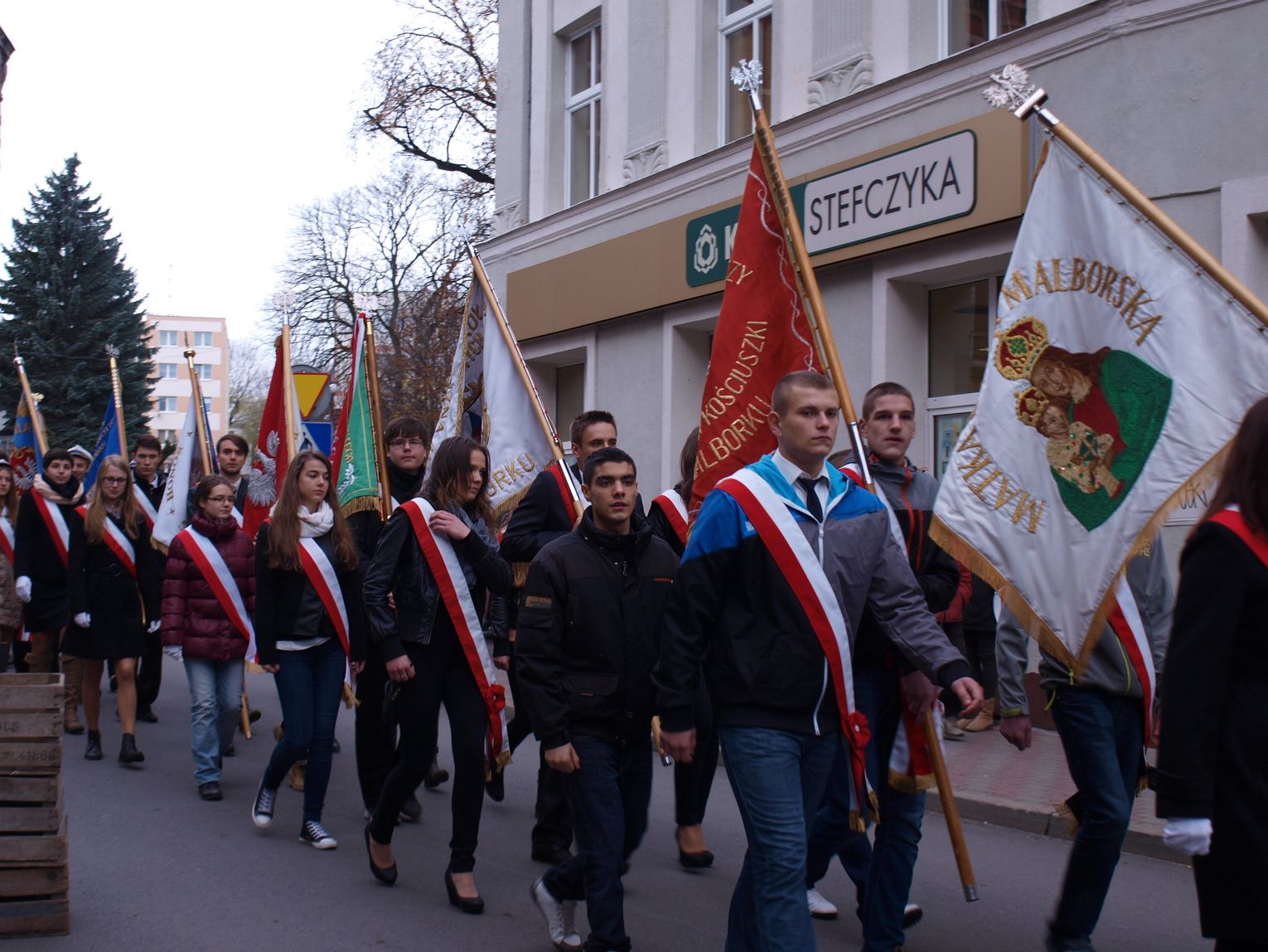 Malborczycy przemaszerowali spod kościoła Matki Bożej Nieustającej Pomocy na Skwer Żołnierzy Wyklętych.