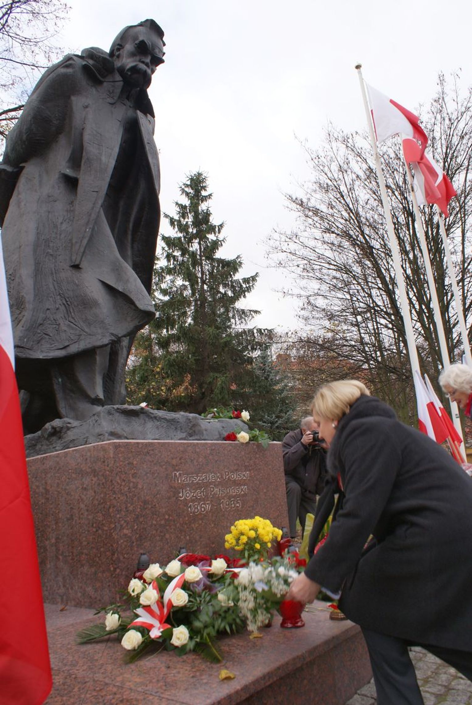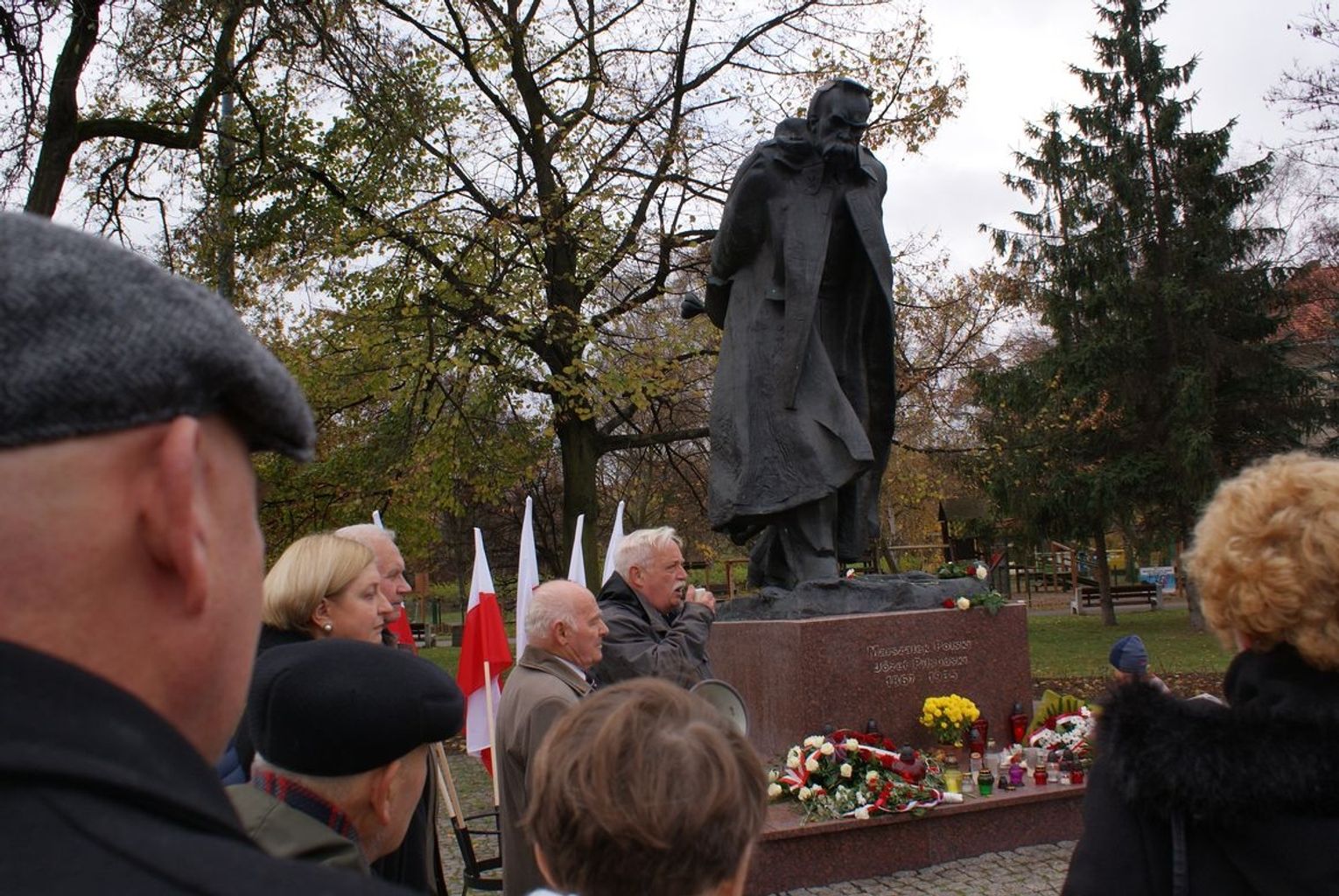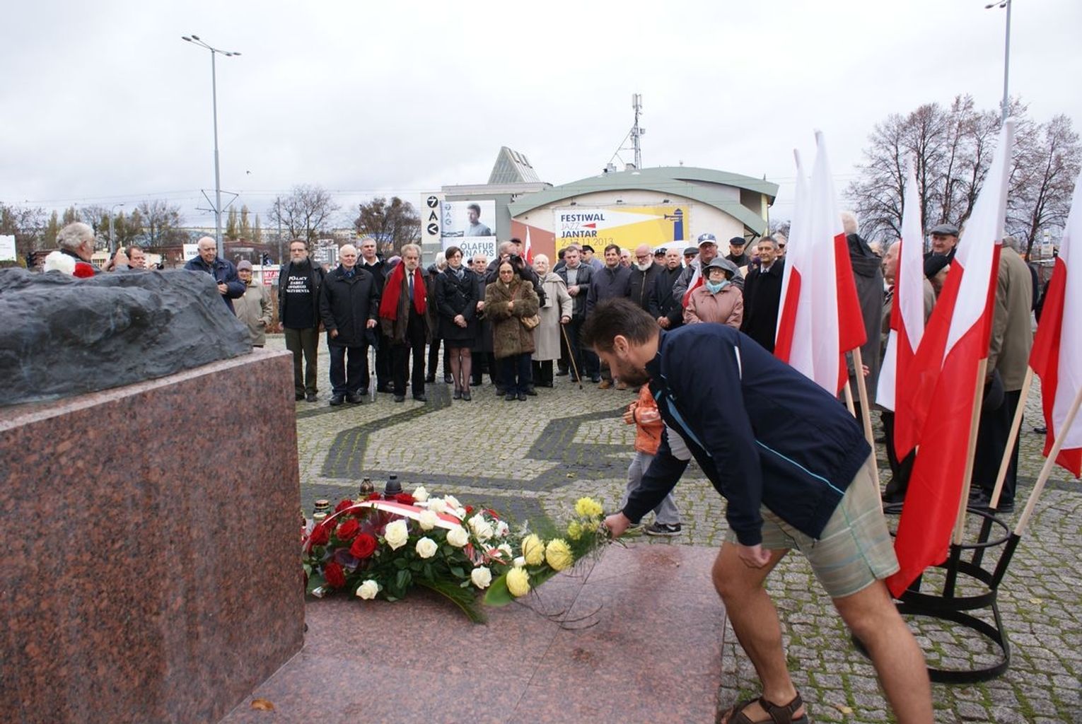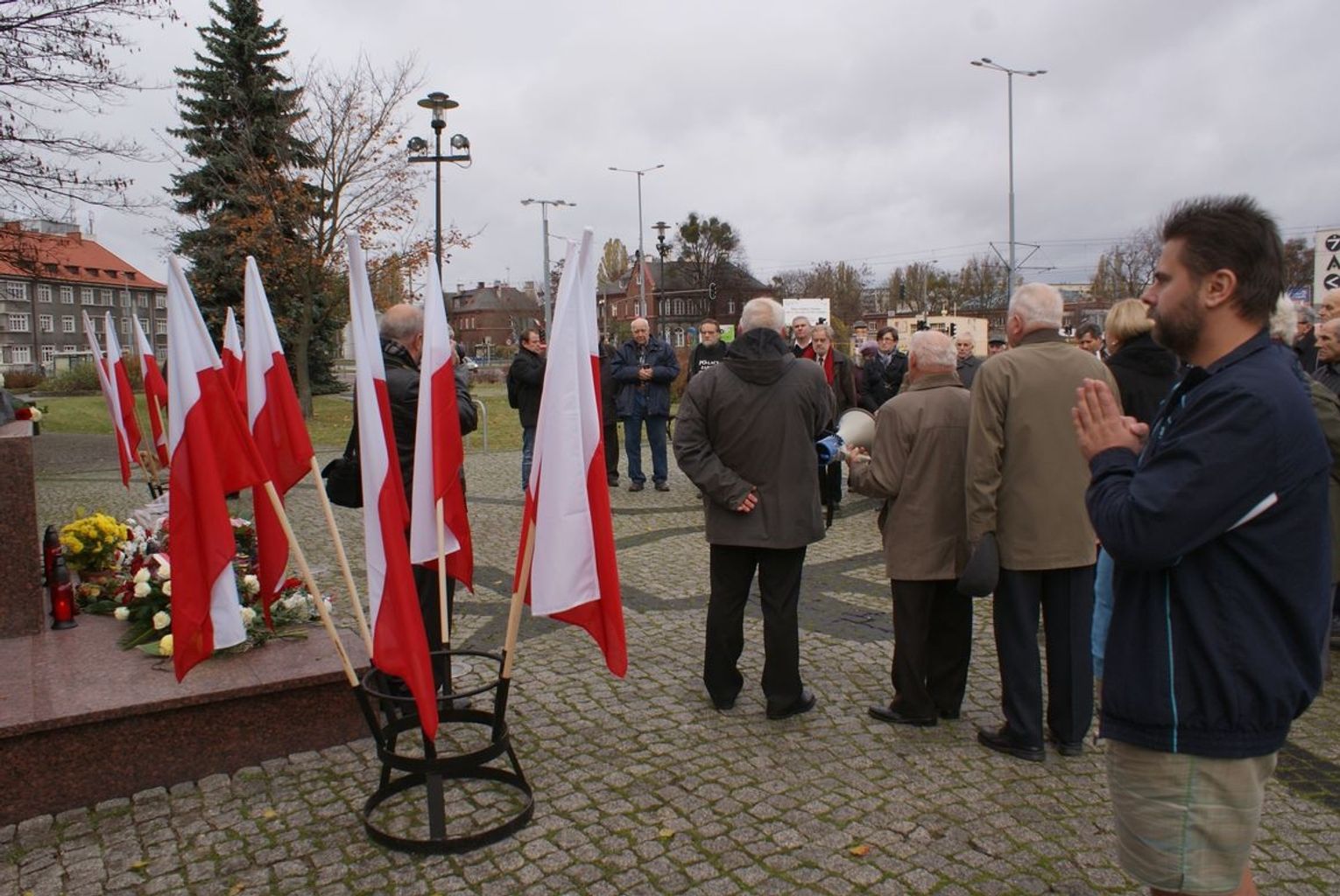 Następnie w Gdańsku-Wrzeszczu pod pomnikiem Marszałka Józefa Piłsudskiego odbyła się manifestacja z udziałem środowisk opozycyjnych i patriotycznych. W uroczystości uczestniczyli członkowie Stowarzyszenia "Godność" - na czele z Czesławem Nowakiem, Stanisławem Fudakowskim i Andrzejem Osipowem, posłanka PiS Anna Fotyga, Andrzej i Joanna Gwiazdowie, Alojzy Szablewski - lider i organizator strajków sierpniowych w 1988 r. w Stoczni Gdańskiej, Bogusław Gołąb - prezes Związku Stowarzyszeń Osób Represjonowanych im. ks. Jerzego Popiełuszki, wiceprezes Stowarzyszenia Solidarni z Kolebki w Gdańsku, a także Tadeusz Fiszbach - sygnatariusz Porozumień Sierpniowych.