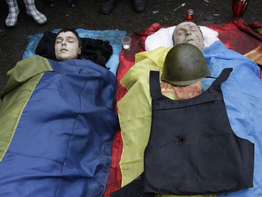 Wszystkich nas poraża co dzieję w ostatnich dniach na Ukrainie. Oto zdjęcia materiał własny - mój i mojego kijowskiego przyjaciela, fotoreportera Aleksandra Czekmieniewa. Przerażające zdjęcia ofiar otrzymałem od niego przed chwilą, kwadratowe portrety "żołnierzy rewolucji” wczoraj, a wykonane były z pewnością przed czarnym wtorkiem. Zdjęcia Saszy - Aleksander Czekmieniew, Kijów.Waldemar Śliwczyński