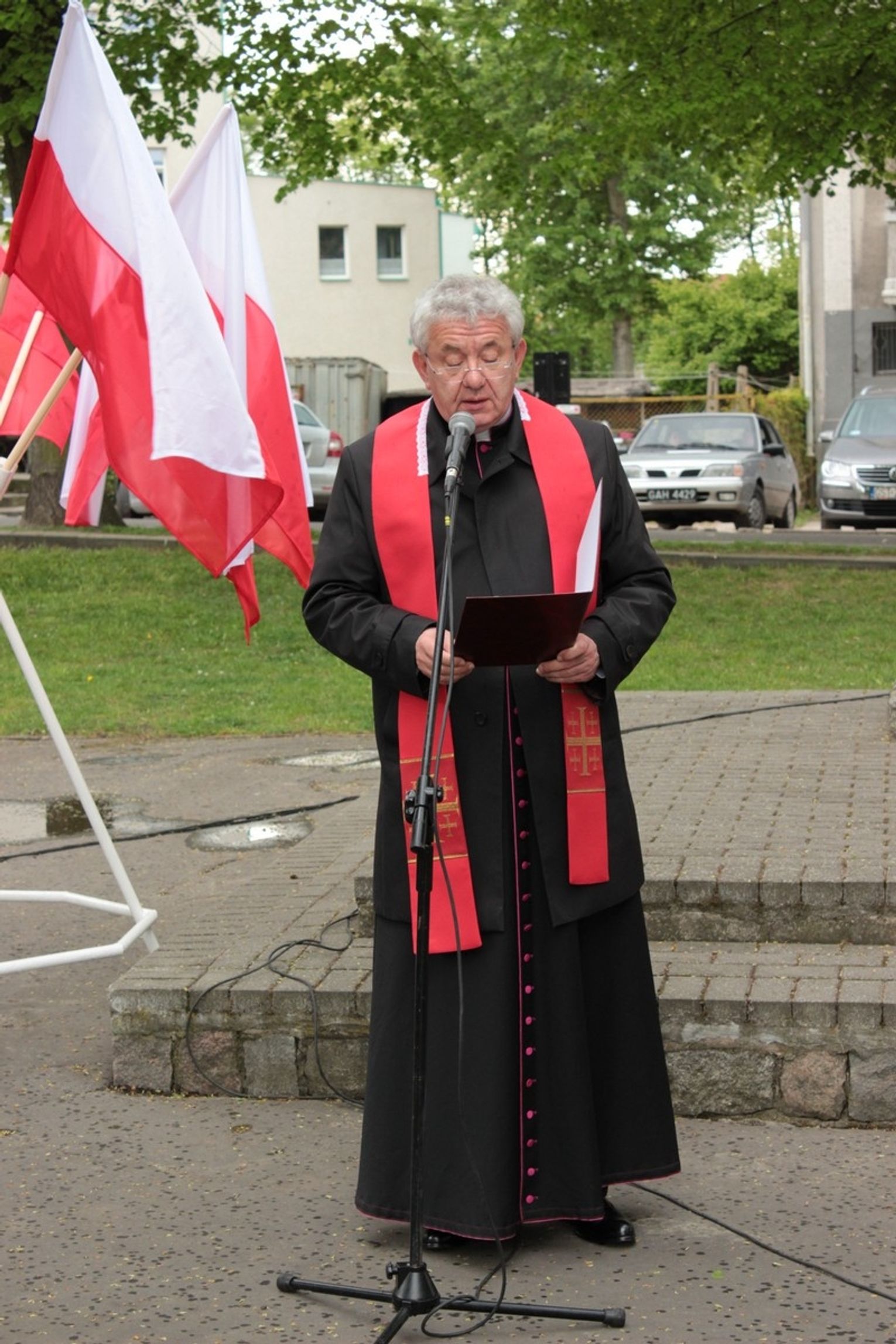 Pod pomnikiem Walki i Męczeństwa lat 1939-45 przy ulicy 2 Pułku Szwoleżerów Rokitniańskich odbyła się uroczystość w 69. rocznicę zakończenia II Wojny Światowej. Pogoda wyjątkowo nie dopisała.Na uroczystość zaprosili prezydent Edmund Stachowicz i przewodniczący Rady Miasta Sławek Ruśniak.Za zmarłych modlił się ks dziekan Józef Pick, słowo do zebranych wygłosił prezydent Stachowicz, a liczne delegacje złożyły kwiaty. Mimo deszczu w uroczystości udział wzięło wiele pocztów sztandarowych i spora grupa młodzieży.