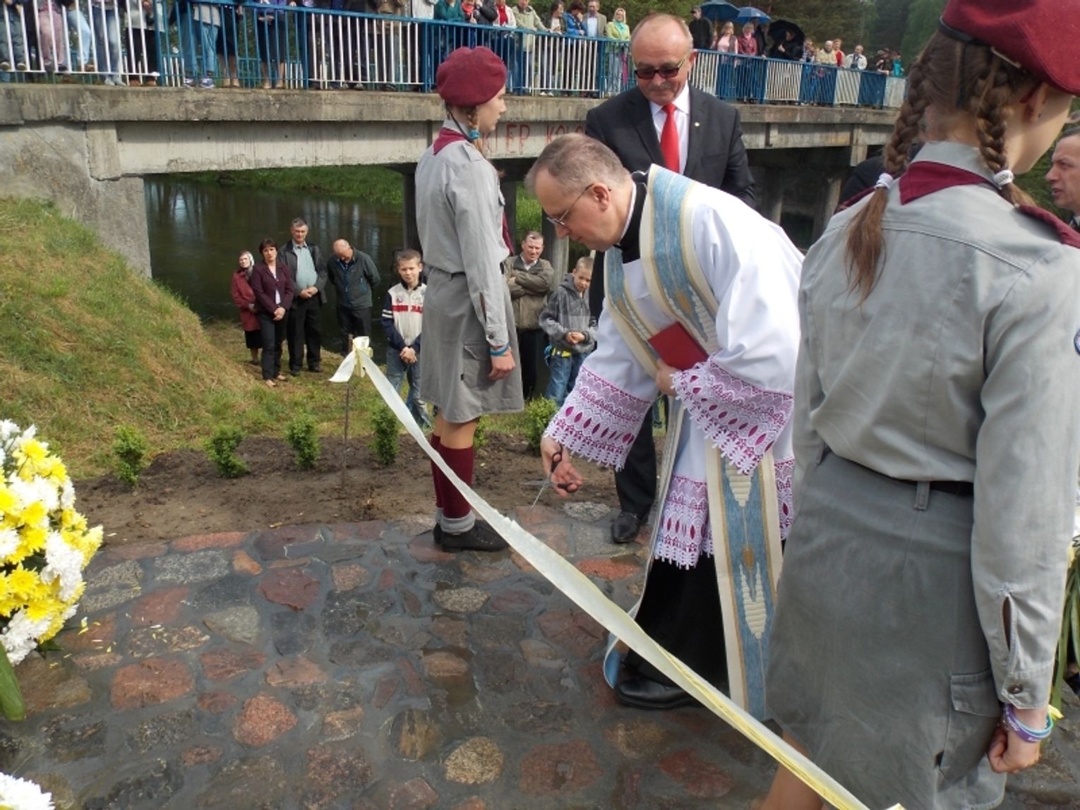 Uroczystośc odsłonięcia obelisku upamiętniającego wizytę św. Jana Pawła II w gm. Zblewo