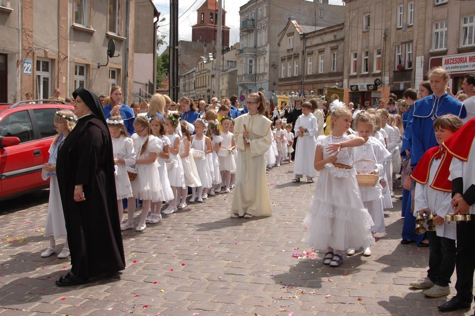 Tradycyjnie w Boże Ciało wierni uczestniczyli w uroczystych procesjach, które przeszły ulicami miasta. Istotą święta jest oddanie czci Bogu, który oddał się człowiekowi pod postacią chleba i wina. Nie brakowało dzieci symbolizujących czystość i niewinność, które sypały na ulice płatki kwiatów.