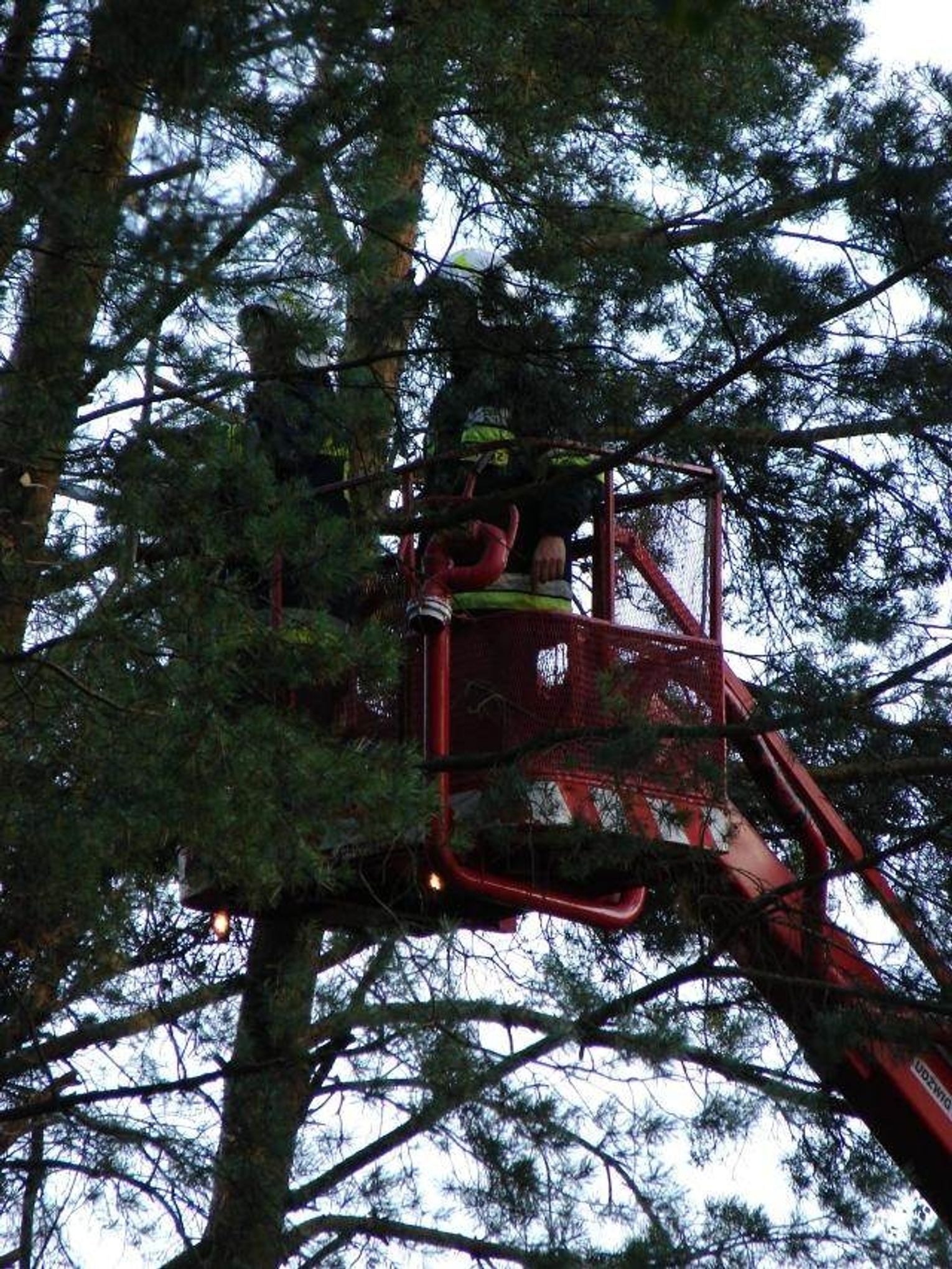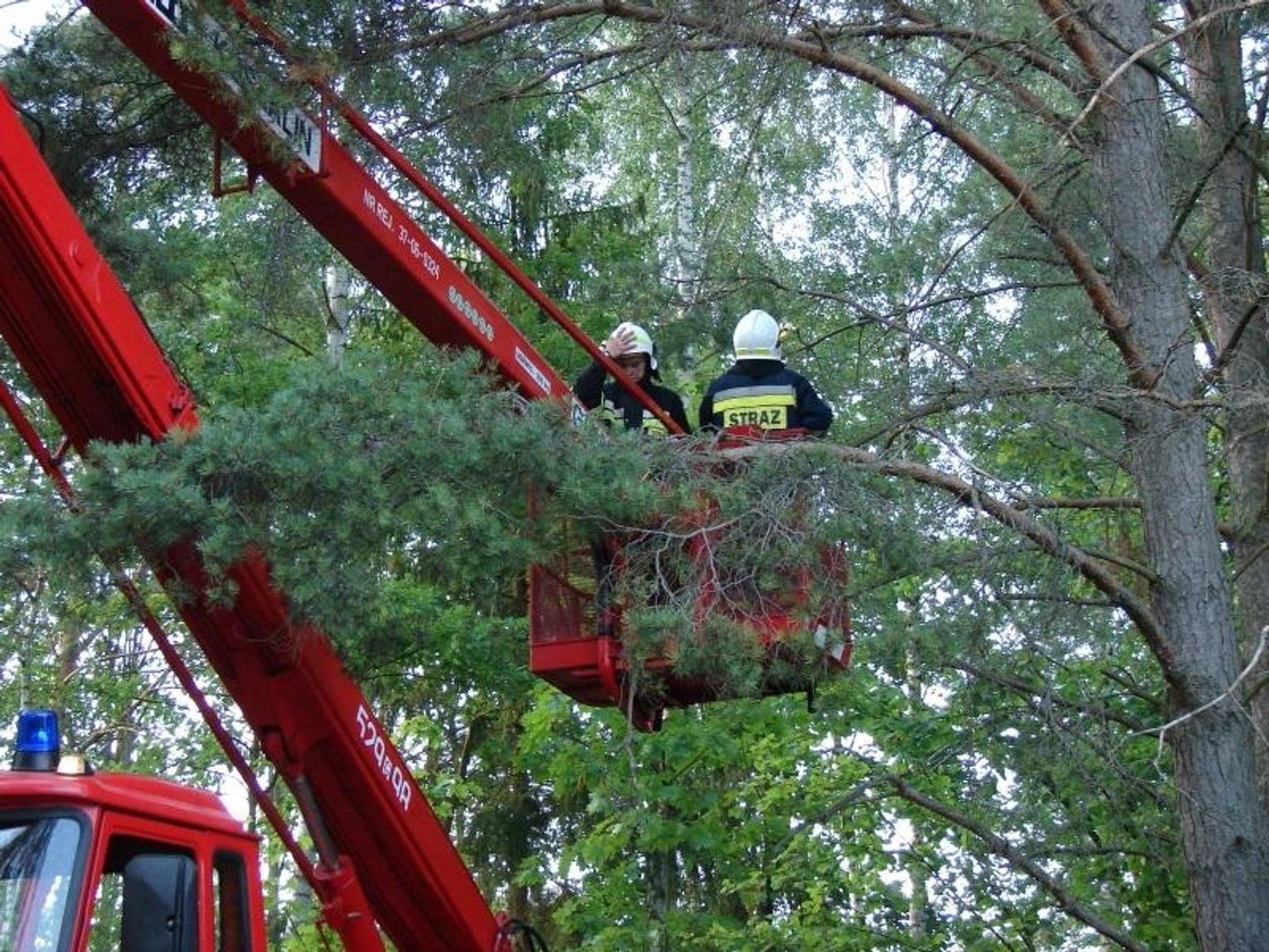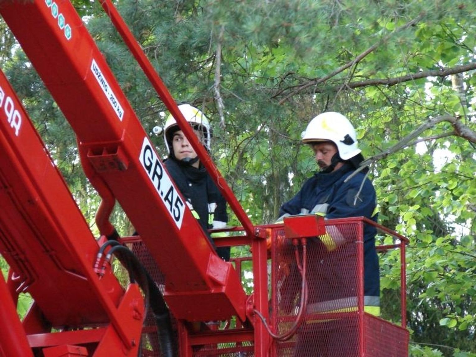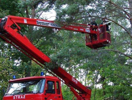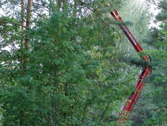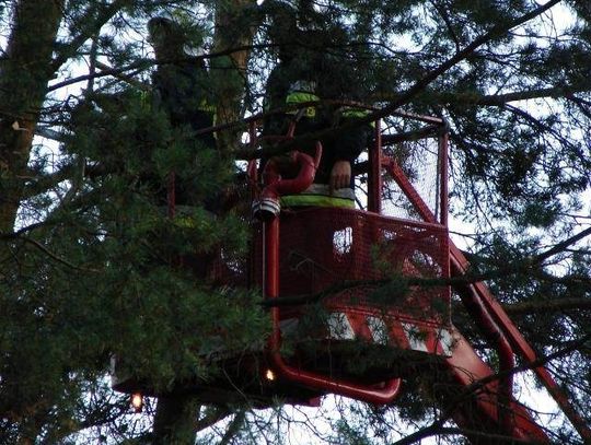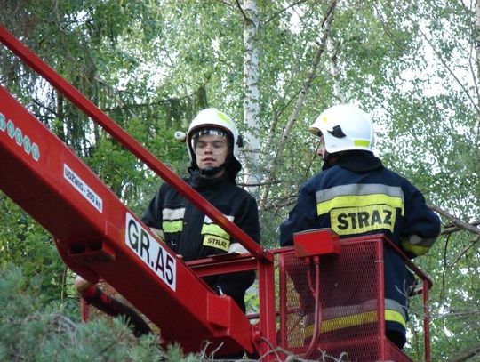 Usuwanie zagrożenia w postaci pochylonego drzewa na O.W. Neptun w Borzechowie przez OSP Zblewo.
