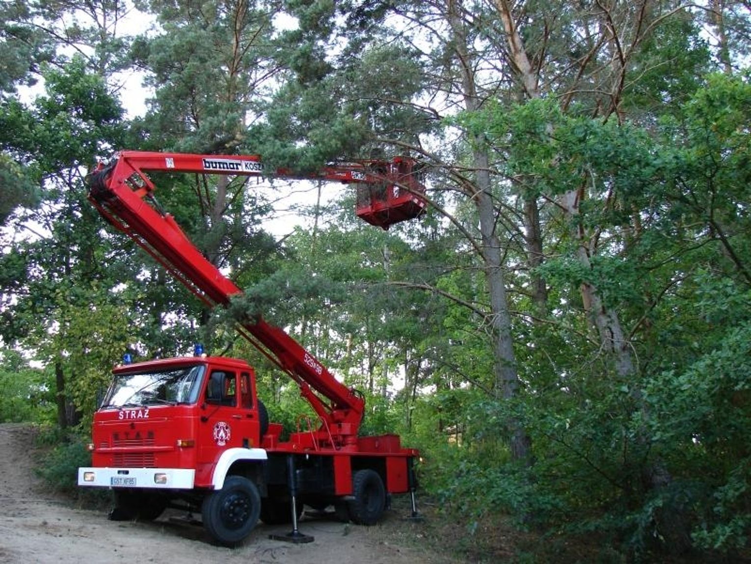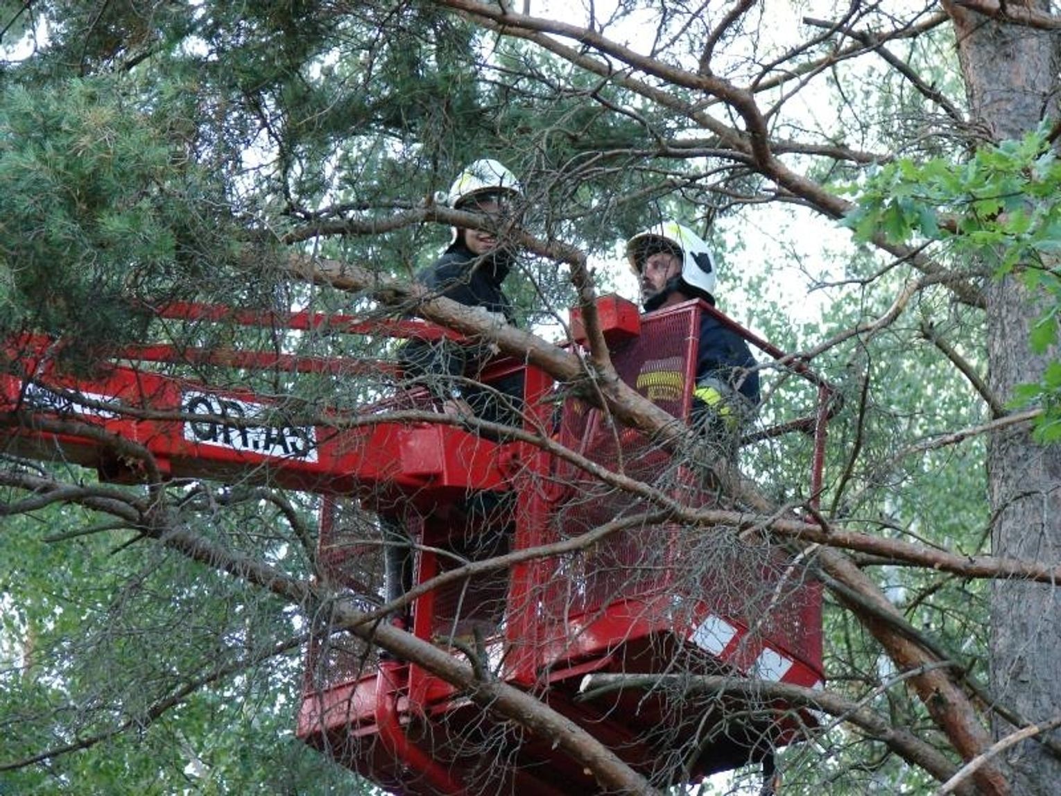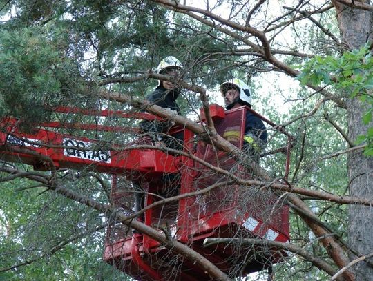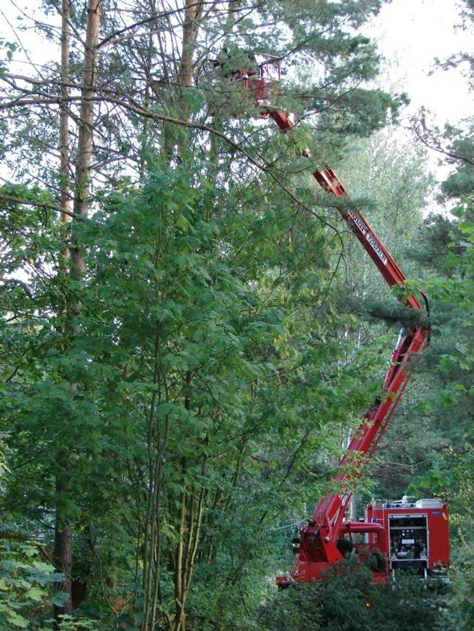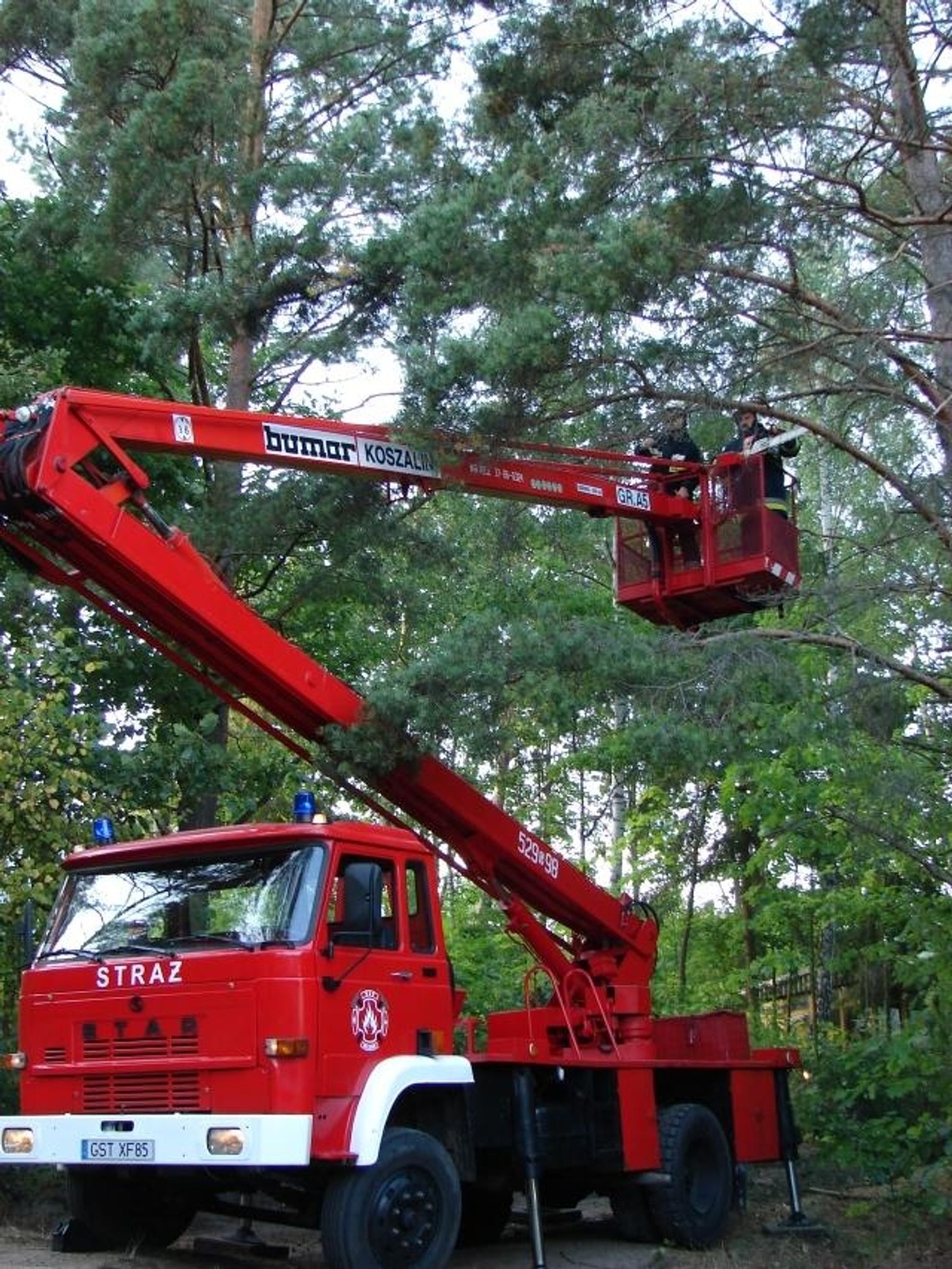 Usuwanie zagrożenia w postaci pochylonego drzewa na O.W. Neptun w Borzechowie przez OSP Zblewo.