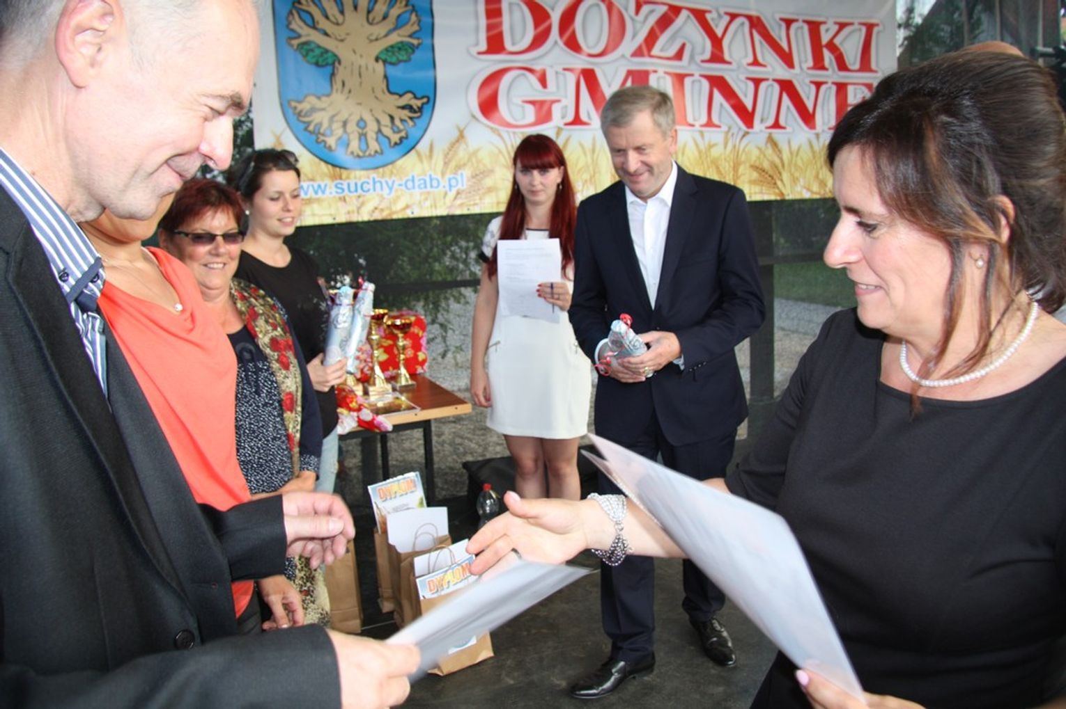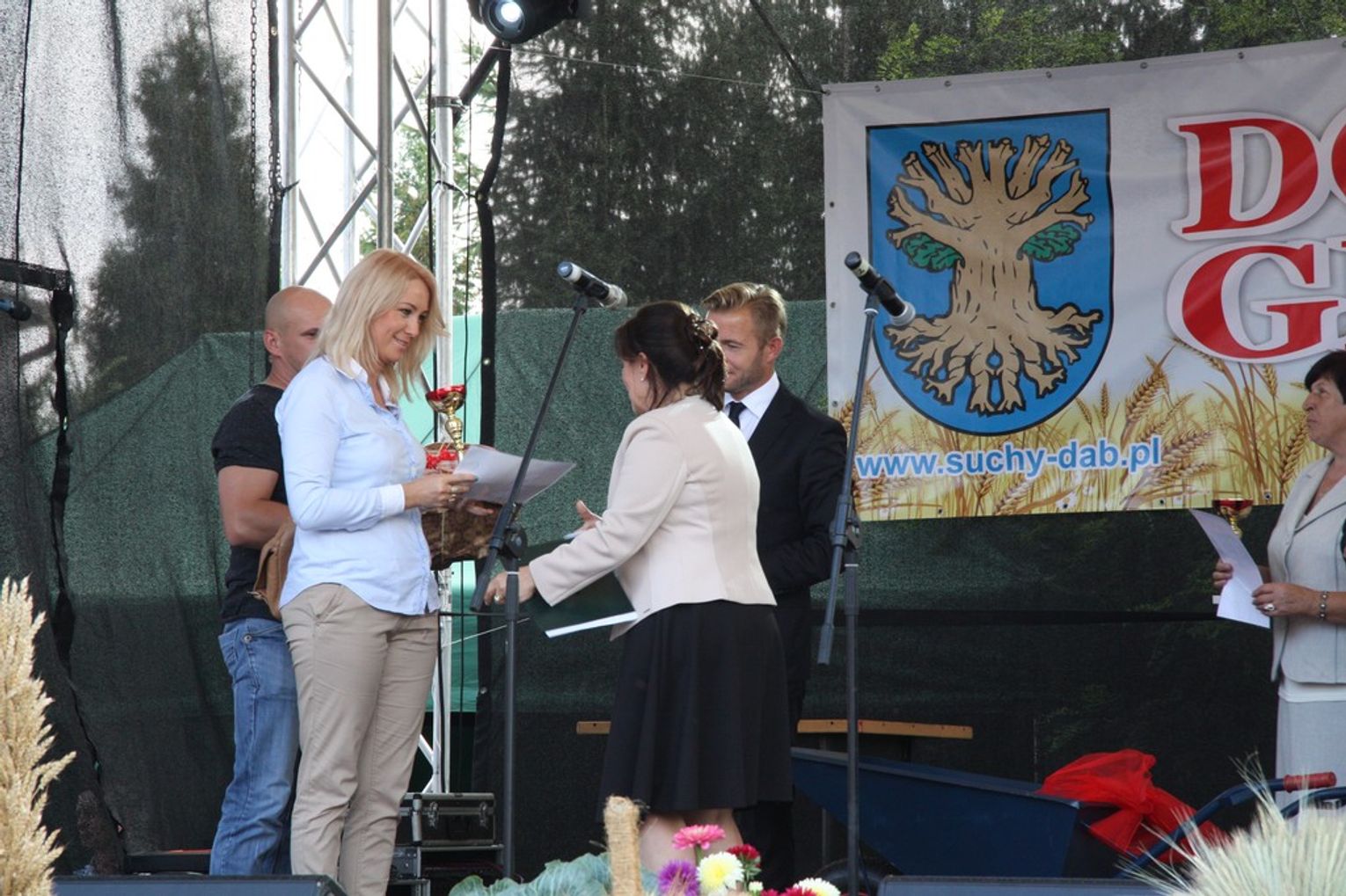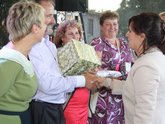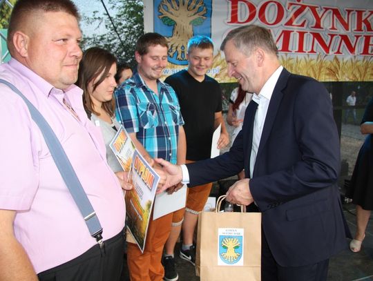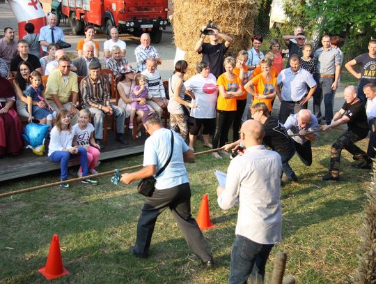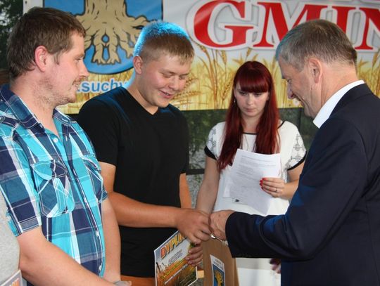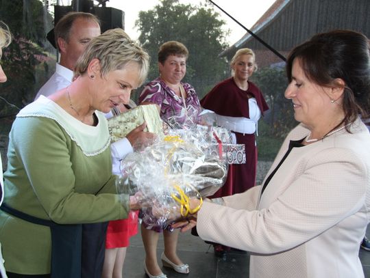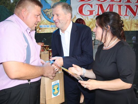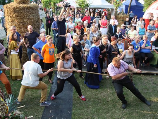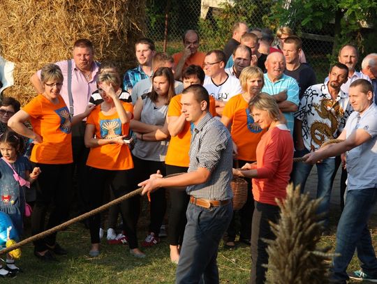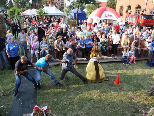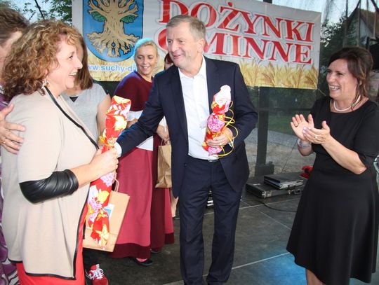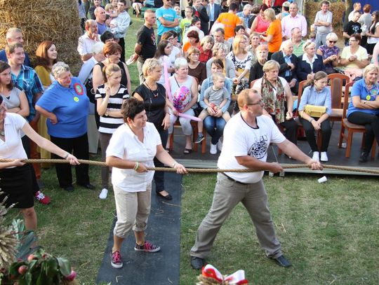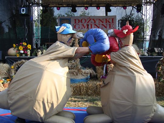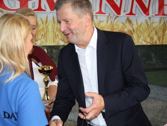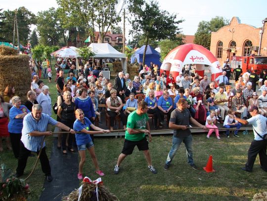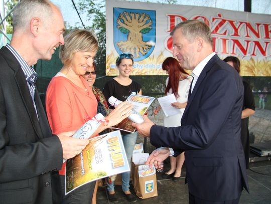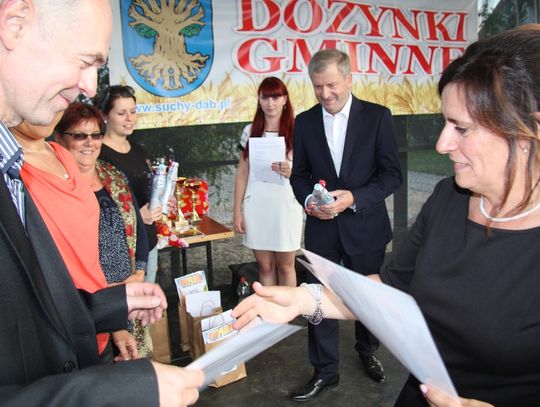 Tegoroczne obchody Dożynek Gminnych odbyły się 13 września w Koźlinach. Ceremoniał dożynkowy rozpoczęła uroczysta Msza Święta w kościele p.w. Matki Boskiej Różańcowej, prowadzona przez ks. Proboszcza Krzysztofa Zdrojewskiego, z udziałem ks. Dziekana Jana Świstowicza oraz ks. Janusza Mathea.Następnie przy asyście Kociewsko – Kaszubskiej Orkiestry Dętej TORPEDA przeszedł z kościoła na miejsce obchodów orszak z wieńcami dożynkowymi wykonanymi przez każde sołectwo naszej Gminy. Nagrodę Marszałka Senatu Bogdana Borusewicza, wręczoną przez p. Małgorzatę Gładysz otrzymał wieniec sołectwa Steblewo.Tegorocznej uroczystości przewodzili Starostowie – sołtys wsi Koźliny p. Antoni Ciunowicz oraz p. Eugenia Fryga.Gości oraz przybyłych mieszkańców powitała p. Wójt Barbara Kamińska. Część artystyczną rozpoczęły Panie z Koła Gospodyń Wiejskich w Koźlinach tańcem ludowym krakowiak oraz piosenką o ich wsi, spędzanym wolnym czasie oraz o naszej Gminie. Piosenkę o Żuławach i również o Gminie Suchy Dąb zaśpiewały dzieci z Zespołu Szkół – Marcelina i Jasiek.Następnie rozpoczął się Turniej Sołectw o Puchar Wójta Gminy Suchy Dąb. W klasyfikacji indywidualnej pierwsze miejsca w konkurencjach zajęły sołectwa:• Kaczka Dziwaczka (wypiek) – Koźliny• Spodnie Farmera – Krzywe Koło• Na narty ze znajomymi – Ostrowite• Skaczcie do góry jak kangury – Koźliny pokonały Suchy Dąb, Steblewo wygrało z Krzywym Kołem, Grabiny-Zameczek z Wróblewem, a Ostrowite z Osicami• Zimne piwko po pracy – Ostrowite• Łaciata – Ostrowite• Na swoją stronę – OstrowiteTym samym sołectwo Ostrowite zdobyło w ogólnej klasyfikacji 45 punktów i wygrało cały Turniej zajmując na podium I miejsce. II miejsce zajęło sołectwo Suchy Dąb, a III miejsce Grabiny-Zameczek.Po wręczeniu nagród i krótkiej przerwie na scenie znów stanęły Gospodynie z Koźlin. Śpiewając Koźlińską Bałkanicę zagrzewały ludzi do tańca. O godzinie 19.00 rozpoczął się występ gwiazdy wieczoru – Jerzego Kryszaka, a po zmroku na obecnych czekały kolejne atrakcje – Fireshow, czyli pokaz tańca z ogniem grupy Flagrantis, a następnie pokaz laserowy firmy Visual Sensation. Zwieńczeniem całej imprezy była zabawa taneczna.W między czasie mieszkańcy naszej Gminy mogli zajrzeć w różne stoiska handlowe, kupić coś do jedzenia i do picia lub nabyć ciekawe gadżety i zabawki. Namioty sołeckie oferowały swojskie jadło, którym można było się poczęstować. Najmłodsi bawili się na zjeżdżalni, karuzeli, w dmuchanych kulach w basenie z wodą, z animatorem – mimem, który miał dla nich mnóstwo niespodzianek i nagród oraz w namiocie Orange, gdzie prowadzone były warsztaty dla dzieci, a także rozdawano watę cukrową i popcorn.Organizator pragnie z całego serca podziękować przede wszystkim:• mieszkańcom Koźlin i KGW Koźliny za przygotowanie terenu, dekoracje i pomoc w przygotowaniu i uprzątnięciu miejsca imprezy,• Kołom Gospodyń Wiejskich za przyrządzenie poczęstunku dla gości,• OSP Koźliny i OSP Steblewo za to, że cały czas czuwali nad naszym bezpieczeństwem,• Koleżankom i kolegom z pracy za ogromne wsparcie i pomoc w przygotowaniach, jak i w czasie trwania całej imprezy.