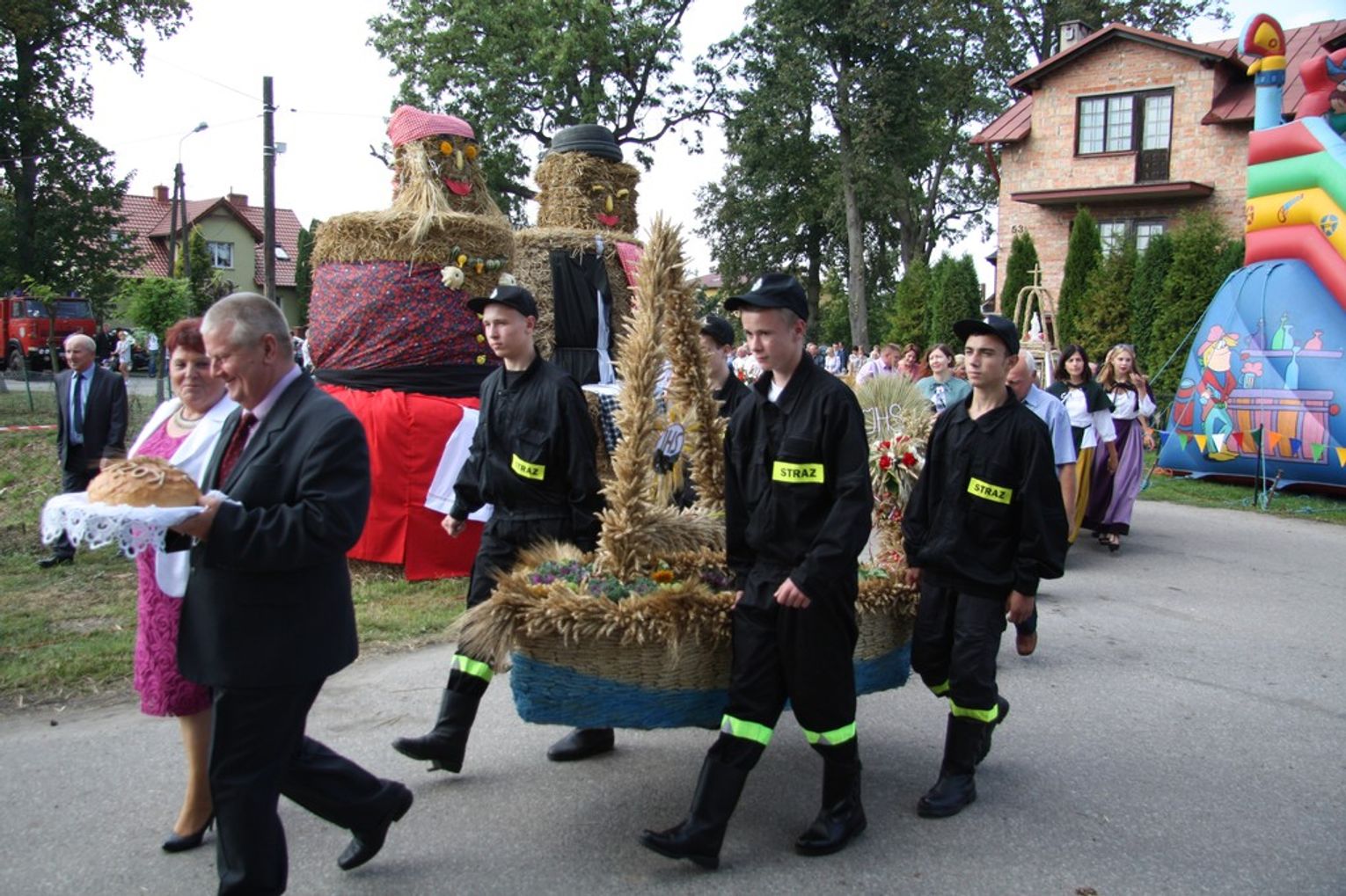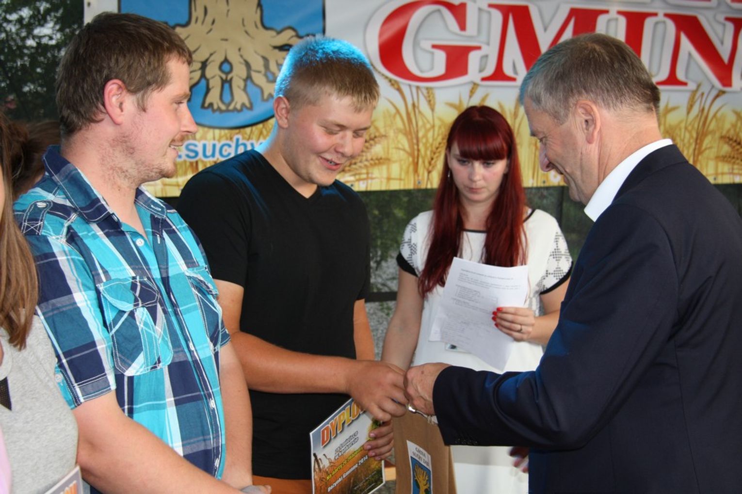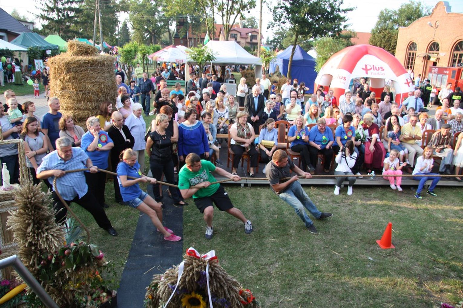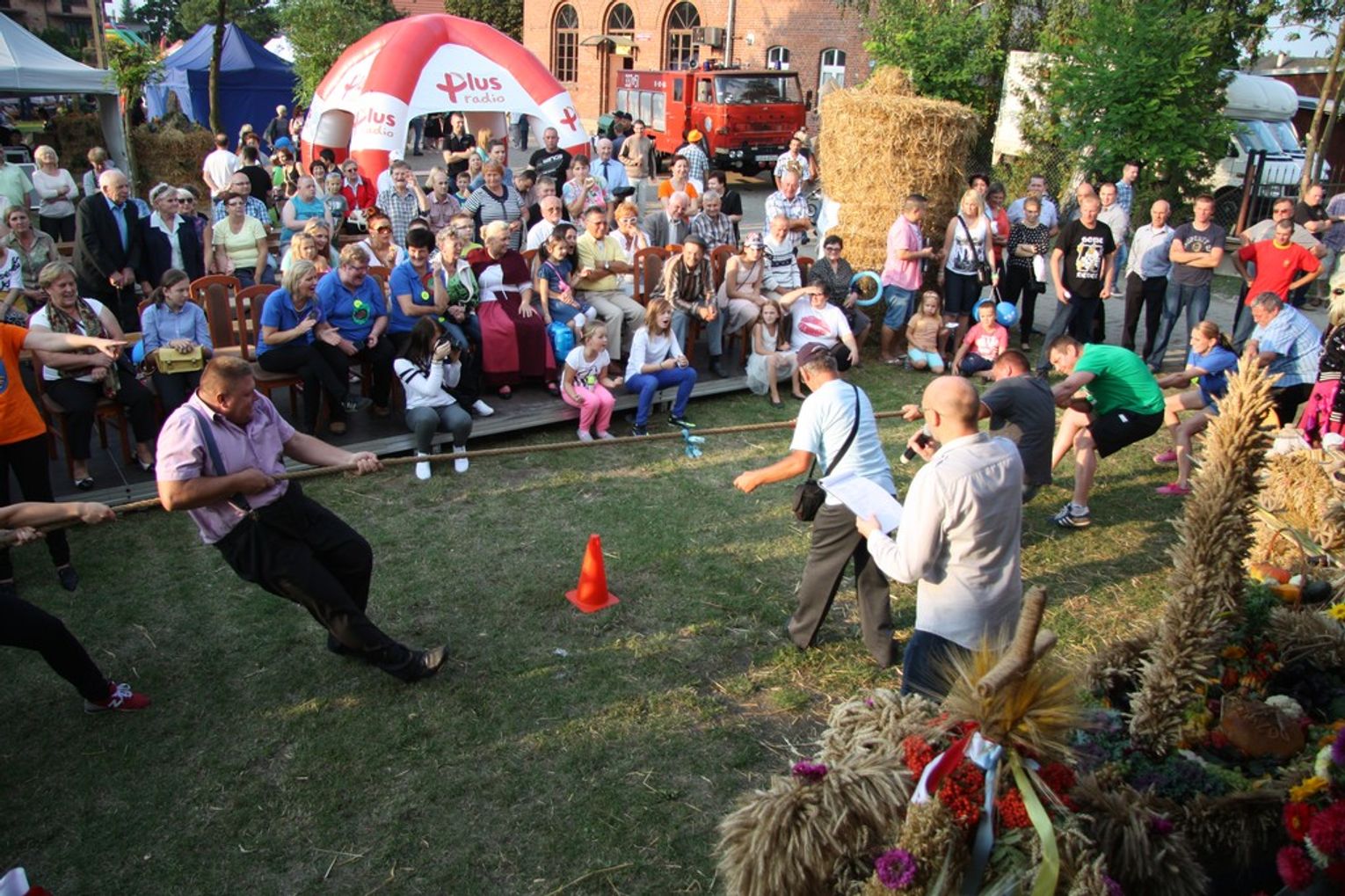 Tegoroczne obchody Dożynek Gminnych odbyły się 13 września w Koźlinach. Ceremoniał dożynkowy rozpoczęła uroczysta Msza Święta w kościele p.w. Matki Boskiej Różańcowej, prowadzona przez ks. Proboszcza Krzysztofa Zdrojewskiego, z udziałem ks. Dziekana Jana Świstowicza oraz ks. Janusza Mathea.Następnie przy asyście Kociewsko – Kaszubskiej Orkiestry Dętej TORPEDA przeszedł z kościoła na miejsce obchodów orszak z wieńcami dożynkowymi wykonanymi przez każde sołectwo naszej Gminy. Nagrodę Marszałka Senatu Bogdana Borusewicza, wręczoną przez p. Małgorzatę Gładysz otrzymał wieniec sołectwa Steblewo.Tegorocznej uroczystości przewodzili Starostowie – sołtys wsi Koźliny p. Antoni Ciunowicz oraz p. Eugenia Fryga.Gości oraz przybyłych mieszkańców powitała p. Wójt Barbara Kamińska. Część artystyczną rozpoczęły Panie z Koła Gospodyń Wiejskich w Koźlinach tańcem ludowym krakowiak oraz piosenką o ich wsi, spędzanym wolnym czasie oraz o naszej Gminie. Piosenkę o Żuławach i również o Gminie Suchy Dąb zaśpiewały dzieci z Zespołu Szkół – Marcelina i Jasiek.Następnie rozpoczął się Turniej Sołectw o Puchar Wójta Gminy Suchy Dąb. W klasyfikacji indywidualnej pierwsze miejsca w konkurencjach zajęły sołectwa:• Kaczka Dziwaczka (wypiek) – Koźliny• Spodnie Farmera – Krzywe Koło• Na narty ze znajomymi – Ostrowite• Skaczcie do góry jak kangury – Koźliny pokonały Suchy Dąb, Steblewo wygrało z Krzywym Kołem, Grabiny-Zameczek z Wróblewem, a Ostrowite z Osicami• Zimne piwko po pracy – Ostrowite• Łaciata – Ostrowite• Na swoją stronę – OstrowiteTym samym sołectwo Ostrowite zdobyło w ogólnej klasyfikacji 45 punktów i wygrało cały Turniej zajmując na podium I miejsce. II miejsce zajęło sołectwo Suchy Dąb, a III miejsce Grabiny-Zameczek.Po wręczeniu nagród i krótkiej przerwie na scenie znów stanęły Gospodynie z Koźlin. Śpiewając Koźlińską Bałkanicę zagrzewały ludzi do tańca. O godzinie 19.00 rozpoczął się występ gwiazdy wieczoru – Jerzego Kryszaka, a po zmroku na obecnych czekały kolejne atrakcje – Fireshow, czyli pokaz tańca z ogniem grupy Flagrantis, a następnie pokaz laserowy firmy Visual Sensation. Zwieńczeniem całej imprezy była zabawa taneczna.W między czasie mieszkańcy naszej Gminy mogli zajrzeć w różne stoiska handlowe, kupić coś do jedzenia i do picia lub nabyć ciekawe gadżety i zabawki. Namioty sołeckie oferowały swojskie jadło, którym można było się poczęstować. Najmłodsi bawili się na zjeżdżalni, karuzeli, w dmuchanych kulach w basenie z wodą, z animatorem – mimem, który miał dla nich mnóstwo niespodzianek i nagród oraz w namiocie Orange, gdzie prowadzone były warsztaty dla dzieci, a także rozdawano watę cukrową i popcorn.Organizator pragnie z całego serca podziękować przede wszystkim:• mieszkańcom Koźlin i KGW Koźliny za przygotowanie terenu, dekoracje i pomoc w przygotowaniu i uprzątnięciu miejsca imprezy,• Kołom Gospodyń Wiejskich za przyrządzenie poczęstunku dla gości,• OSP Koźliny i OSP Steblewo za to, że cały czas czuwali nad naszym bezpieczeństwem,• Koleżankom i kolegom z pracy za ogromne wsparcie i pomoc w przygotowaniach, jak i w czasie trwania całej imprezy.