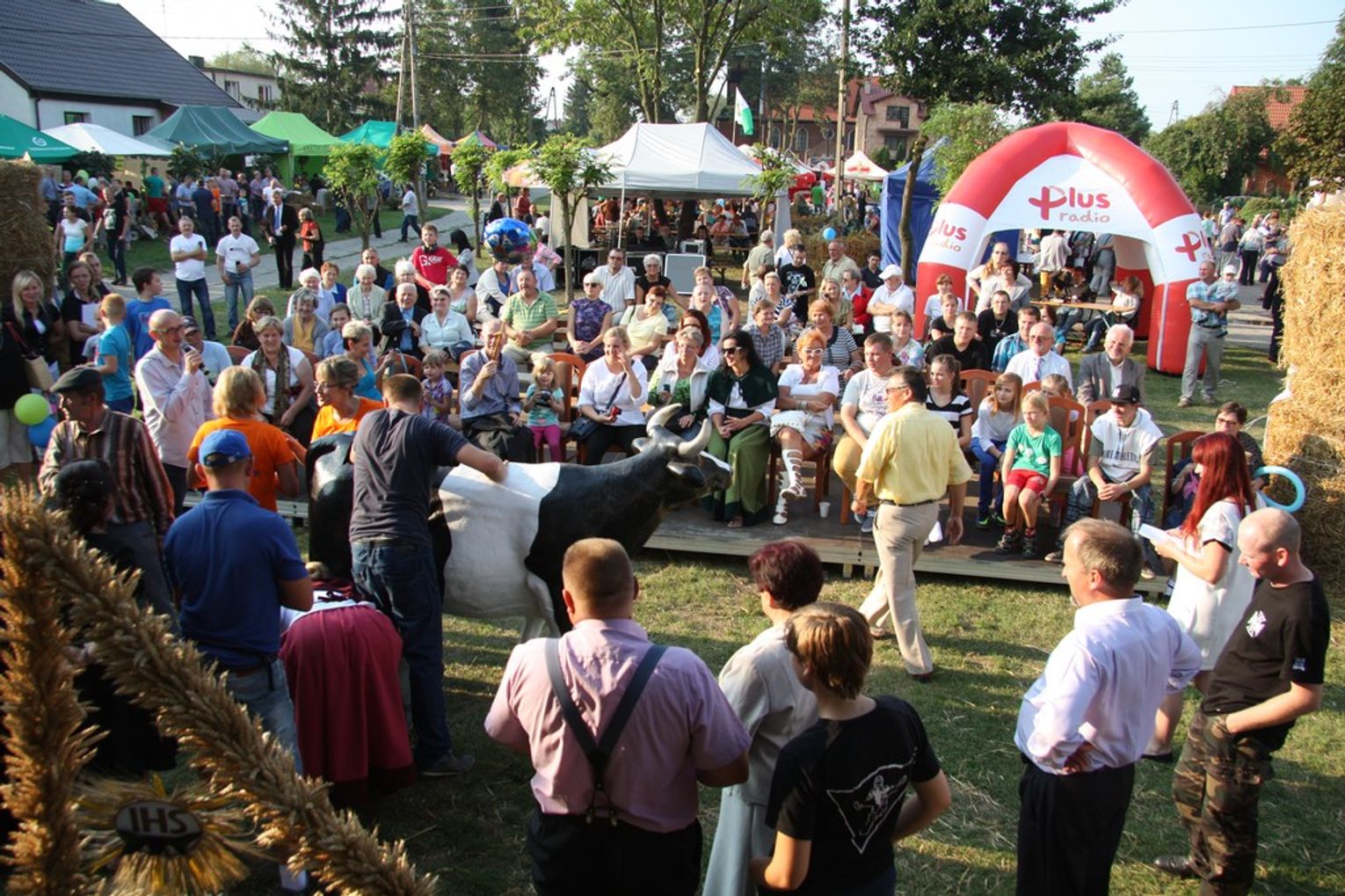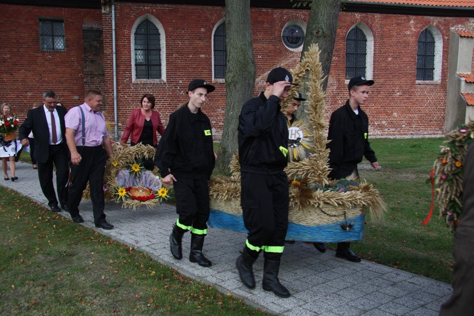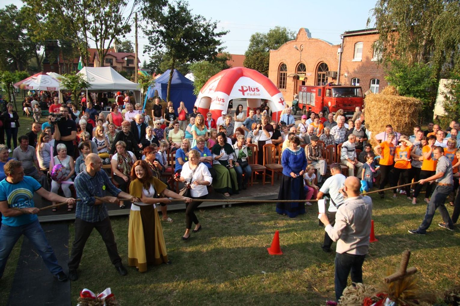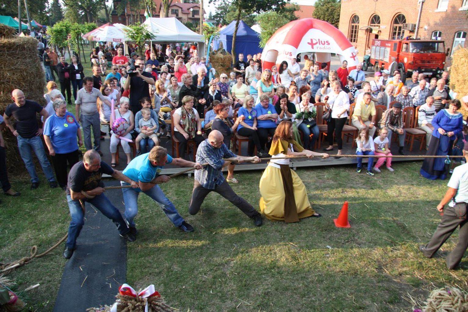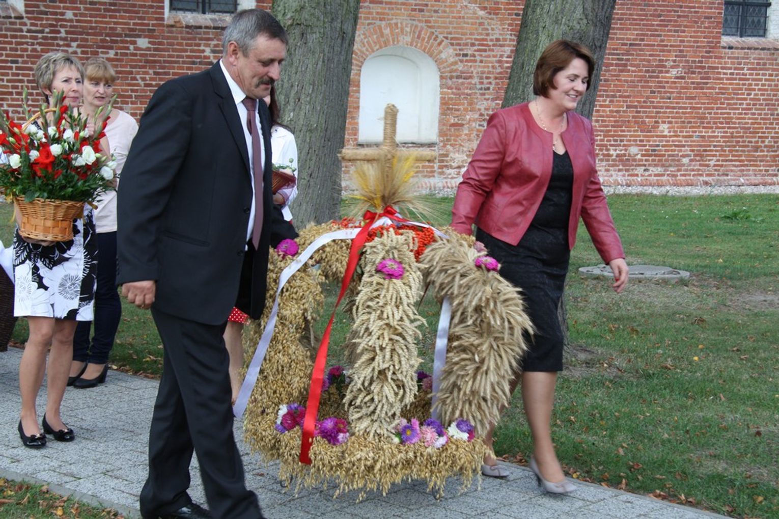 Tegoroczne obchody Dożynek Gminnych odbyły się 13 września w Koźlinach. Ceremoniał dożynkowy rozpoczęła uroczysta Msza Święta w kościele p.w. Matki Boskiej Różańcowej, prowadzona przez ks. Proboszcza Krzysztofa Zdrojewskiego, z udziałem ks. Dziekana Jana Świstowicza oraz ks. Janusza Mathea.Następnie przy asyście Kociewsko – Kaszubskiej Orkiestry Dętej TORPEDA przeszedł z kościoła na miejsce obchodów orszak z wieńcami dożynkowymi wykonanymi przez każde sołectwo naszej Gminy. Nagrodę Marszałka Senatu Bogdana Borusewicza, wręczoną przez p. Małgorzatę Gładysz otrzymał wieniec sołectwa Steblewo.Tegorocznej uroczystości przewodzili Starostowie – sołtys wsi Koźliny p. Antoni Ciunowicz oraz p. Eugenia Fryga.Gości oraz przybyłych mieszkańców powitała p. Wójt Barbara Kamińska. Część artystyczną rozpoczęły Panie z Koła Gospodyń Wiejskich w Koźlinach tańcem ludowym krakowiak oraz piosenką o ich wsi, spędzanym wolnym czasie oraz o naszej Gminie. Piosenkę o Żuławach i również o Gminie Suchy Dąb zaśpiewały dzieci z Zespołu Szkół – Marcelina i Jasiek.Następnie rozpoczął się Turniej Sołectw o Puchar Wójta Gminy Suchy Dąb. W klasyfikacji indywidualnej pierwsze miejsca w konkurencjach zajęły sołectwa:• Kaczka Dziwaczka (wypiek) – Koźliny• Spodnie Farmera – Krzywe Koło• Na narty ze znajomymi – Ostrowite• Skaczcie do góry jak kangury – Koźliny pokonały Suchy Dąb, Steblewo wygrało z Krzywym Kołem, Grabiny-Zameczek z Wróblewem, a Ostrowite z Osicami• Zimne piwko po pracy – Ostrowite• Łaciata – Ostrowite• Na swoją stronę – OstrowiteTym samym sołectwo Ostrowite zdobyło w ogólnej klasyfikacji 45 punktów i wygrało cały Turniej zajmując na podium I miejsce. II miejsce zajęło sołectwo Suchy Dąb, a III miejsce Grabiny-Zameczek.Po wręczeniu nagród i krótkiej przerwie na scenie znów stanęły Gospodynie z Koźlin. Śpiewając Koźlińską Bałkanicę zagrzewały ludzi do tańca. O godzinie 19.00 rozpoczął się występ gwiazdy wieczoru – Jerzego Kryszaka, a po zmroku na obecnych czekały kolejne atrakcje – Fireshow, czyli pokaz tańca z ogniem grupy Flagrantis, a następnie pokaz laserowy firmy Visual Sensation. Zwieńczeniem całej imprezy była zabawa taneczna.W między czasie mieszkańcy naszej Gminy mogli zajrzeć w różne stoiska handlowe, kupić coś do jedzenia i do picia lub nabyć ciekawe gadżety i zabawki. Namioty sołeckie oferowały swojskie jadło, którym można było się poczęstować. Najmłodsi bawili się na zjeżdżalni, karuzeli, w dmuchanych kulach w basenie z wodą, z animatorem – mimem, który miał dla nich mnóstwo niespodzianek i nagród oraz w namiocie Orange, gdzie prowadzone były warsztaty dla dzieci, a także rozdawano watę cukrową i popcorn.Organizator pragnie z całego serca podziękować przede wszystkim:• mieszkańcom Koźlin i KGW Koźliny za przygotowanie terenu, dekoracje i pomoc w przygotowaniu i uprzątnięciu miejsca imprezy,• Kołom Gospodyń Wiejskich za przyrządzenie poczęstunku dla gości,• OSP Koźliny i OSP Steblewo za to, że cały czas czuwali nad naszym bezpieczeństwem,• Koleżankom i kolegom z pracy za ogromne wsparcie i pomoc w przygotowaniach, jak i w czasie trwania całej imprezy.