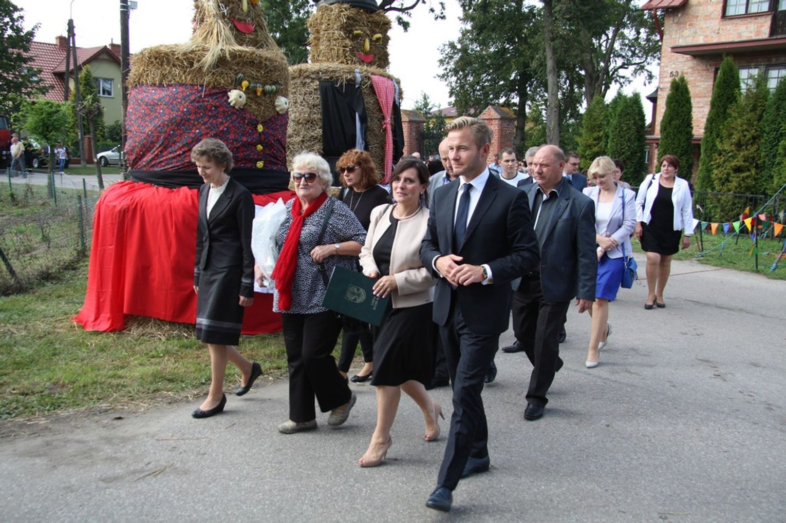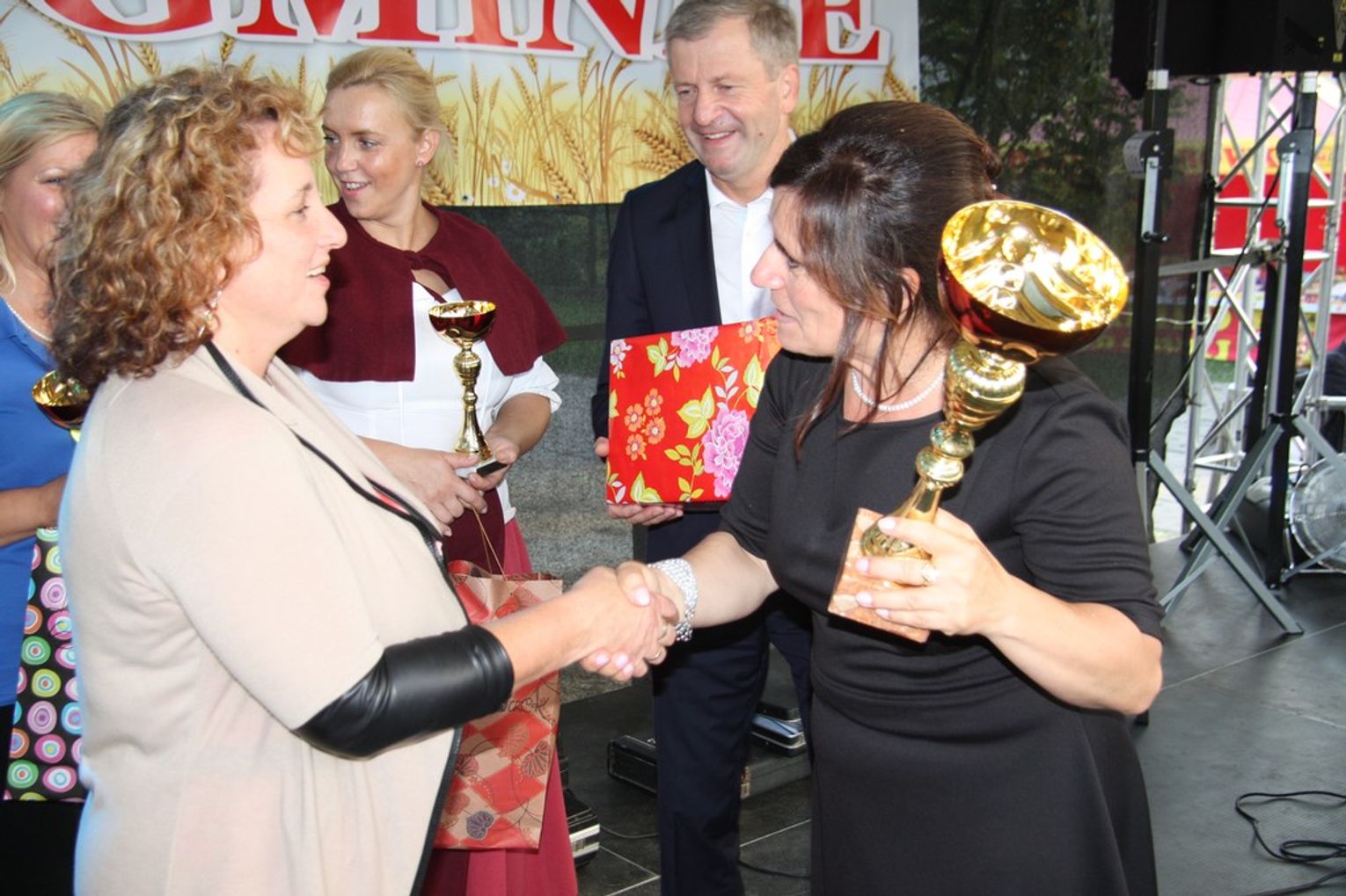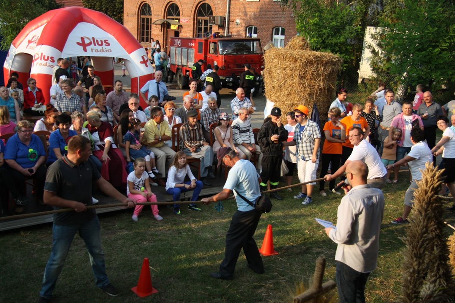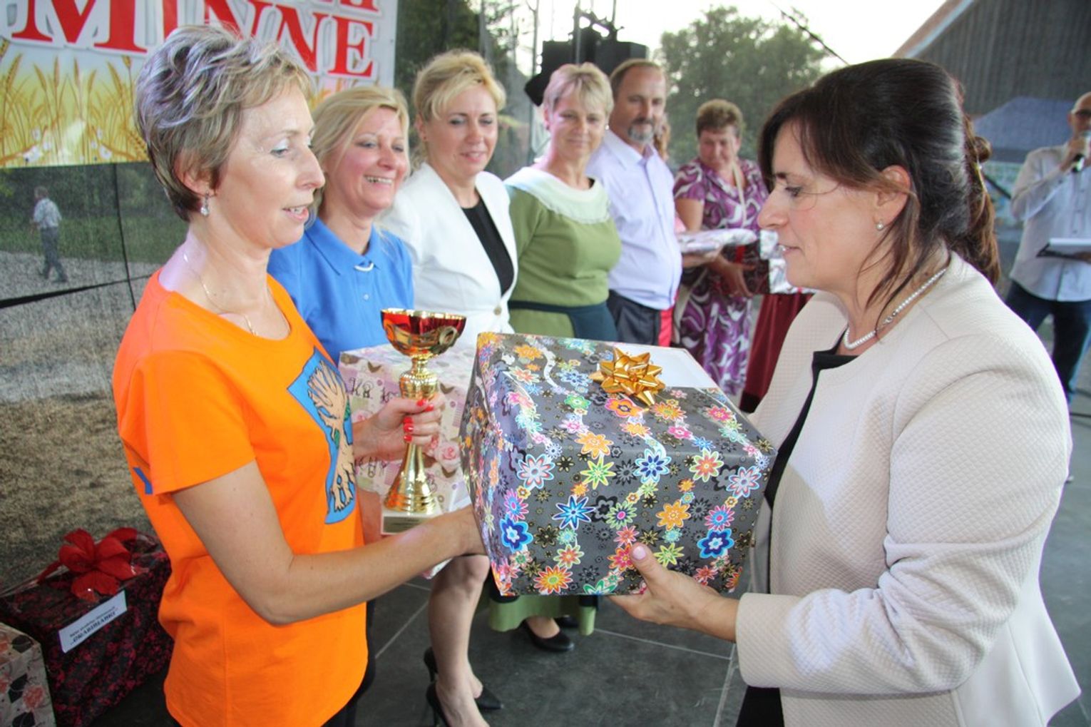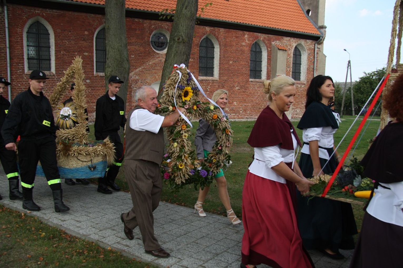 Tegoroczne obchody Dożynek Gminnych odbyły się 13 września w Koźlinach. Ceremoniał dożynkowy rozpoczęła uroczysta Msza Święta w kościele p.w. Matki Boskiej Różańcowej, prowadzona przez ks. Proboszcza Krzysztofa Zdrojewskiego, z udziałem ks. Dziekana Jana Świstowicza oraz ks. Janusza Mathea.Następnie przy asyście Kociewsko – Kaszubskiej Orkiestry Dętej TORPEDA przeszedł z kościoła na miejsce obchodów orszak z wieńcami dożynkowymi wykonanymi przez każde sołectwo naszej Gminy. Nagrodę Marszałka Senatu Bogdana Borusewicza, wręczoną przez p. Małgorzatę Gładysz otrzymał wieniec sołectwa Steblewo.Tegorocznej uroczystości przewodzili Starostowie – sołtys wsi Koźliny p. Antoni Ciunowicz oraz p. Eugenia Fryga.Gości oraz przybyłych mieszkańców powitała p. Wójt Barbara Kamińska. Część artystyczną rozpoczęły Panie z Koła Gospodyń Wiejskich w Koźlinach tańcem ludowym krakowiak oraz piosenką o ich wsi, spędzanym wolnym czasie oraz o naszej Gminie. Piosenkę o Żuławach i również o Gminie Suchy Dąb zaśpiewały dzieci z Zespołu Szkół – Marcelina i Jasiek.Następnie rozpoczął się Turniej Sołectw o Puchar Wójta Gminy Suchy Dąb. W klasyfikacji indywidualnej pierwsze miejsca w konkurencjach zajęły sołectwa:• Kaczka Dziwaczka (wypiek) – Koźliny• Spodnie Farmera – Krzywe Koło• Na narty ze znajomymi – Ostrowite• Skaczcie do góry jak kangury – Koźliny pokonały Suchy Dąb, Steblewo wygrało z Krzywym Kołem, Grabiny-Zameczek z Wróblewem, a Ostrowite z Osicami• Zimne piwko po pracy – Ostrowite• Łaciata – Ostrowite• Na swoją stronę – OstrowiteTym samym sołectwo Ostrowite zdobyło w ogólnej klasyfikacji 45 punktów i wygrało cały Turniej zajmując na podium I miejsce. II miejsce zajęło sołectwo Suchy Dąb, a III miejsce Grabiny-Zameczek.Po wręczeniu nagród i krótkiej przerwie na scenie znów stanęły Gospodynie z Koźlin. Śpiewając Koźlińską Bałkanicę zagrzewały ludzi do tańca. O godzinie 19.00 rozpoczął się występ gwiazdy wieczoru – Jerzego Kryszaka, a po zmroku na obecnych czekały kolejne atrakcje – Fireshow, czyli pokaz tańca z ogniem grupy Flagrantis, a następnie pokaz laserowy firmy Visual Sensation. Zwieńczeniem całej imprezy była zabawa taneczna.W między czasie mieszkańcy naszej Gminy mogli zajrzeć w różne stoiska handlowe, kupić coś do jedzenia i do picia lub nabyć ciekawe gadżety i zabawki. Namioty sołeckie oferowały swojskie jadło, którym można było się poczęstować. Najmłodsi bawili się na zjeżdżalni, karuzeli, w dmuchanych kulach w basenie z wodą, z animatorem – mimem, który miał dla nich mnóstwo niespodzianek i nagród oraz w namiocie Orange, gdzie prowadzone były warsztaty dla dzieci, a także rozdawano watę cukrową i popcorn.Organizator pragnie z całego serca podziękować przede wszystkim:• mieszkańcom Koźlin i KGW Koźliny za przygotowanie terenu, dekoracje i pomoc w przygotowaniu i uprzątnięciu miejsca imprezy,• Kołom Gospodyń Wiejskich za przyrządzenie poczęstunku dla gości,• OSP Koźliny i OSP Steblewo za to, że cały czas czuwali nad naszym bezpieczeństwem,• Koleżankom i kolegom z pracy za ogromne wsparcie i pomoc w przygotowaniach, jak i w czasie trwania całej imprezy.