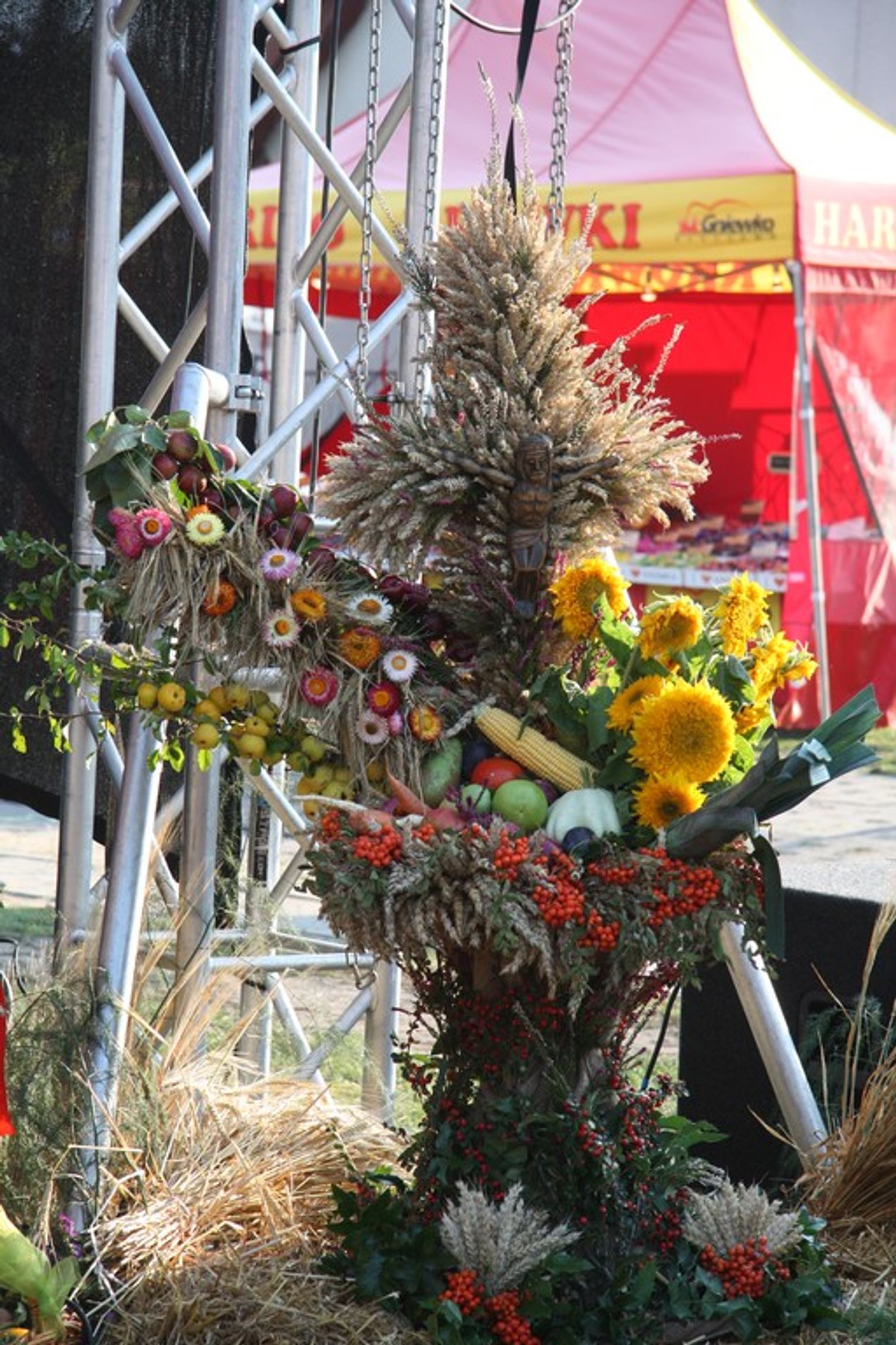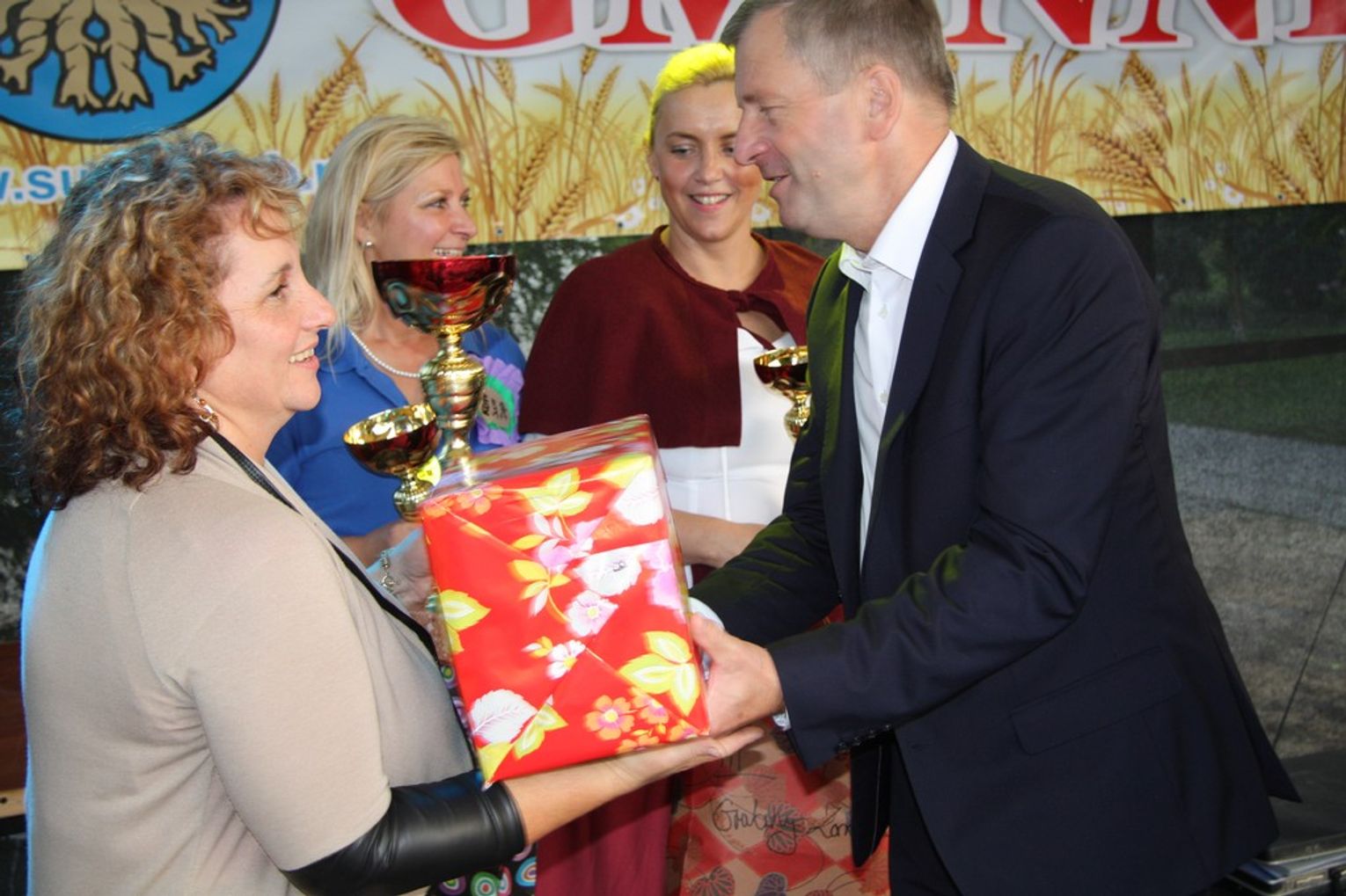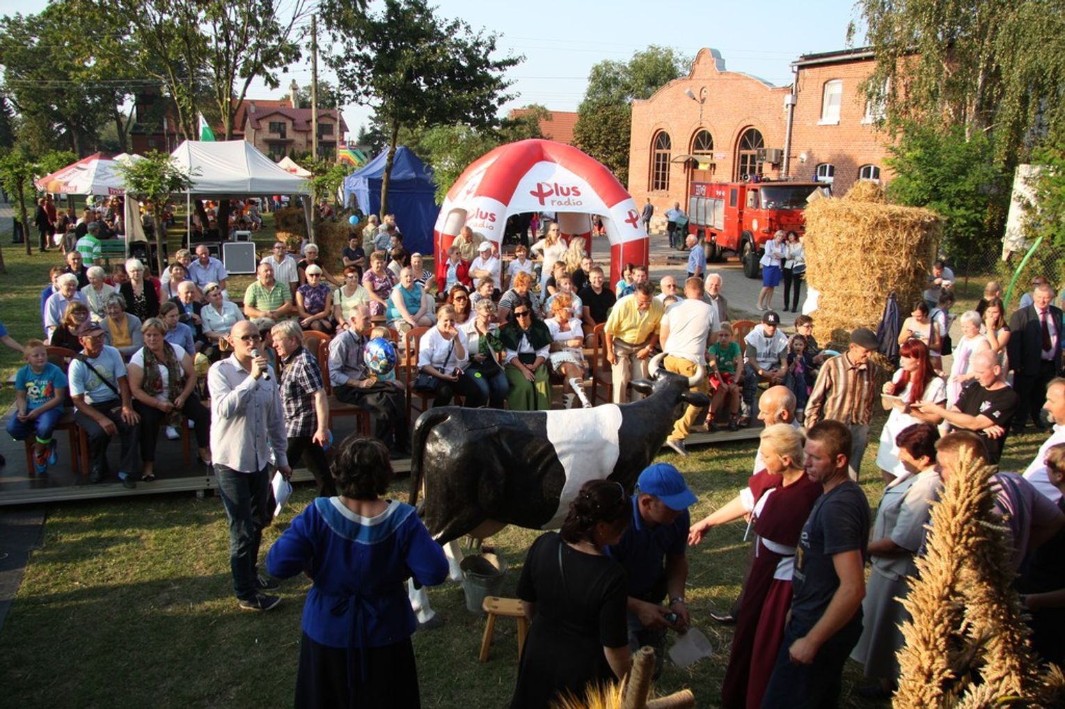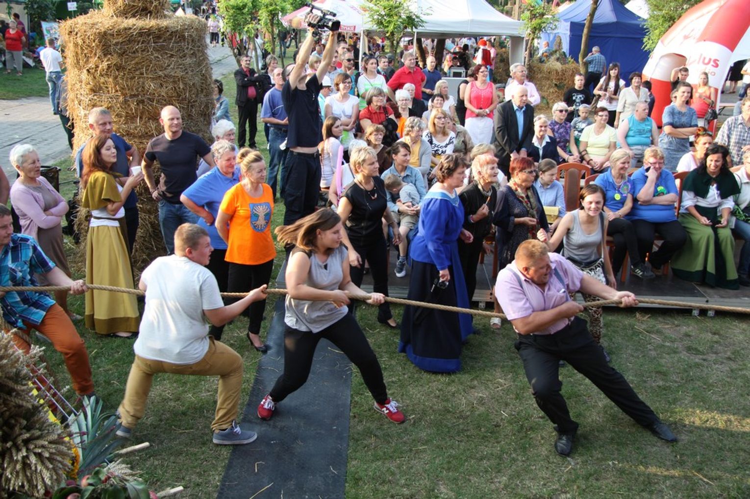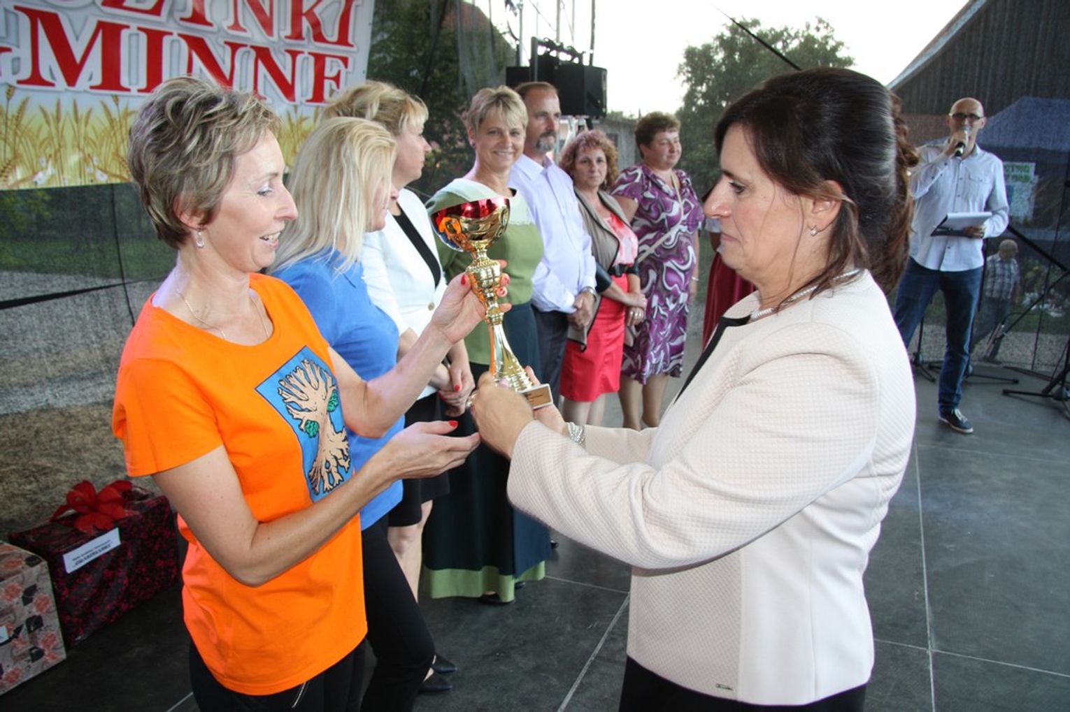 Tegoroczne obchody Dożynek Gminnych odbyły się 13 września w Koźlinach. Ceremoniał dożynkowy rozpoczęła uroczysta Msza Święta w kościele p.w. Matki Boskiej Różańcowej, prowadzona przez ks. Proboszcza Krzysztofa Zdrojewskiego, z udziałem ks. Dziekana Jana Świstowicza oraz ks. Janusza Mathea.Następnie przy asyście Kociewsko – Kaszubskiej Orkiestry Dętej TORPEDA przeszedł z kościoła na miejsce obchodów orszak z wieńcami dożynkowymi wykonanymi przez każde sołectwo naszej Gminy. Nagrodę Marszałka Senatu Bogdana Borusewicza, wręczoną przez p. Małgorzatę Gładysz otrzymał wieniec sołectwa Steblewo.Tegorocznej uroczystości przewodzili Starostowie – sołtys wsi Koźliny p. Antoni Ciunowicz oraz p. Eugenia Fryga.Gości oraz przybyłych mieszkańców powitała p. Wójt Barbara Kamińska. Część artystyczną rozpoczęły Panie z Koła Gospodyń Wiejskich w Koźlinach tańcem ludowym krakowiak oraz piosenką o ich wsi, spędzanym wolnym czasie oraz o naszej Gminie. Piosenkę o Żuławach i również o Gminie Suchy Dąb zaśpiewały dzieci z Zespołu Szkół – Marcelina i Jasiek.Następnie rozpoczął się Turniej Sołectw o Puchar Wójta Gminy Suchy Dąb. W klasyfikacji indywidualnej pierwsze miejsca w konkurencjach zajęły sołectwa:• Kaczka Dziwaczka (wypiek) – Koźliny• Spodnie Farmera – Krzywe Koło• Na narty ze znajomymi – Ostrowite• Skaczcie do góry jak kangury – Koźliny pokonały Suchy Dąb, Steblewo wygrało z Krzywym Kołem, Grabiny-Zameczek z Wróblewem, a Ostrowite z Osicami• Zimne piwko po pracy – Ostrowite• Łaciata – Ostrowite• Na swoją stronę – OstrowiteTym samym sołectwo Ostrowite zdobyło w ogólnej klasyfikacji 45 punktów i wygrało cały Turniej zajmując na podium I miejsce. II miejsce zajęło sołectwo Suchy Dąb, a III miejsce Grabiny-Zameczek.Po wręczeniu nagród i krótkiej przerwie na scenie znów stanęły Gospodynie z Koźlin. Śpiewając Koźlińską Bałkanicę zagrzewały ludzi do tańca. O godzinie 19.00 rozpoczął się występ gwiazdy wieczoru – Jerzego Kryszaka, a po zmroku na obecnych czekały kolejne atrakcje – Fireshow, czyli pokaz tańca z ogniem grupy Flagrantis, a następnie pokaz laserowy firmy Visual Sensation. Zwieńczeniem całej imprezy była zabawa taneczna.W między czasie mieszkańcy naszej Gminy mogli zajrzeć w różne stoiska handlowe, kupić coś do jedzenia i do picia lub nabyć ciekawe gadżety i zabawki. Namioty sołeckie oferowały swojskie jadło, którym można było się poczęstować. Najmłodsi bawili się na zjeżdżalni, karuzeli, w dmuchanych kulach w basenie z wodą, z animatorem – mimem, który miał dla nich mnóstwo niespodzianek i nagród oraz w namiocie Orange, gdzie prowadzone były warsztaty dla dzieci, a także rozdawano watę cukrową i popcorn.Organizator pragnie z całego serca podziękować przede wszystkim:• mieszkańcom Koźlin i KGW Koźliny za przygotowanie terenu, dekoracje i pomoc w przygotowaniu i uprzątnięciu miejsca imprezy,• Kołom Gospodyń Wiejskich za przyrządzenie poczęstunku dla gości,• OSP Koźliny i OSP Steblewo za to, że cały czas czuwali nad naszym bezpieczeństwem,• Koleżankom i kolegom z pracy za ogromne wsparcie i pomoc w przygotowaniach, jak i w czasie trwania całej imprezy.