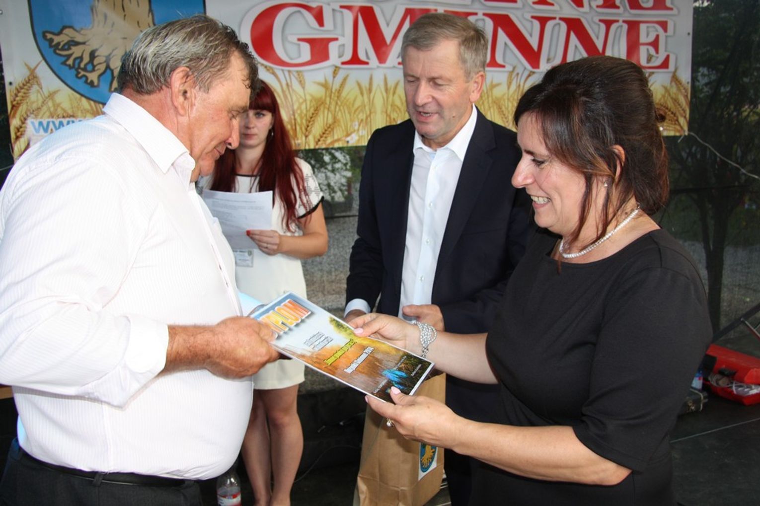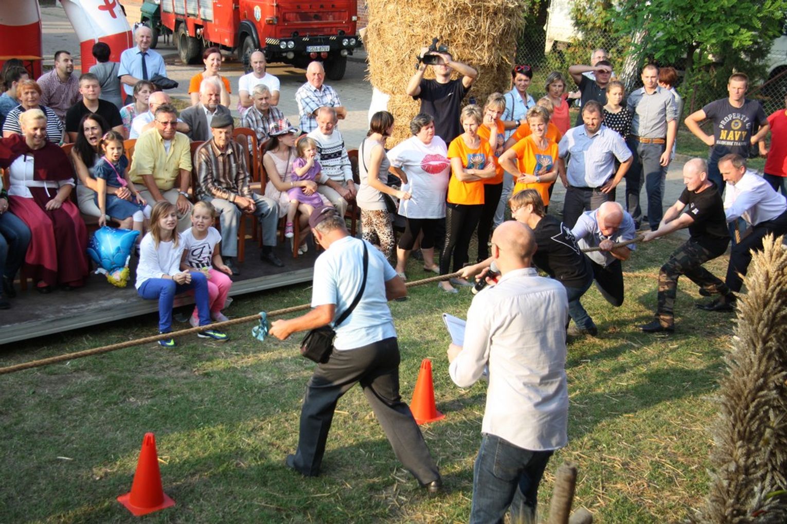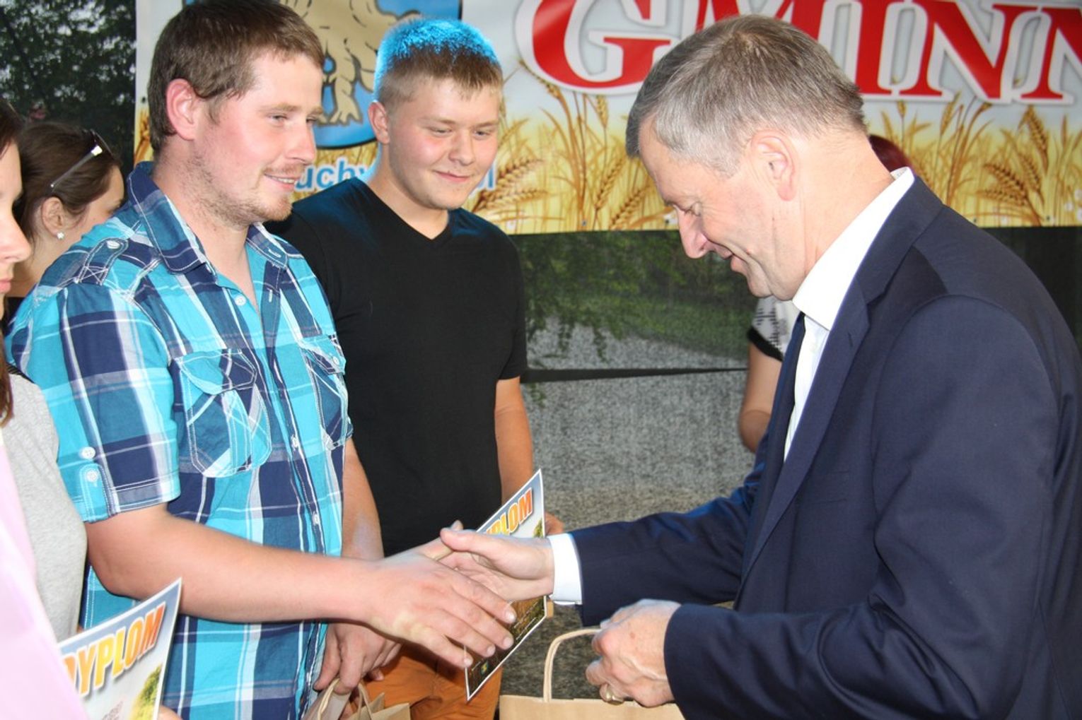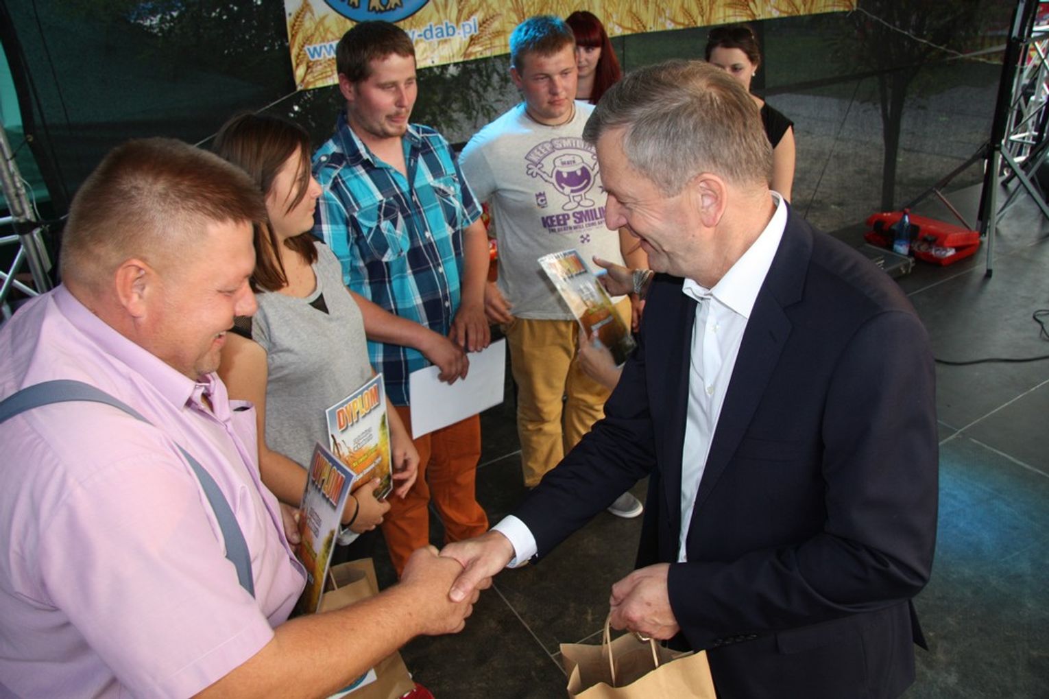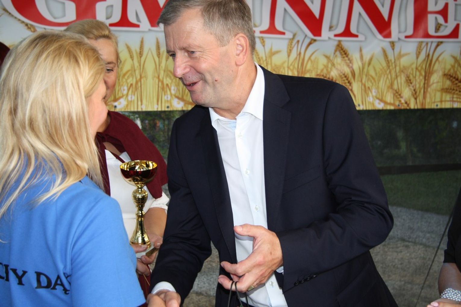 Tegoroczne obchody Dożynek Gminnych odbyły się 13 września w Koźlinach. Ceremoniał dożynkowy rozpoczęła uroczysta Msza Święta w kościele p.w. Matki Boskiej Różańcowej, prowadzona przez ks. Proboszcza Krzysztofa Zdrojewskiego, z udziałem ks. Dziekana Jana Świstowicza oraz ks. Janusza Mathea.Następnie przy asyście Kociewsko – Kaszubskiej Orkiestry Dętej TORPEDA przeszedł z kościoła na miejsce obchodów orszak z wieńcami dożynkowymi wykonanymi przez każde sołectwo naszej Gminy. Nagrodę Marszałka Senatu Bogdana Borusewicza, wręczoną przez p. Małgorzatę Gładysz otrzymał wieniec sołectwa Steblewo.Tegorocznej uroczystości przewodzili Starostowie – sołtys wsi Koźliny p. Antoni Ciunowicz oraz p. Eugenia Fryga.Gości oraz przybyłych mieszkańców powitała p. Wójt Barbara Kamińska. Część artystyczną rozpoczęły Panie z Koła Gospodyń Wiejskich w Koźlinach tańcem ludowym krakowiak oraz piosenką o ich wsi, spędzanym wolnym czasie oraz o naszej Gminie. Piosenkę o Żuławach i również o Gminie Suchy Dąb zaśpiewały dzieci z Zespołu Szkół – Marcelina i Jasiek.Następnie rozpoczął się Turniej Sołectw o Puchar Wójta Gminy Suchy Dąb. W klasyfikacji indywidualnej pierwsze miejsca w konkurencjach zajęły sołectwa:• Kaczka Dziwaczka (wypiek) – Koźliny• Spodnie Farmera – Krzywe Koło• Na narty ze znajomymi – Ostrowite• Skaczcie do góry jak kangury – Koźliny pokonały Suchy Dąb, Steblewo wygrało z Krzywym Kołem, Grabiny-Zameczek z Wróblewem, a Ostrowite z Osicami• Zimne piwko po pracy – Ostrowite• Łaciata – Ostrowite• Na swoją stronę – OstrowiteTym samym sołectwo Ostrowite zdobyło w ogólnej klasyfikacji 45 punktów i wygrało cały Turniej zajmując na podium I miejsce. II miejsce zajęło sołectwo Suchy Dąb, a III miejsce Grabiny-Zameczek.Po wręczeniu nagród i krótkiej przerwie na scenie znów stanęły Gospodynie z Koźlin. Śpiewając Koźlińską Bałkanicę zagrzewały ludzi do tańca. O godzinie 19.00 rozpoczął się występ gwiazdy wieczoru – Jerzego Kryszaka, a po zmroku na obecnych czekały kolejne atrakcje – Fireshow, czyli pokaz tańca z ogniem grupy Flagrantis, a następnie pokaz laserowy firmy Visual Sensation. Zwieńczeniem całej imprezy była zabawa taneczna.W między czasie mieszkańcy naszej Gminy mogli zajrzeć w różne stoiska handlowe, kupić coś do jedzenia i do picia lub nabyć ciekawe gadżety i zabawki. Namioty sołeckie oferowały swojskie jadło, którym można było się poczęstować. Najmłodsi bawili się na zjeżdżalni, karuzeli, w dmuchanych kulach w basenie z wodą, z animatorem – mimem, który miał dla nich mnóstwo niespodzianek i nagród oraz w namiocie Orange, gdzie prowadzone były warsztaty dla dzieci, a także rozdawano watę cukrową i popcorn.Organizator pragnie z całego serca podziękować przede wszystkim:• mieszkańcom Koźlin i KGW Koźliny za przygotowanie terenu, dekoracje i pomoc w przygotowaniu i uprzątnięciu miejsca imprezy,• Kołom Gospodyń Wiejskich za przyrządzenie poczęstunku dla gości,• OSP Koźliny i OSP Steblewo za to, że cały czas czuwali nad naszym bezpieczeństwem,• Koleżankom i kolegom z pracy za ogromne wsparcie i pomoc w przygotowaniach, jak i w czasie trwania całej imprezy.