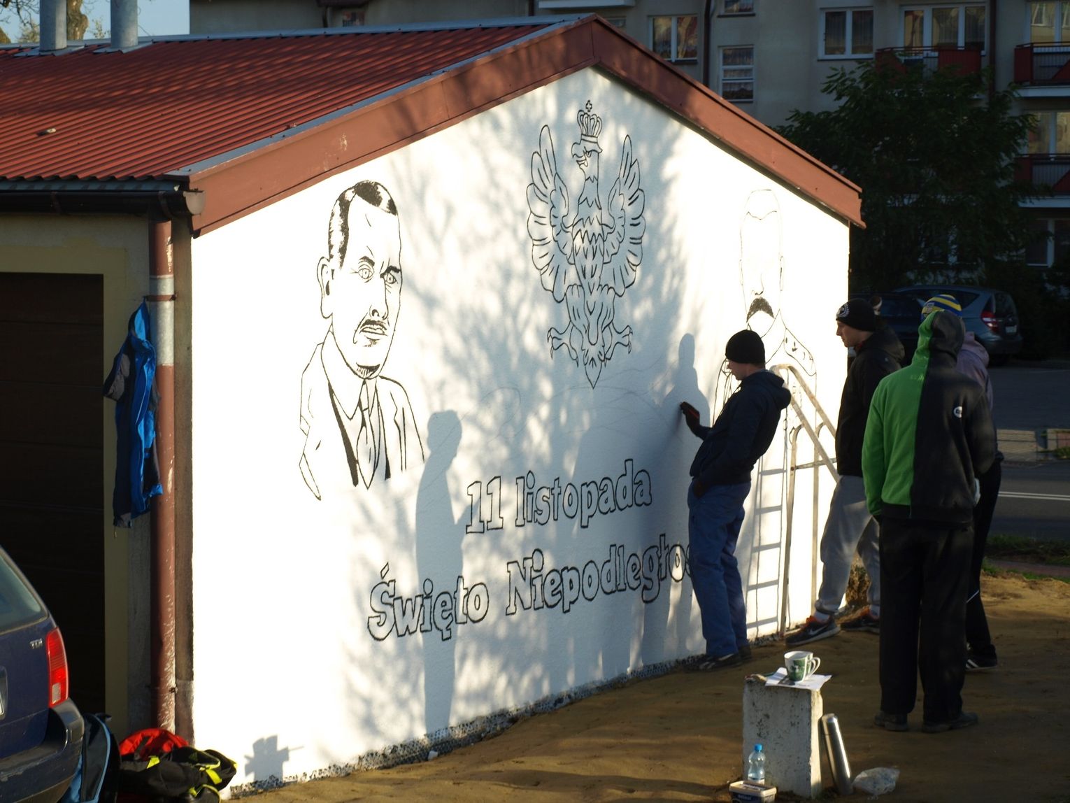 Witold Chamski z Tczewa wpadł na pomysł jak z obskurnych murów przy ul. Rokickiej zrobić miejsce patriotycznej pamięci. W czwartek ruszyły prace przy pierwszym muralu. Na ścianie szczytowej kilku garaży pojawił się orzeł, sylwetki Romana Dmowskiego oraz Józefa Piłsudskiego, do tego napis 11 listopada – Święto Niepodległości. Całość wkrótce dopełni biało-czerwona kolorystyka.
