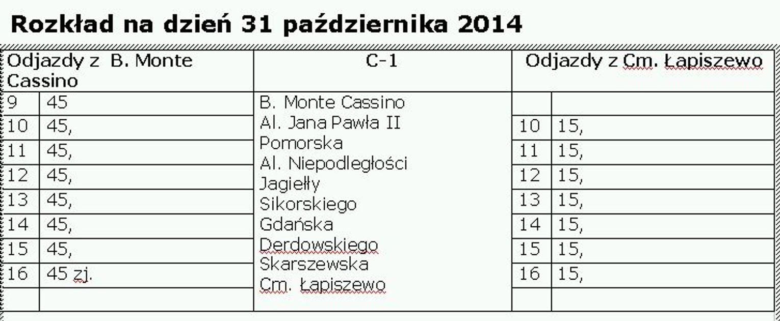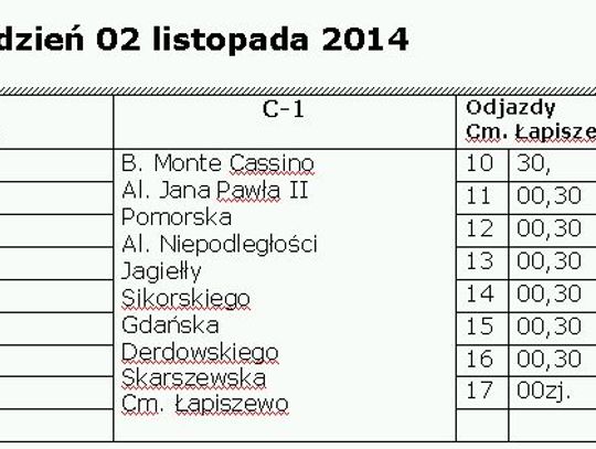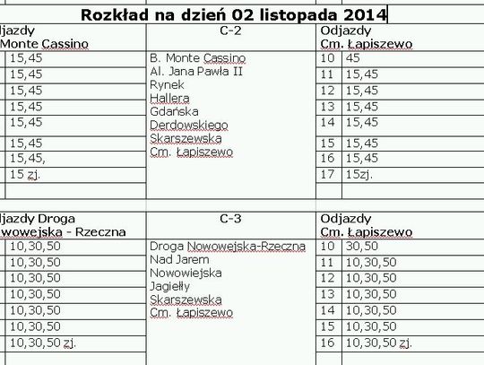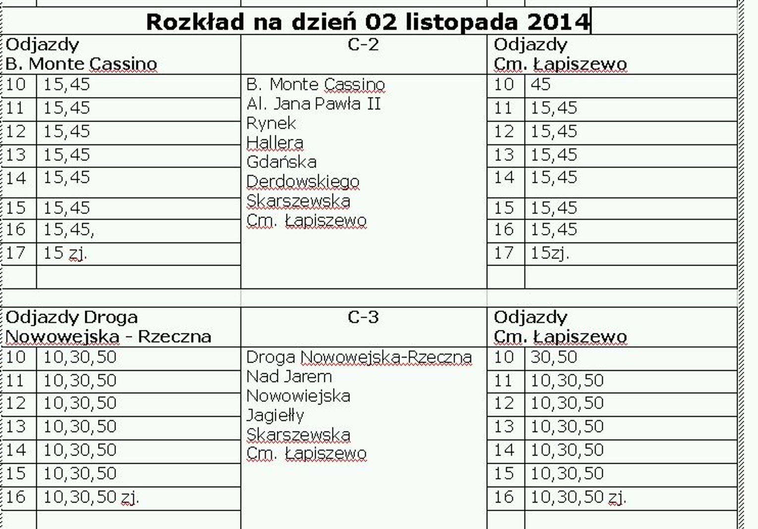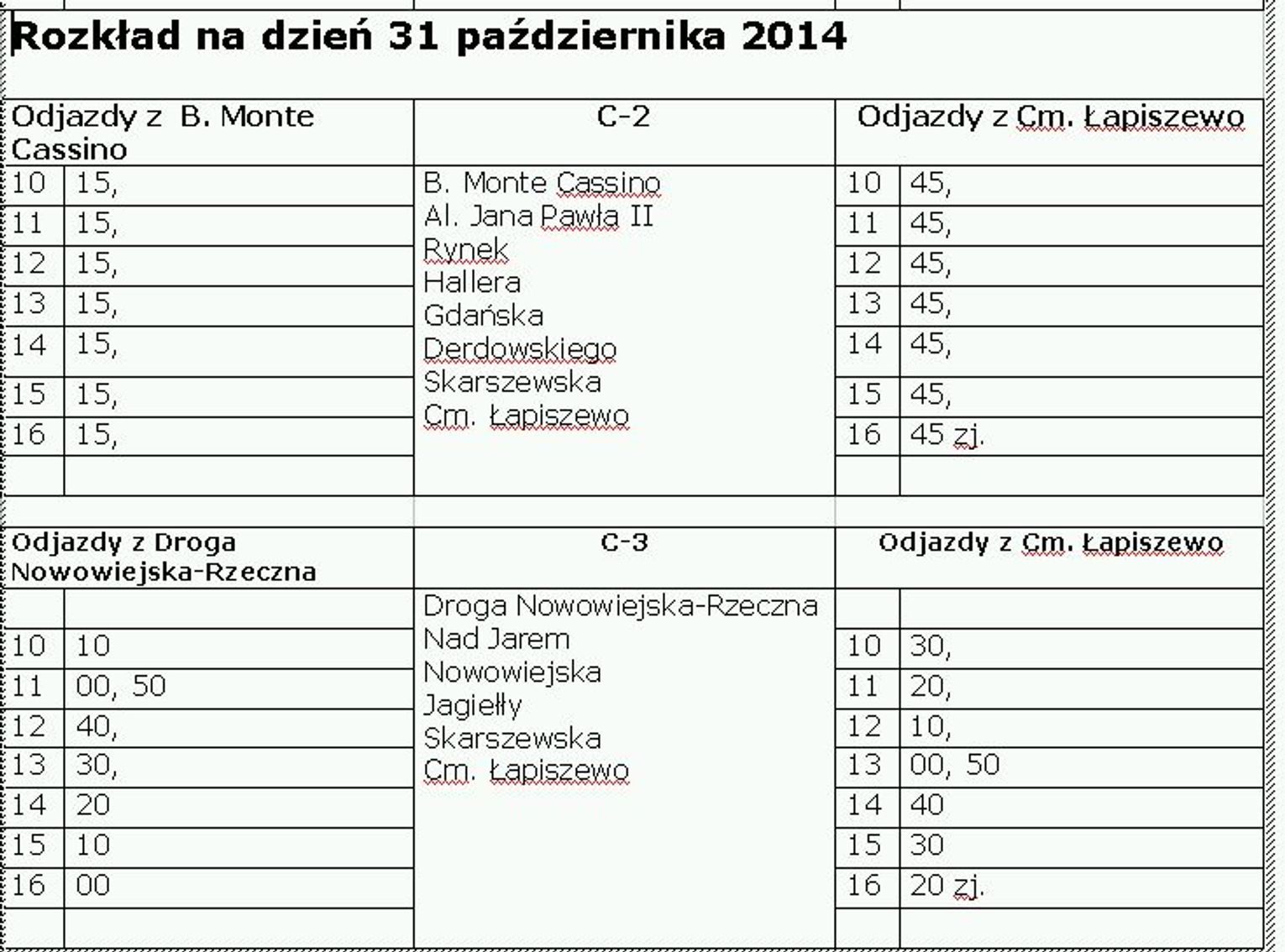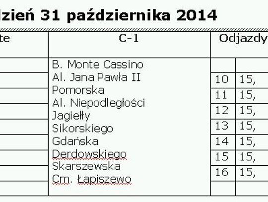 Rozkład jazdy autobusów MZK na 31.10. 2014r. oraz 01.-02.11....