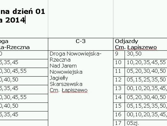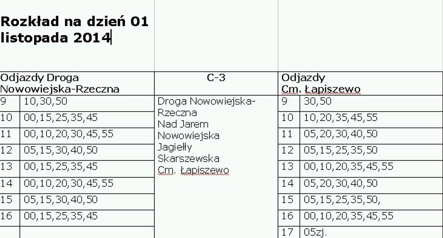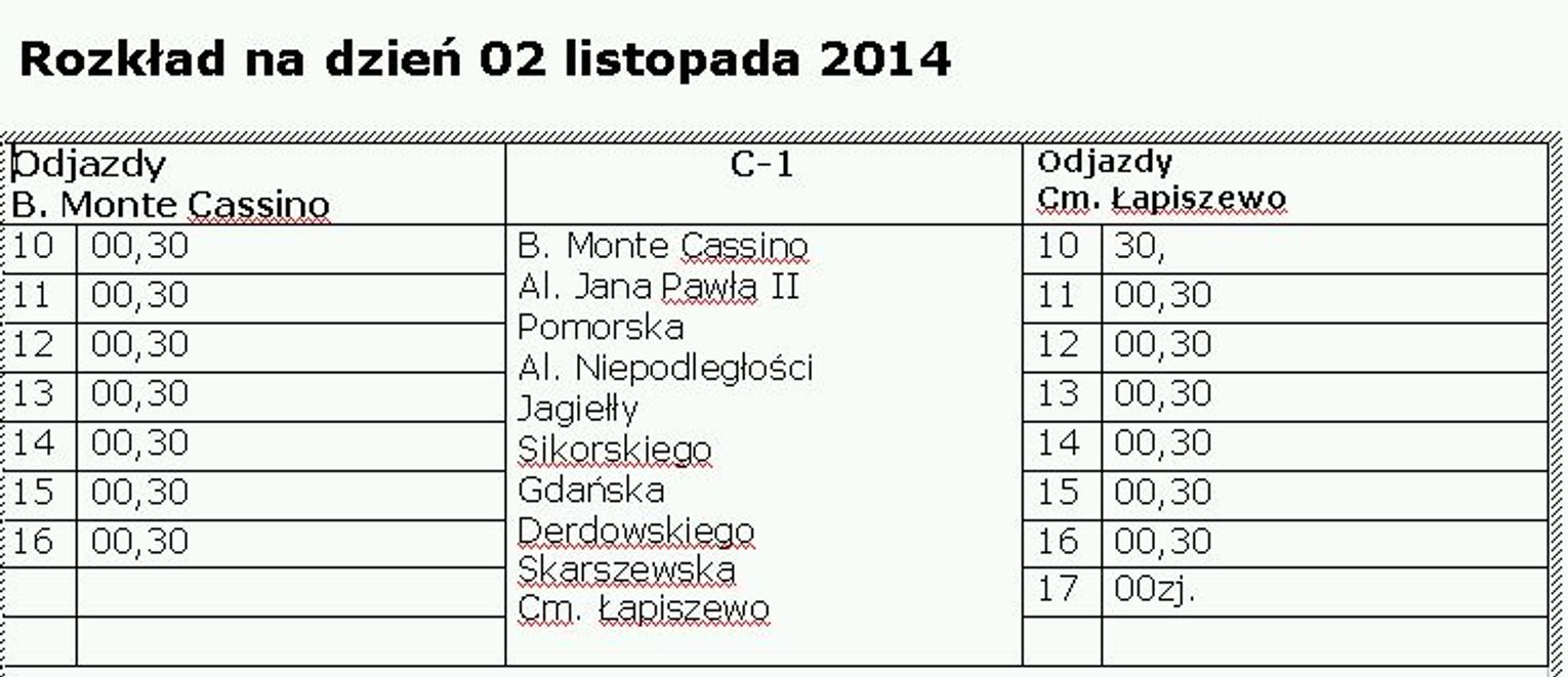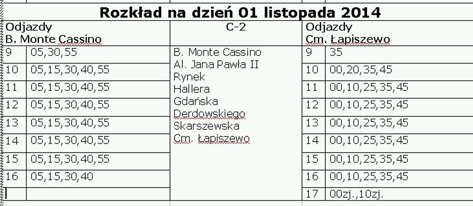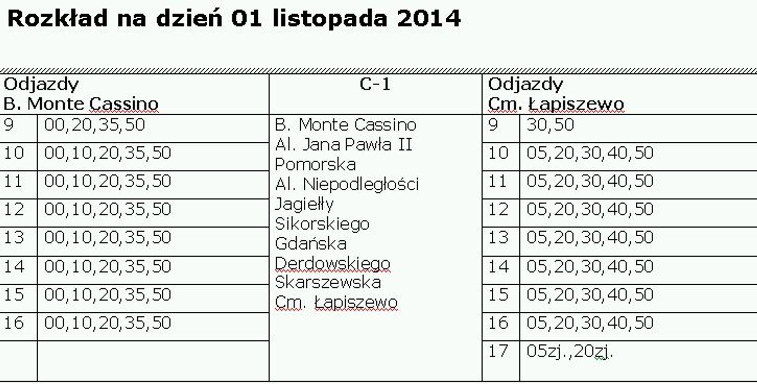 Rozkład jazdy autobusów MZK na 31.10. 2014r. oraz 01.-02.11....