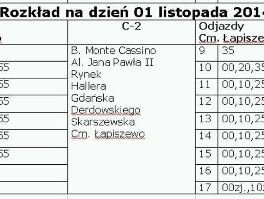 Rozkład jazdy autobusów MZK na 31.10. 2014r. oraz 01.-02.11. 2014 r.