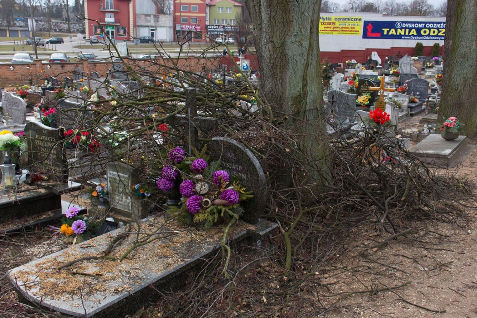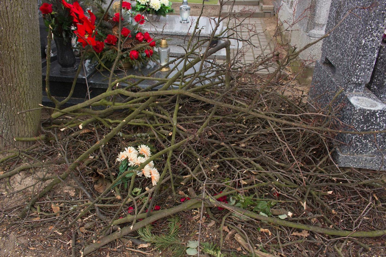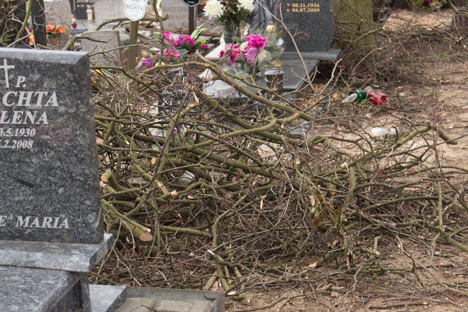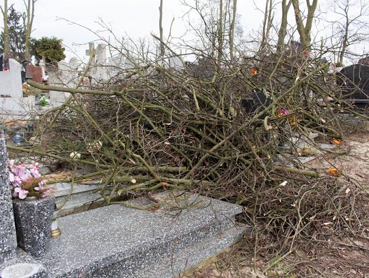 Obcięte gałęzie na cmentarzu przy ul. II Pułku Szwoleżerów Rokitniańskich