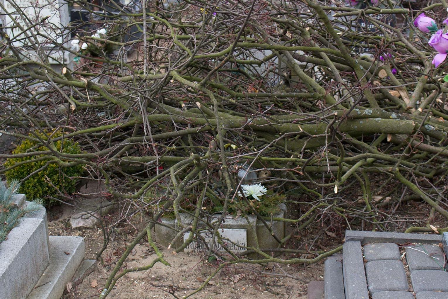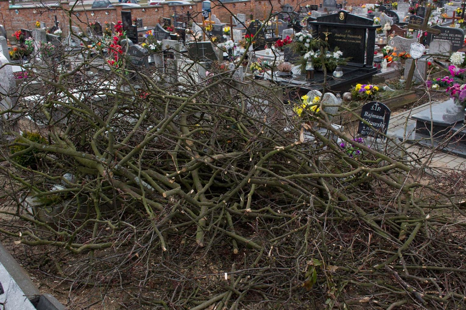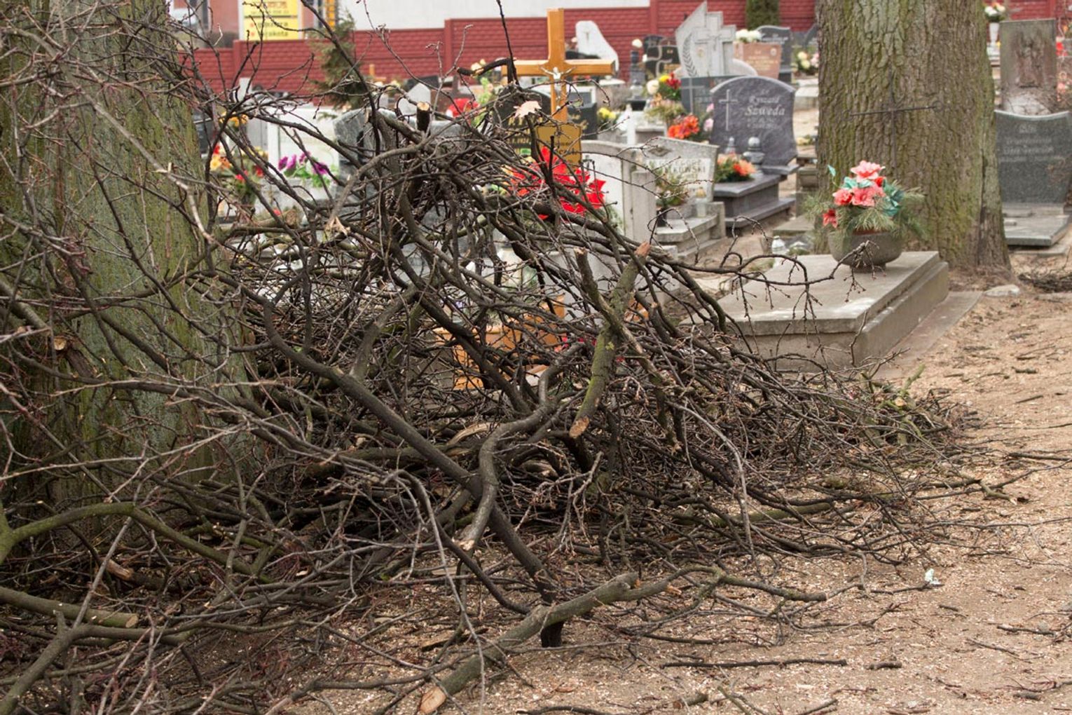 Obcięte gałęzie na cmentarzu przy ul. II Pułku Szwoleżerów R...