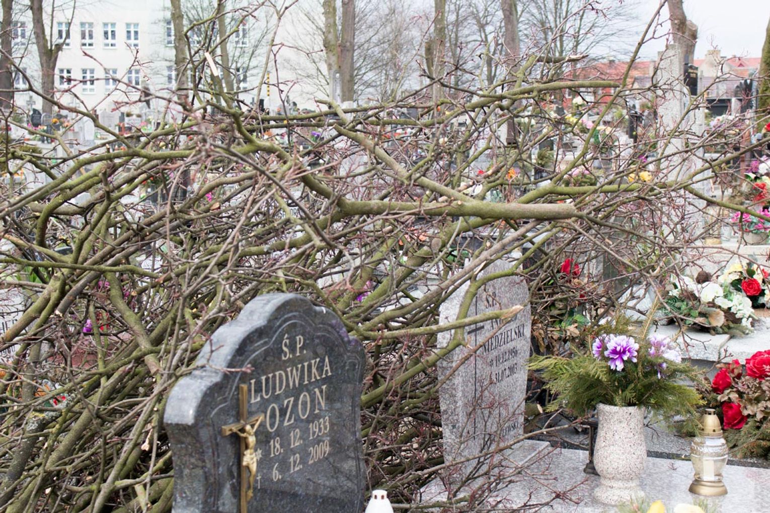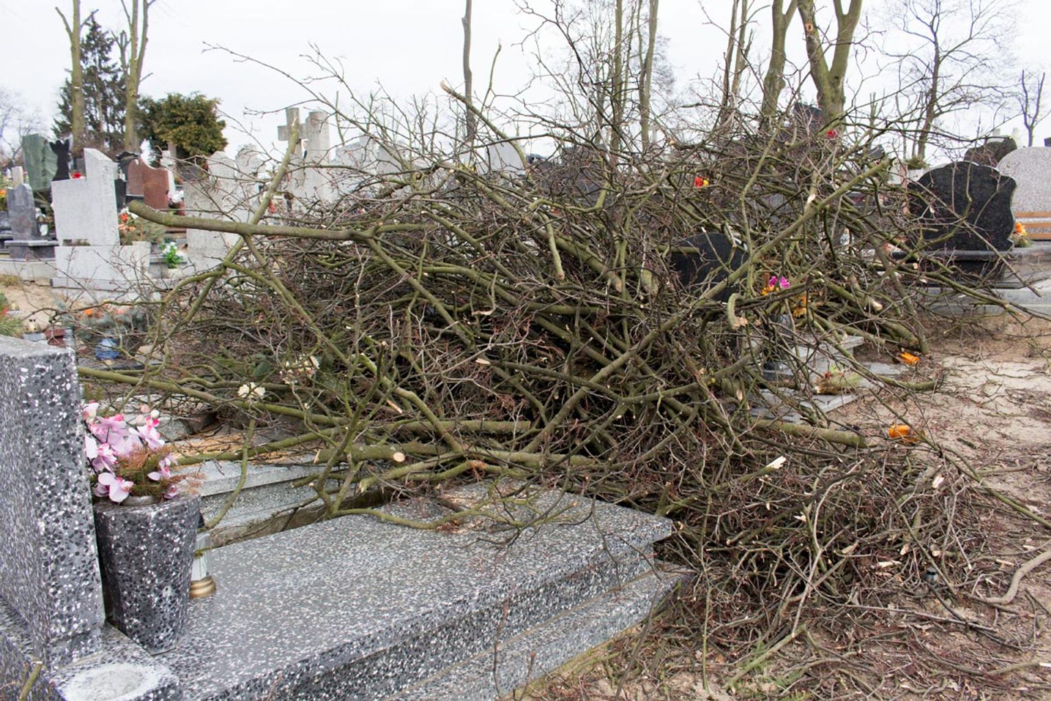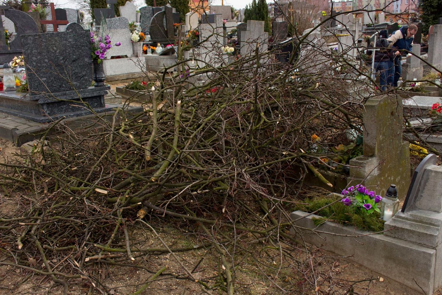 Obcięte gałęzie na cmentarzu przy ul. II Pułku Szwoleżerów R...