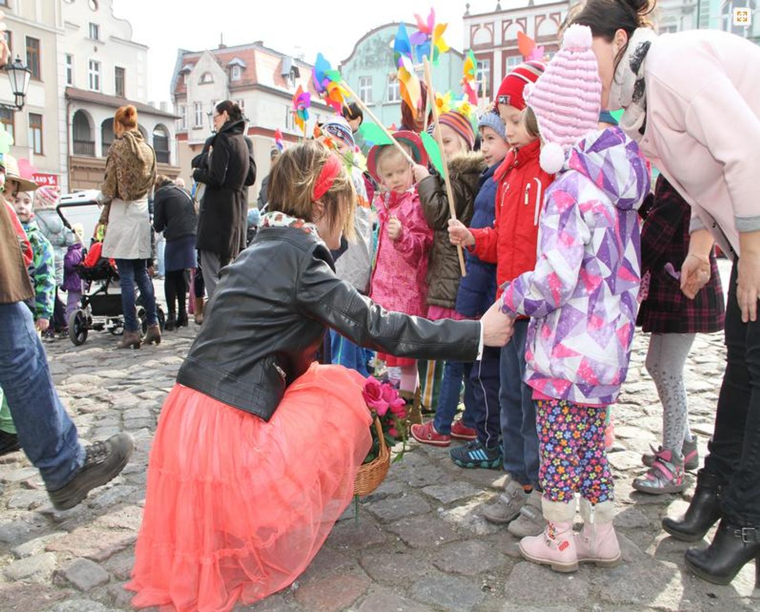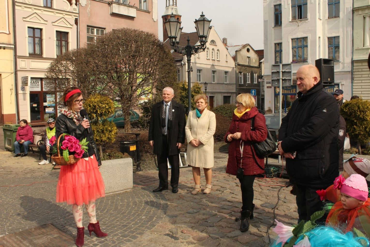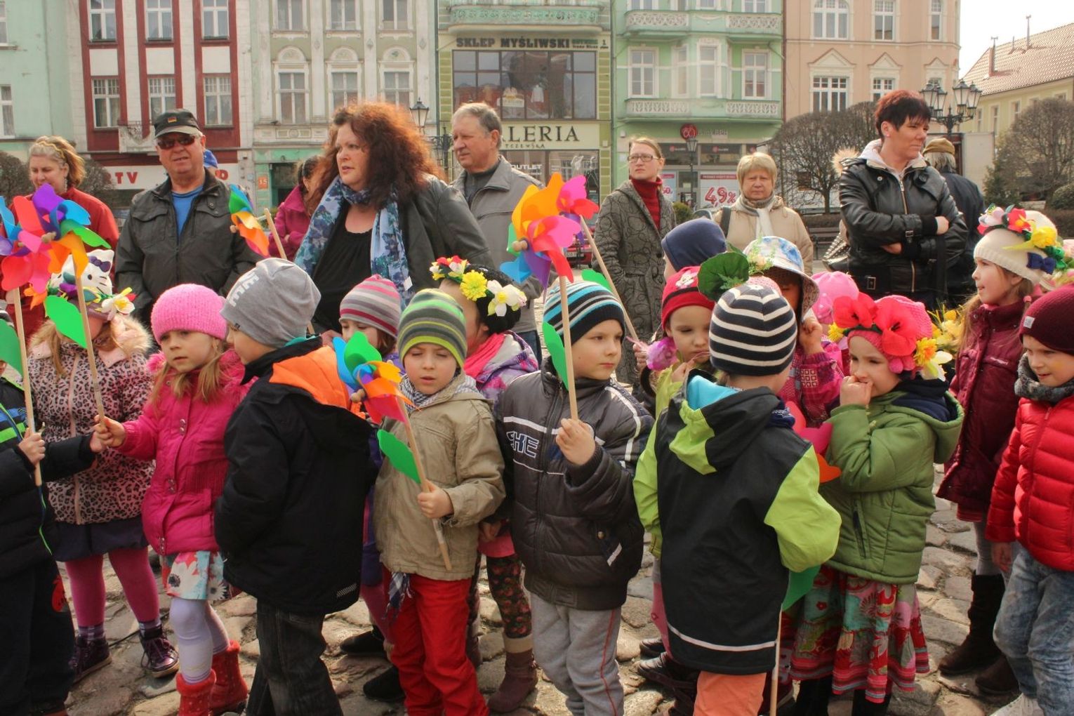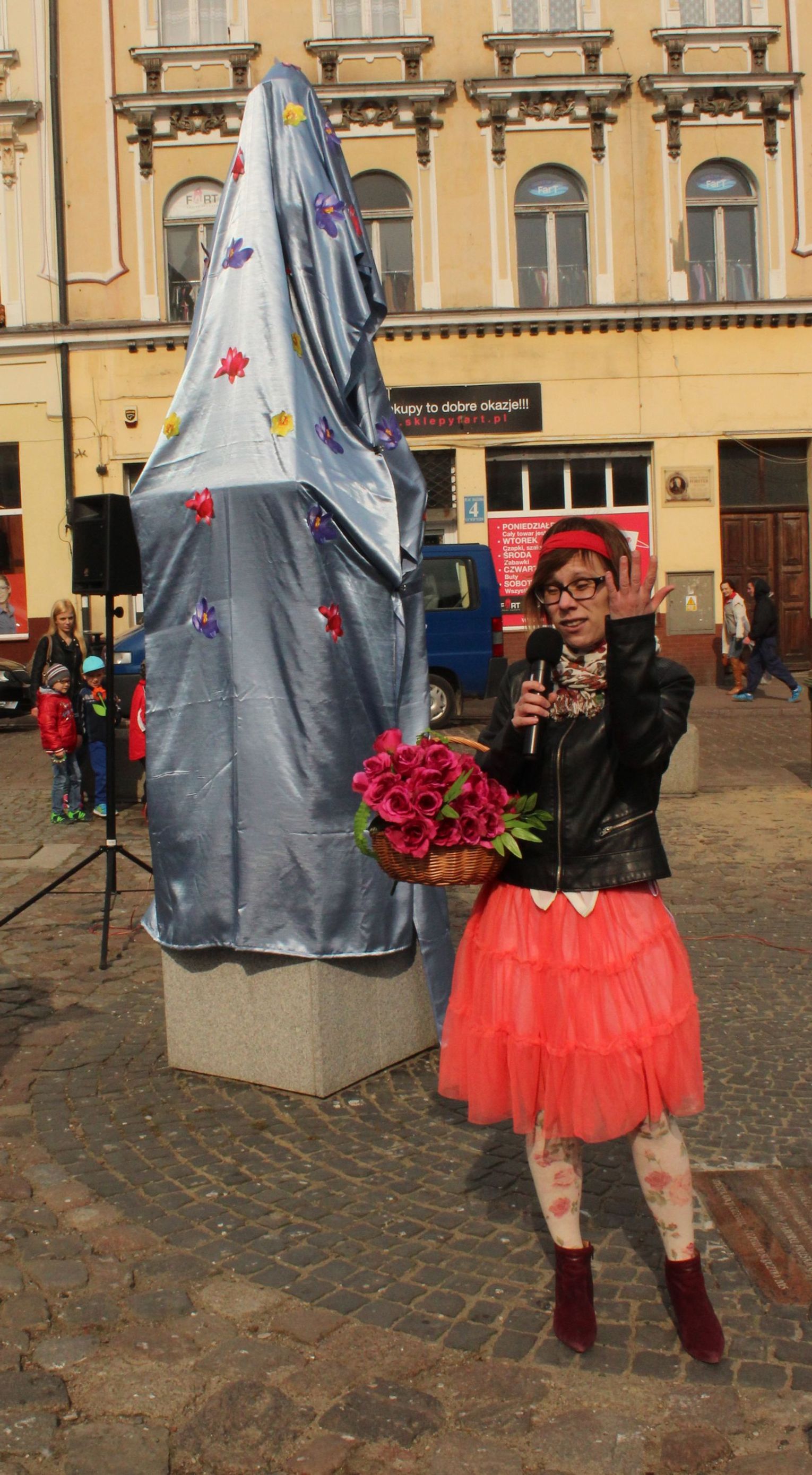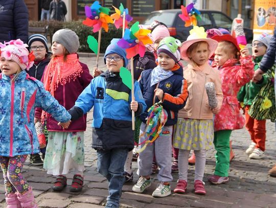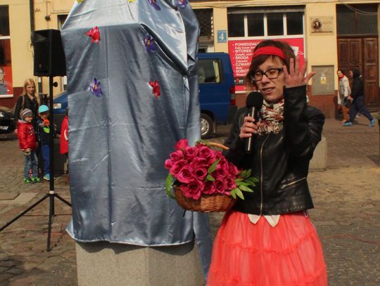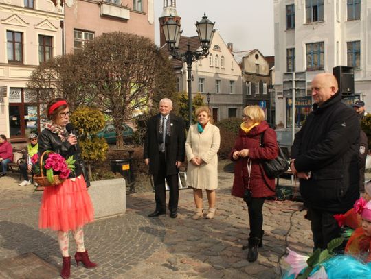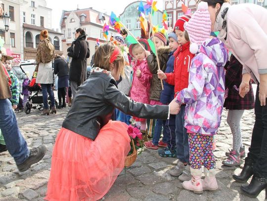 Tym razem pani wiosna w osobie Małgorzaty Kruk z Fabryki Sztuk wjechała na główny plac Starego Miasta nietypowym środkiem transportu – na motorze.