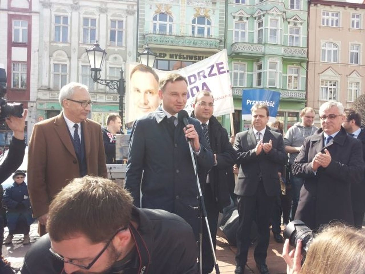 Andrzej Duda - kandydat z ramienie Prawa i Sprawiedliwości na Prezydenta RP, dzisiaj, w godzinach przedpołudniowych odwiedził Tczew. A. Duda spotkał się z mieszkańcami Tczewa na Placu Hallera, gdzie został entuzjastycznie przyjęty przez sporą ilość zgromadzonych tczewian. W swoim błyskotliwym przemówieniu podkreślił rolę, jaką prezydent powinien odgrywać w systemie prawnym państwa. Zadeklarował obronę polskich interesów, obniżenie wieku emerytalnego, obronę polskich pacjentów, a także wspieranie polskich przedsiębiorców. Andrzej Duda złożył też kwiaty pod tablicą Lecha Kaczyńskiego przed Centrum Kultury i Sztuki.