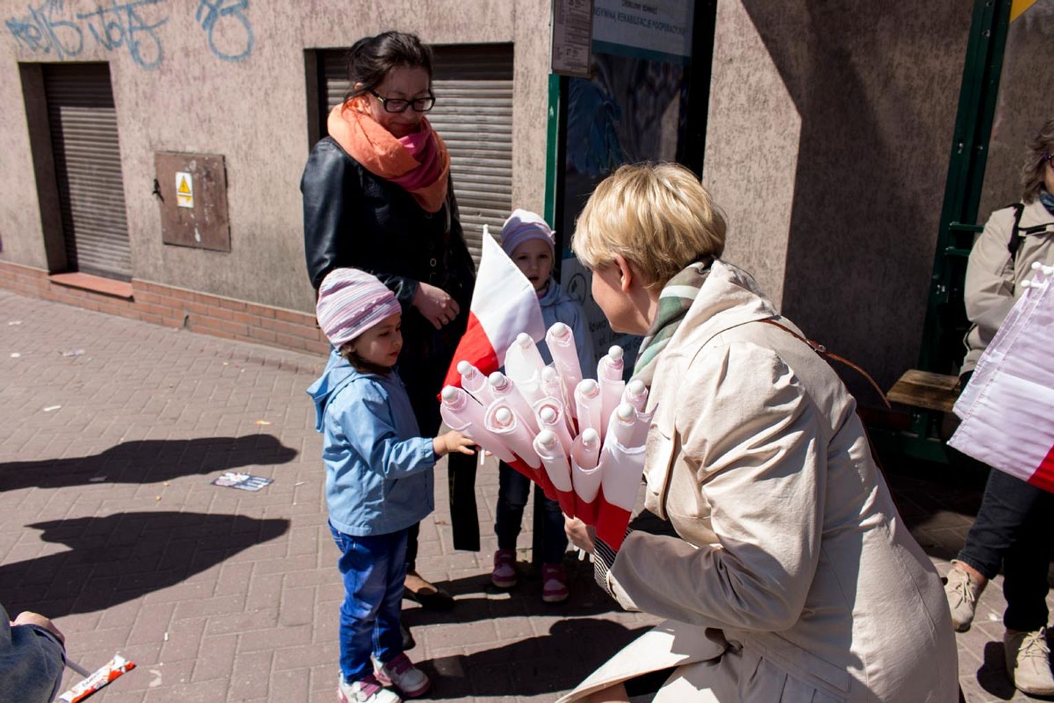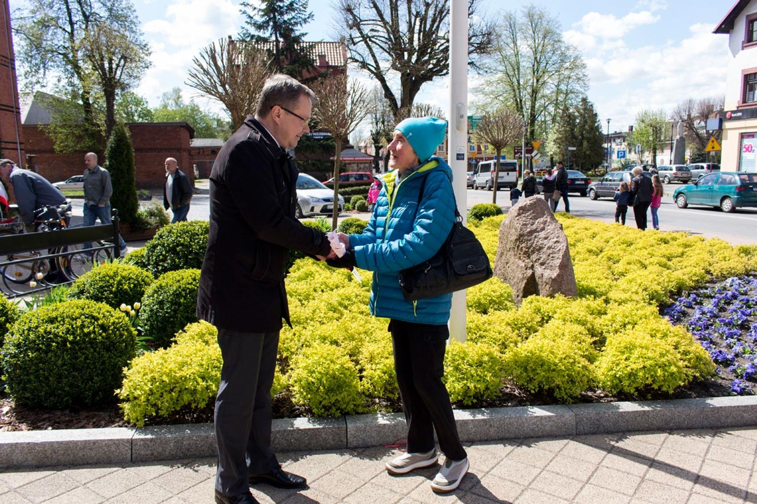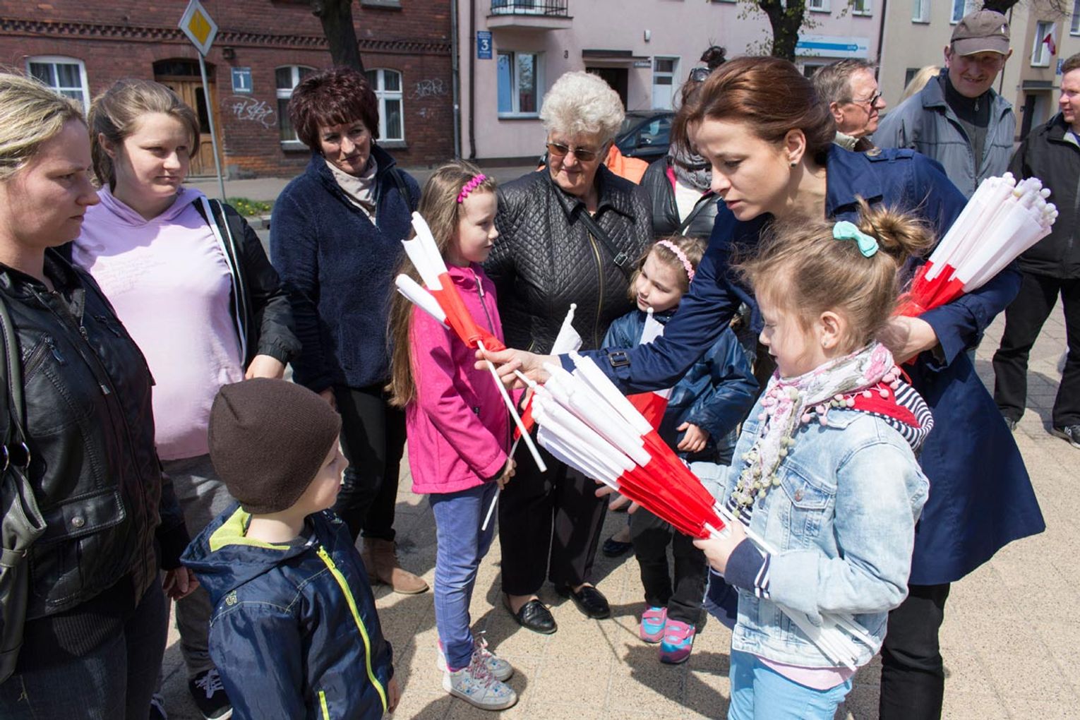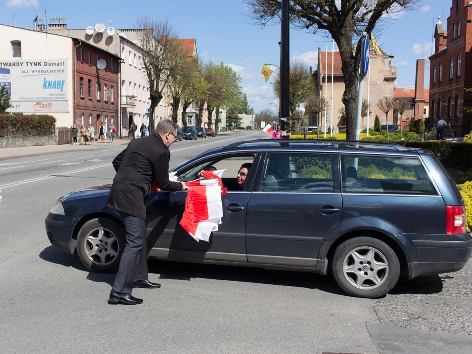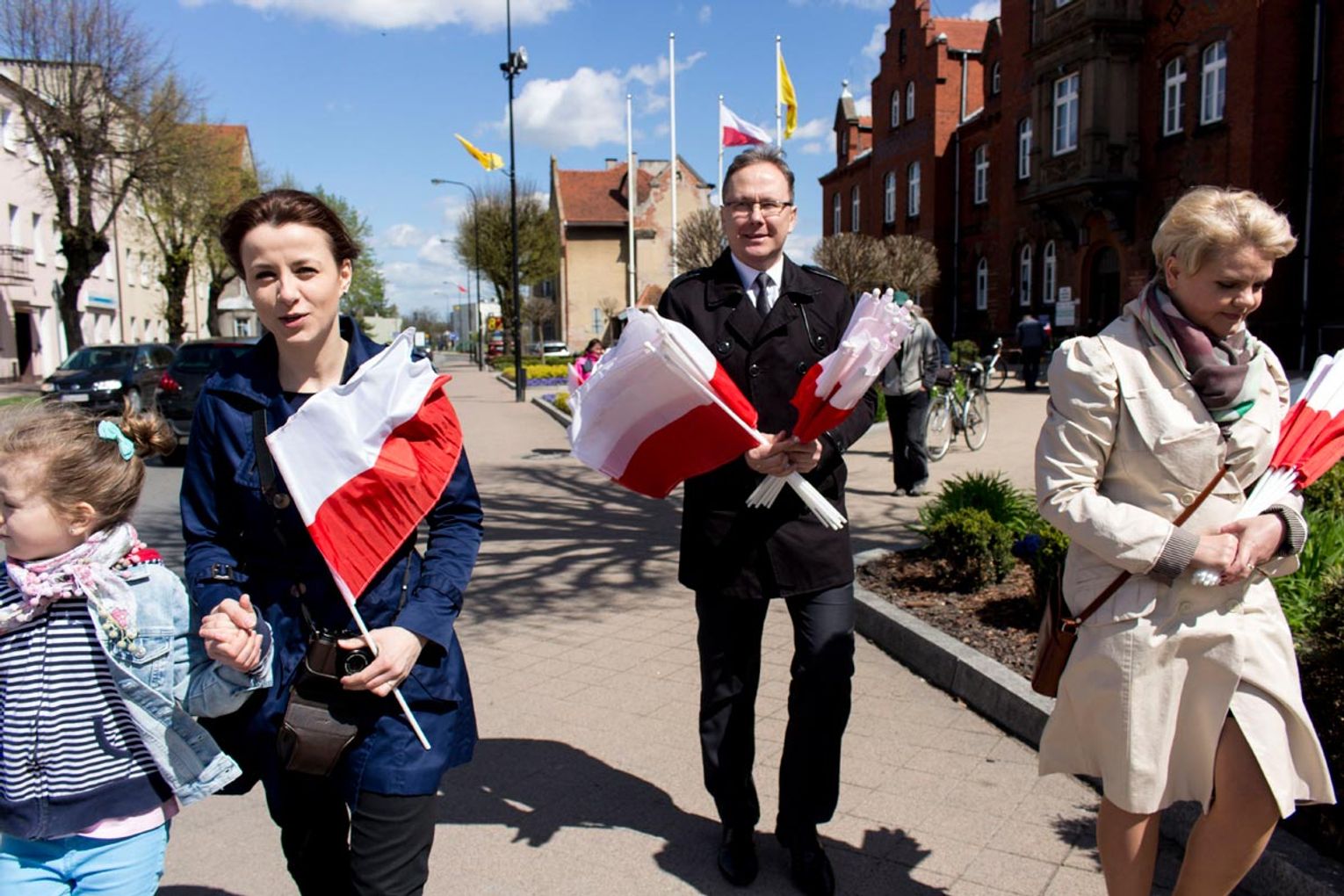 Dziś obchodziliśmy Święto Flagi. W Starogardzie Gd. nastąpiło uroczyste wciągnięcie flagi na masz przed Urzędem Miasta, a prezydent Janusz Stankowiak wraz z przewodniczącą Rady Miasta Anną Benert rozdawali mieszkańcom flagi Polski.