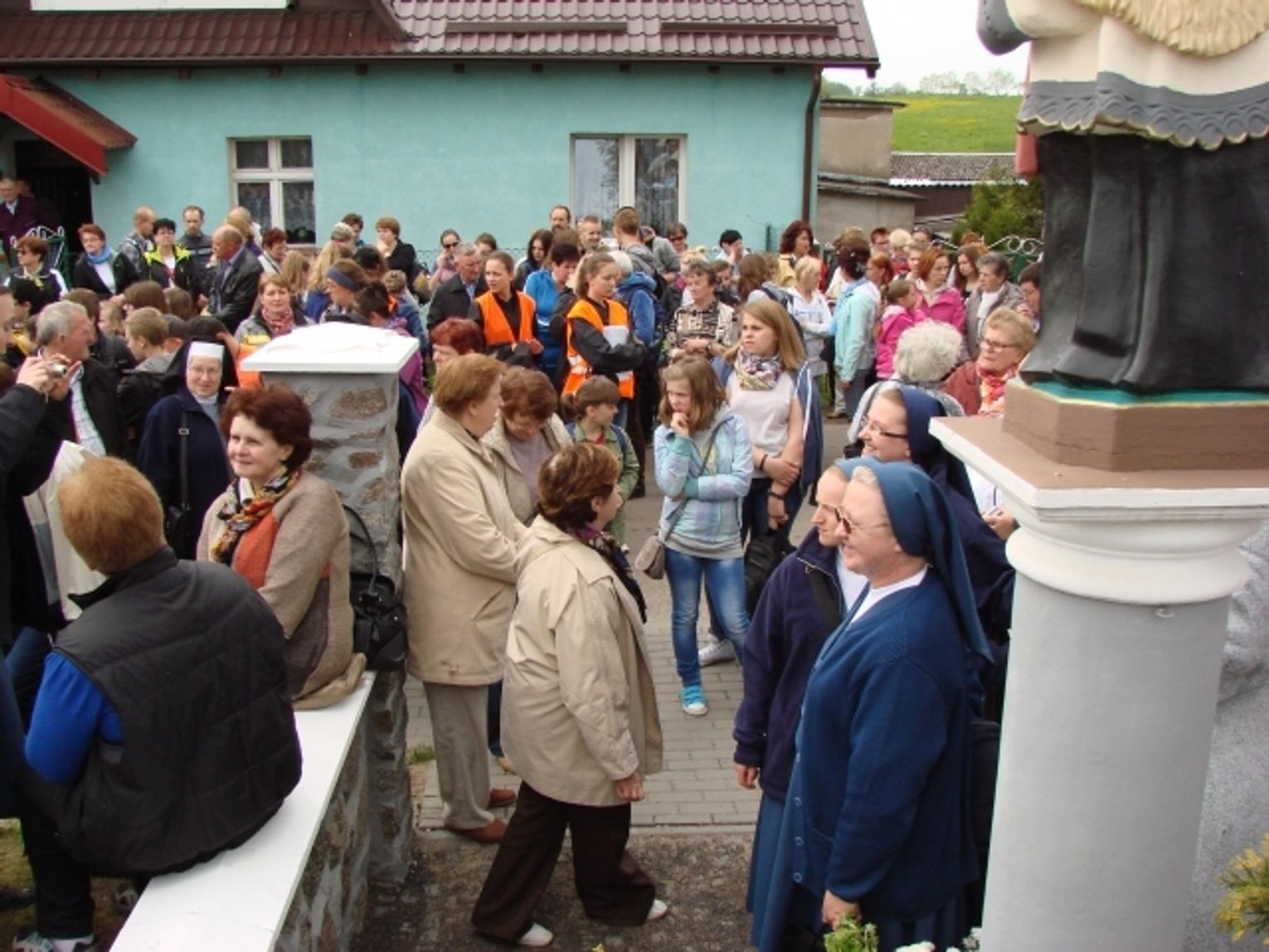 Fotorelacja z przywitania pielgrzymek oraz wspólnej modlitwy pod figurami bł. s. Marty Wieckiej oraz św. Jana Nepomucena w Nowym Wiecu.