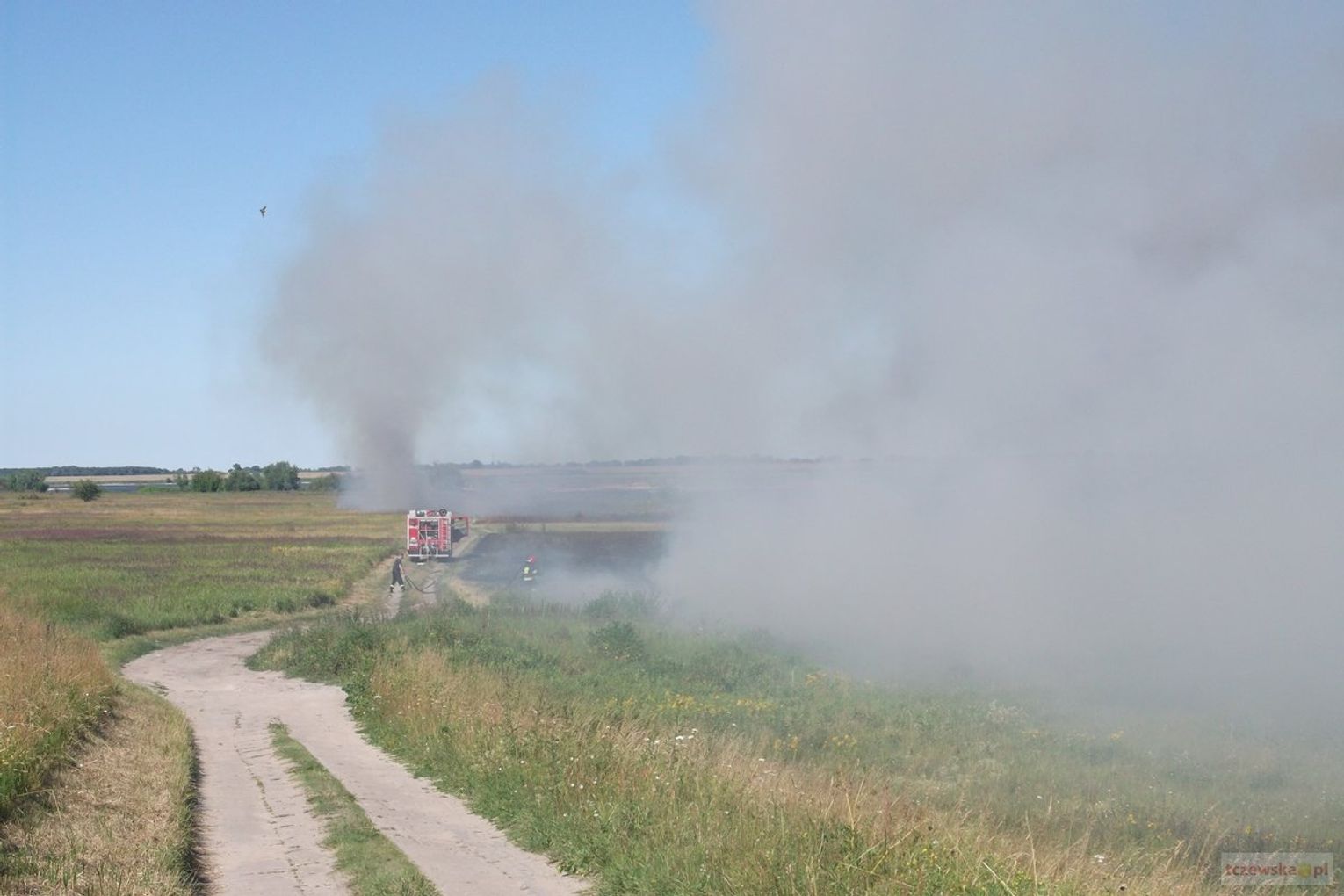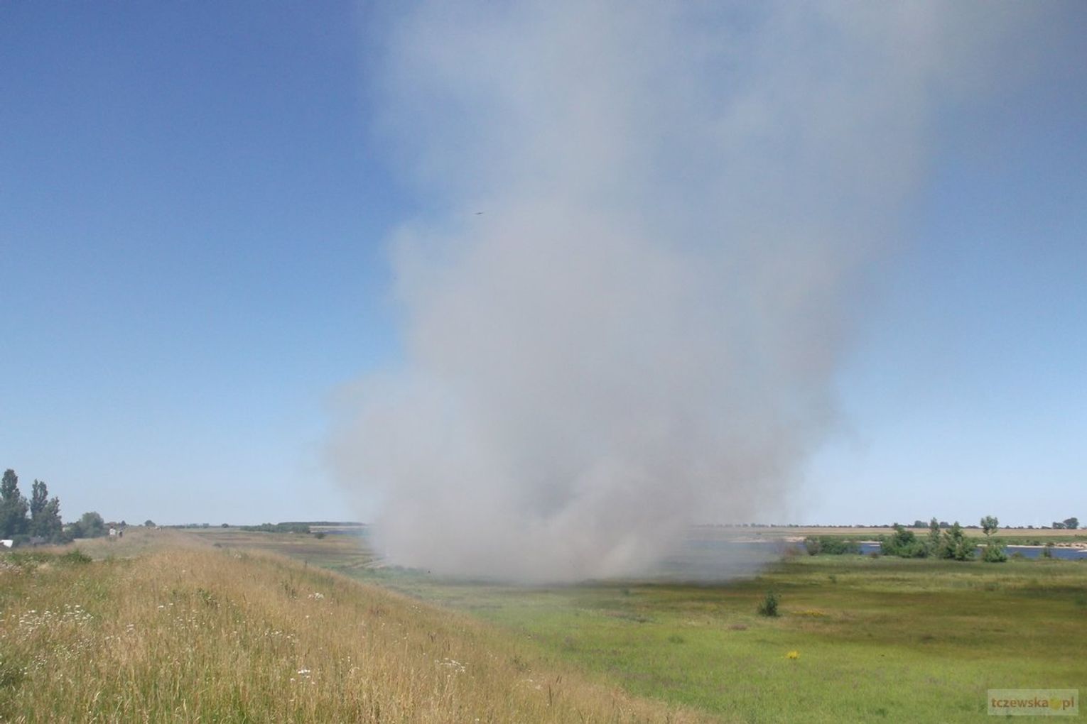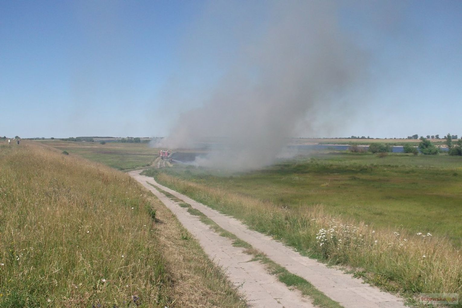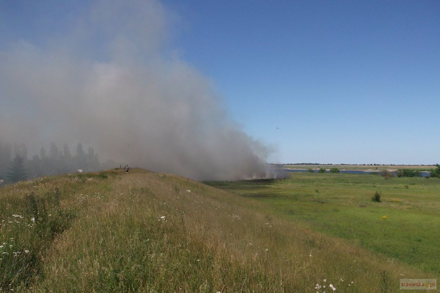 2 lipca około godz. 16.00 Straż Pożarna brała udział w gaszaniu podpalonej trawy na d Wisłą na Os. Staszica na wysokości ogródków działkowych.