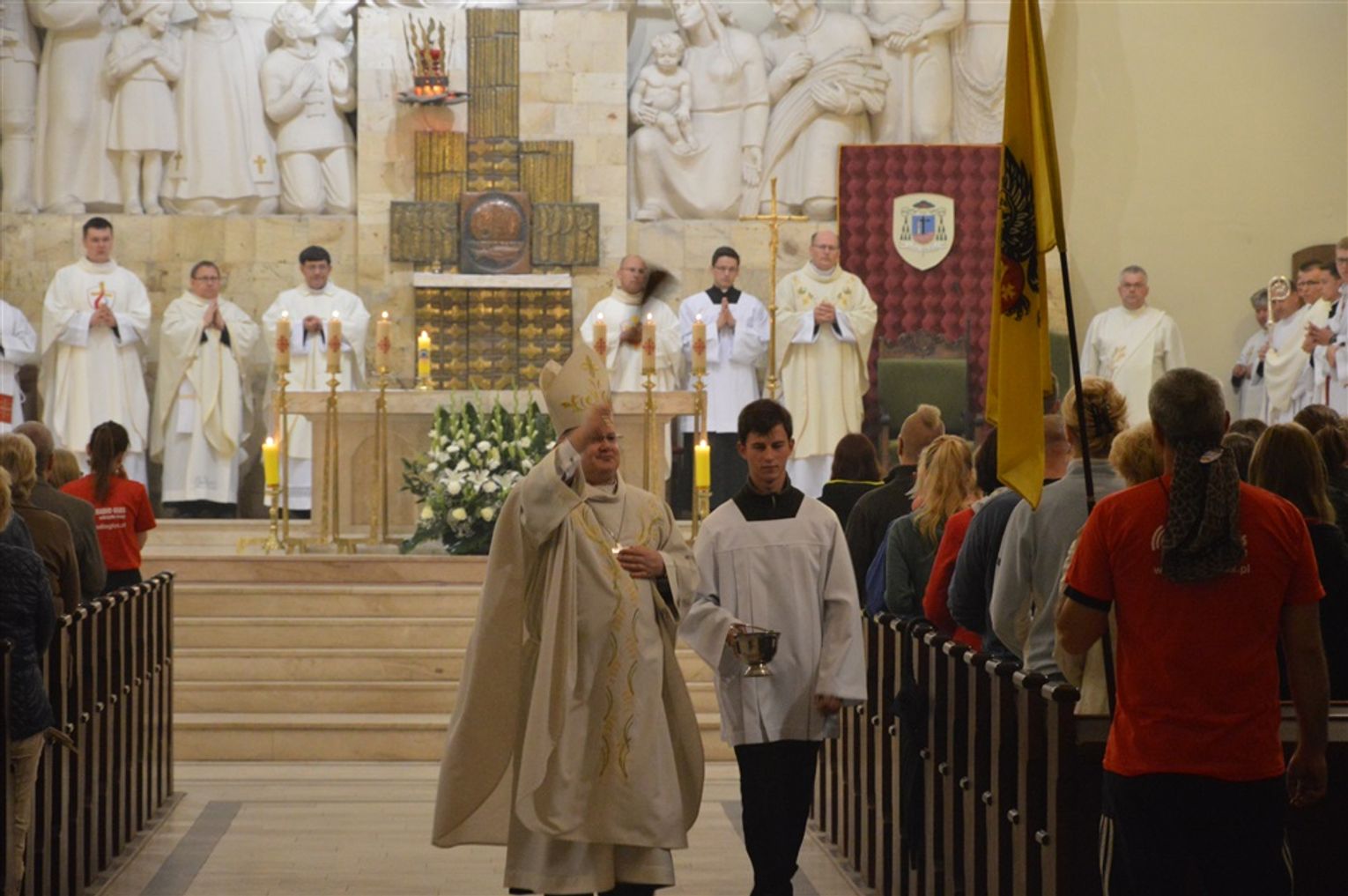 Pielgrzymka rozpoczęła się uroczystą Mszą Świętą pod przewodnictwem Księdza Biskupa Wiesława Śmigla. Po błogosławieństwie końcowym pielgrzymi pożegnali się z bliskimi i wyruszyli w długą drogę, aby zdążyć na Jasną Górę na święto Wniebowzięcia Najświętszej Maryi Panny.Codziennie podczas trwania pielgrzymki w kościele p.w. Św. Wojciecha o godz. 18.00 odmawiana będzie modlitwa różańcowa w intencji pielgrzymów.