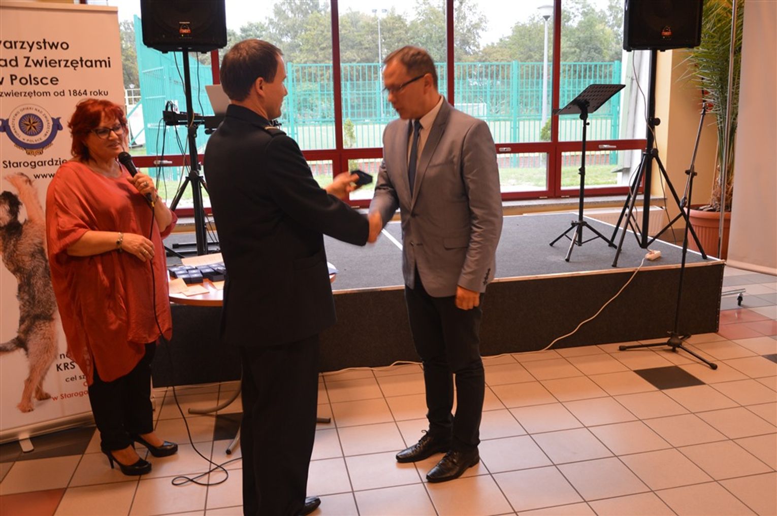 Nastąpiło dziś uroczyste otwarcie wystawy z okazji 150-lecia działalności Towarzystwa Opieki nad Zwierzętami w Polsce. Wystawę oglądać będzie można od 16 września w Miejskim Ośrodku Sportu i Rekreacji w Starogardzie Gd. (hala im. Andrzeja Grubby). Przedstawiciele TOZu zaprezentowali krótki i poruszający film o losach zwierząt w Polsce, a także przybliżyli historię działalności towarzystwa. Wręczone również zostały odznaczenia dla osób i instytucji zasłużonych, a także wygłoszone zostały przemówienia okolicznościowe.