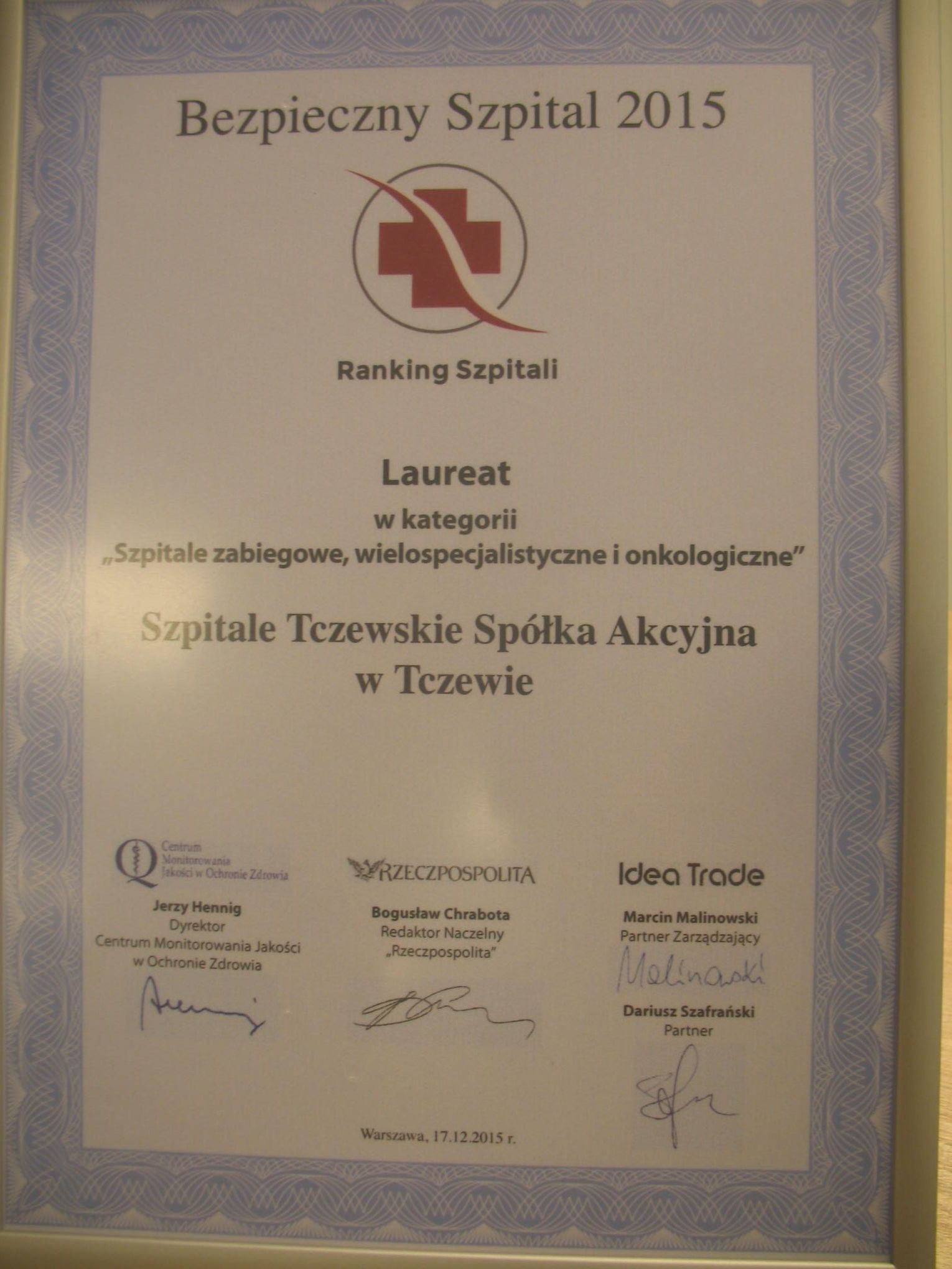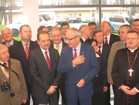 Szpitalny łącznik, którego budowa trwała 1,5 roku w końcu otwarty! Pierwsi pacjenci będą korzystać z budynku oraz nowoczesnego sprzętu tuż po Nowym Roku. W piątek (18.12) dokładnie w południe prezes Marzena Mrozek, z ks. biskupem Wiesławem Śmiglem, ministrem Kazimierzem Smolińskim oraz starostą Tadeuszem Dzwonkowskim przecięli wstęgę u drzwi do izby przyjęć, czym symbolicznie rozpoczęli funkcjonowanie nowej części tczewskiej lecznicy. Końcówka 2015 r. to ważny moment w całej historii szpitala. Przez ponad rok dobudowano 1800 m/kw. powierzchni, na której znalazła się szpitalna izba przyjęć, blok operacyjny z trzema salami, oddział anestezjologii i intensywnej terapii oraz dział sterylizacji. Koszt inwestycji to 19,2 mln zł (w tym 6,5 mln zł ze środków własnych spółki, pozostałe z niskooprocentowanej pożyczki Jessica).