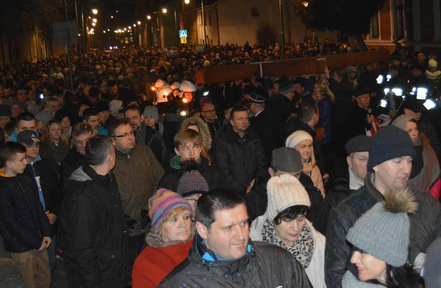 Nabożeństwo rozpoczęło się o godz. 20 na parkingu przy ul. Łaziennej. Następnie Droga Krzyżowa przeszła ulicami: Łazienną, kard. Wyszyńskiego, Sambora, Zamkową i Okrzei, do pl. Hallera, gdzie zlokalizowano ostatnie stacje Męki Pańskiej. Kilkumetrowy, ciężki krzyż w asyście strażaków nieśli m.in. samorządowcy miasta i powiatu, przedstawiciele grup modlitewnych, kluby, harcerze oraz uczniowie i nauczyciele. Nabożeństwo zakończyło się w farze wspólną modlitwą. Słowo do wiernych skierował ksiądz biskup diecezjalny, życząc radosnych świąt wielkanocnych.