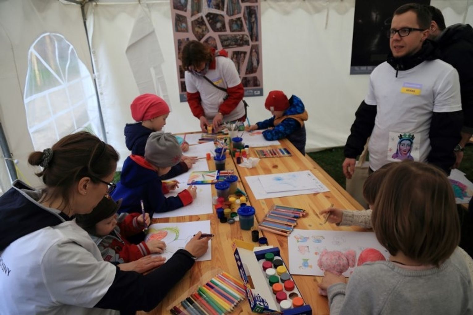 Wielką atrakcją dla dzieci i młodzieży były warsztaty prowadzone przez weekend. W programie była m.in. budowa sklepienia, układanie mozaiki, ale również kolorowanie Madonny według własnego uznania czy własnoręczne wykonanie torby.