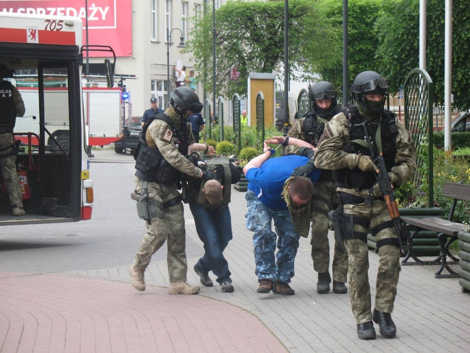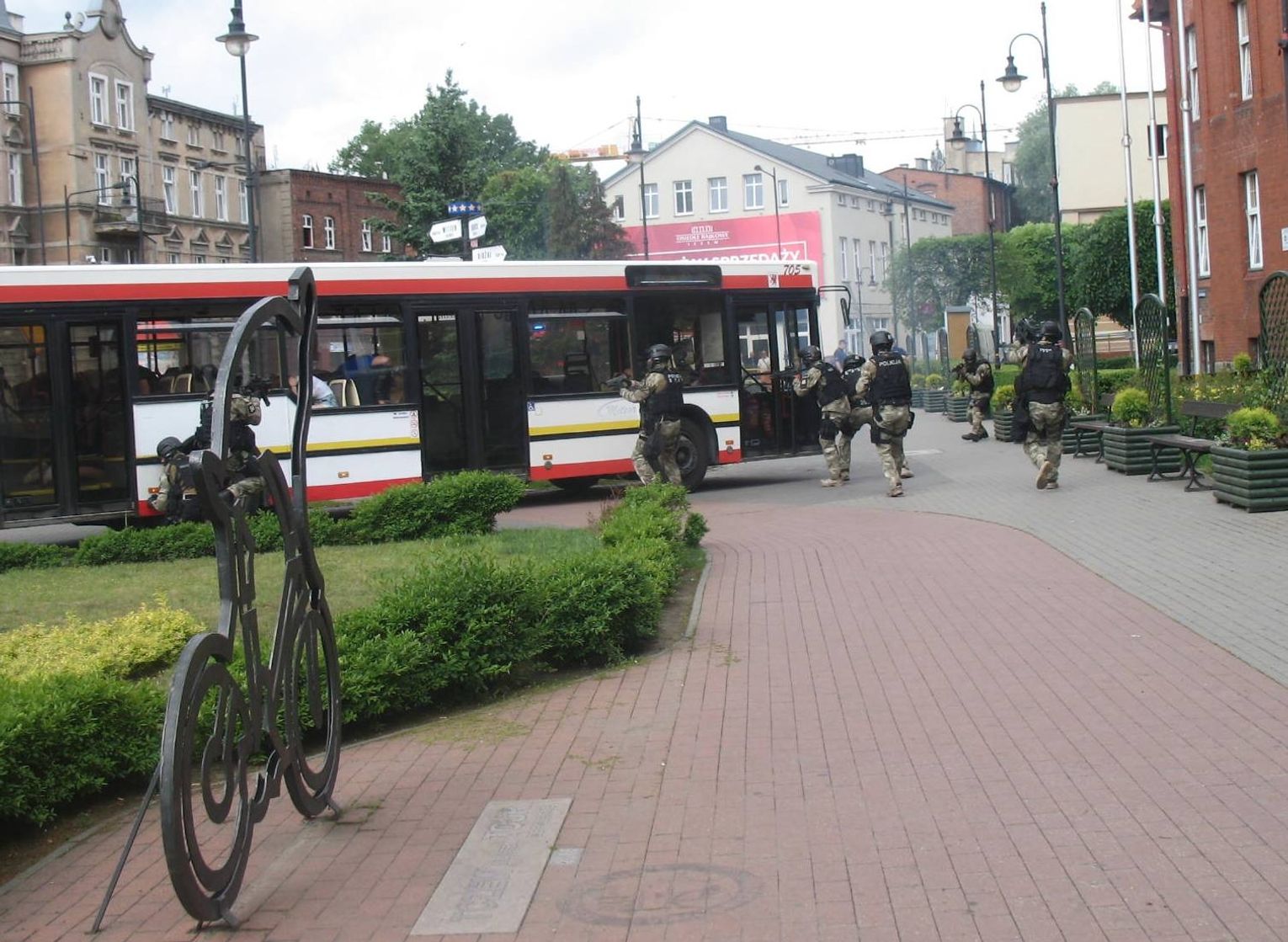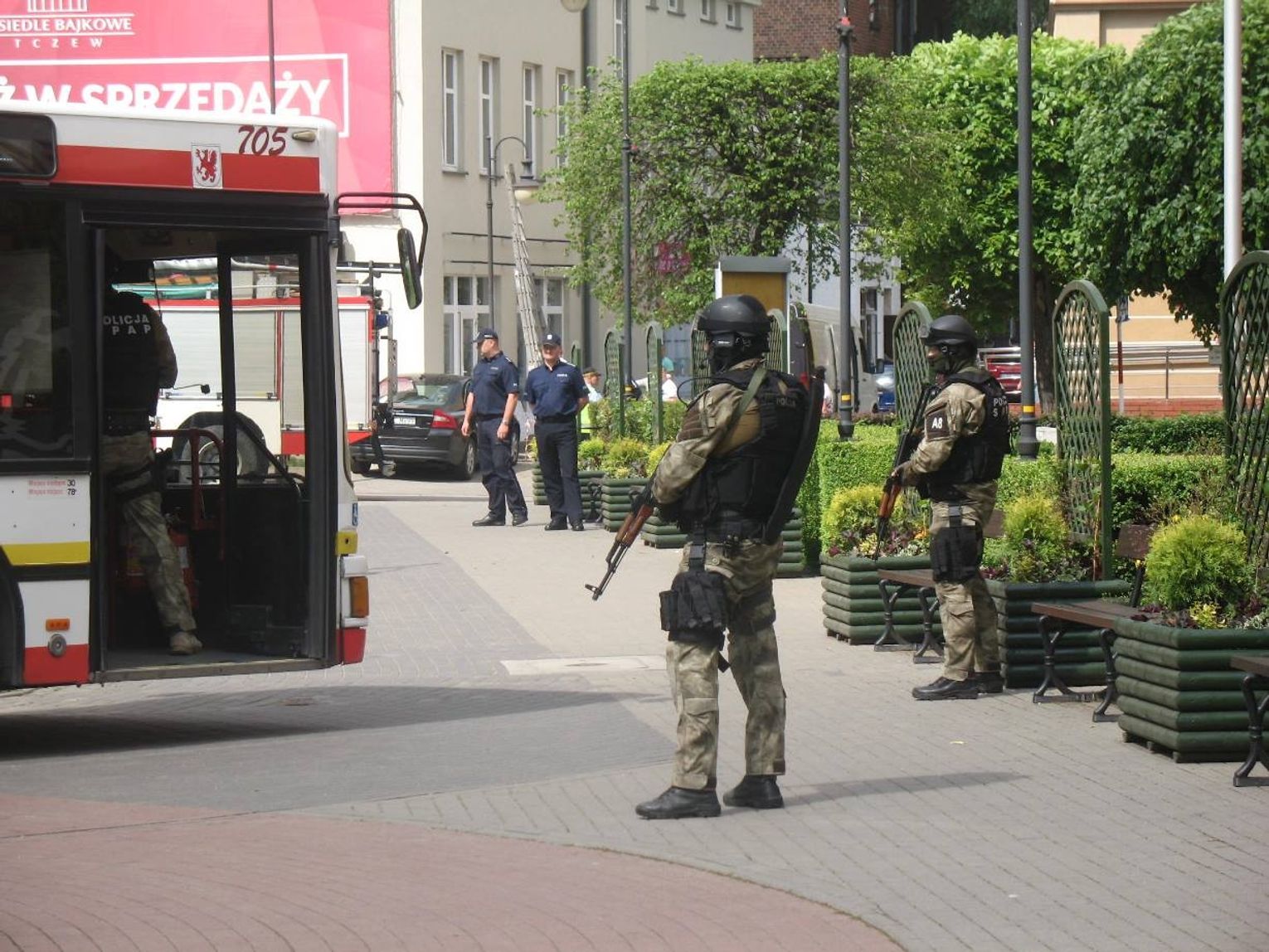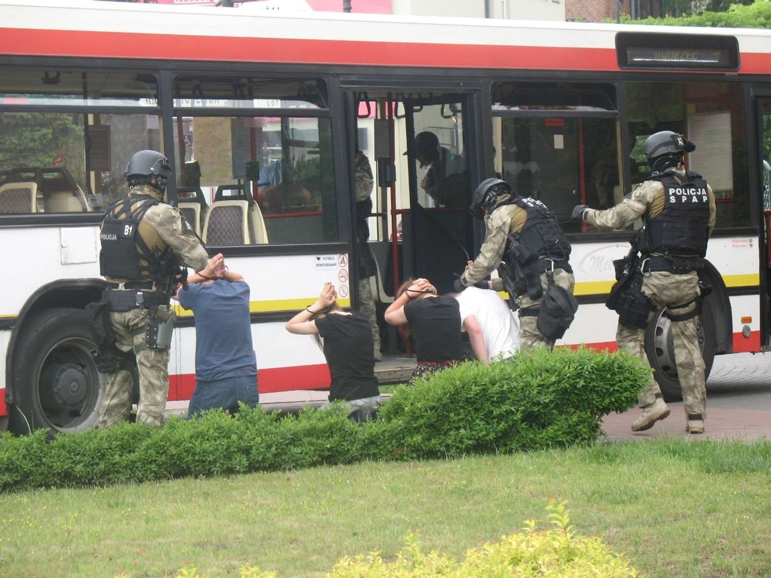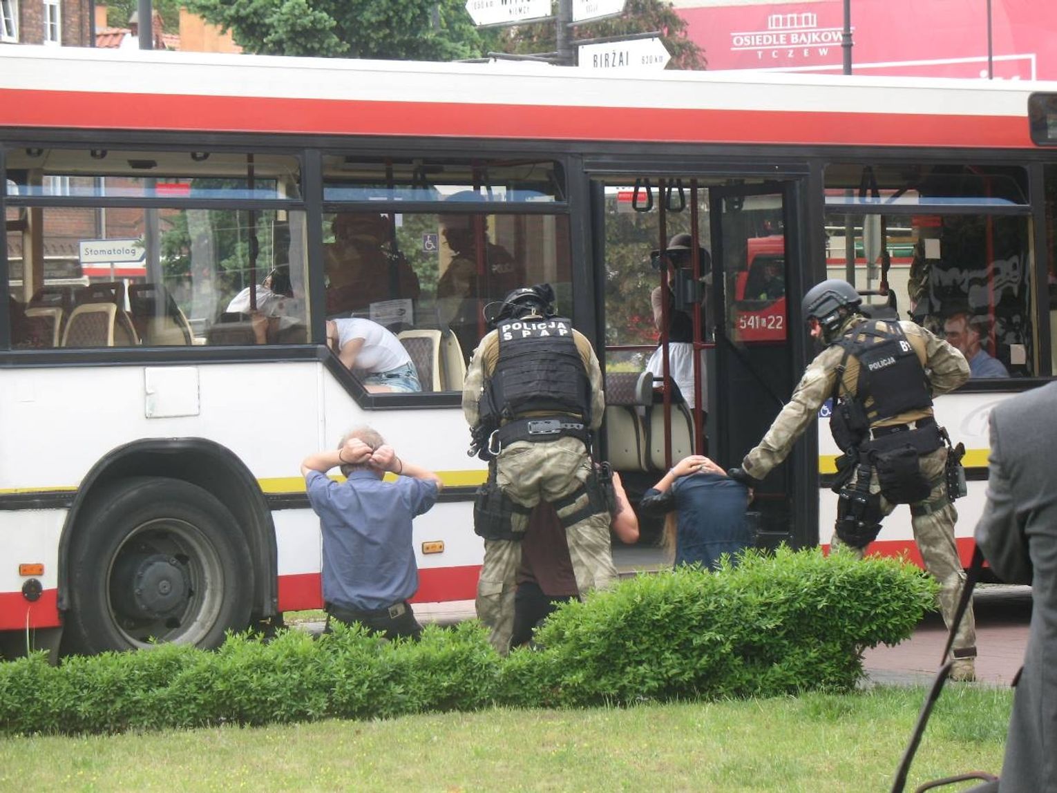Czyżykowo, godz. 10, autobus linii nr 3 rusza w stronę Centrum. Zamaskowany mężczyzna będący wewnątrz pojazdu wyciąga broń i porywa go wraz z 20 pasażerami. Uprowadzony pojazd zmierza w kierunku centrum. Po nieudanych negocjacjach pod tczewskim magistratem do akcji wkracza policyjna jednostka SASP. Na szczęście to tylko ćwiczenia, które śledziło kilkudziesięciu mieszkańców. Huk, dym i okrzyki towarzyszyły uczniom tczewskiego liceum, którzy wcielili się w role zakładników. Według scenariusza, pojazd z młodzieżą zmierzającą w stronę dworca miał zostać porwany. Następnie w eskorcie policji dociera przed tczewski ratusz, gdzie mają miejsce negocjacje z porywaczami. Niestety, te zakończyły się fiaskiem. Do akcji wkracza Samodzielny Pododdział Antyterrorystyczny Policji z Gdańska, który za cel ma „zneutralizować” cel. Po sprawnie przeprowadzonej akcji porywacze (okazało się, że jest ich dwóch) zostali obezwładnieni a zakładnicy w bezpieczny sposób ewakuowani.