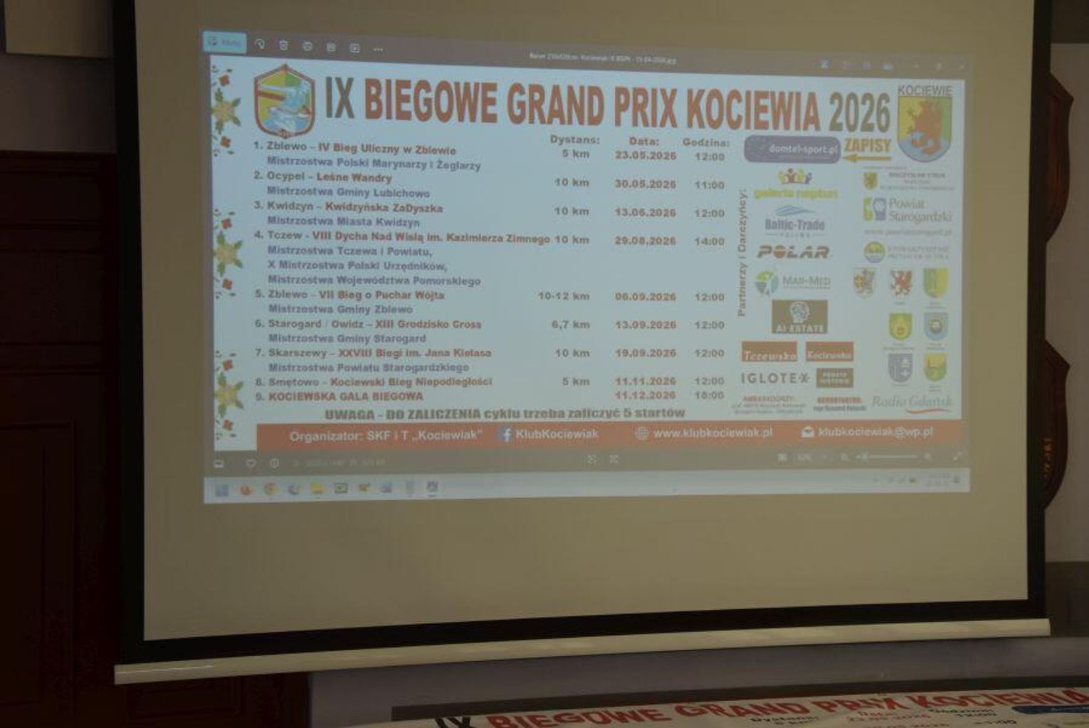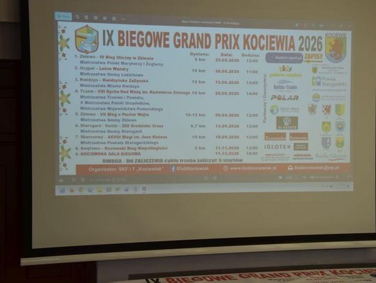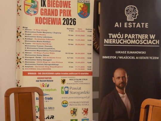 W siedzibie Starostwa Powiatowego w Starogardzie Gd. zainaugurowano kolejną edycję jednego z najważniejszych cykli biegowych w regionie. Podczas konferencji zaprezentowano plany organizacyjne IX Biegowego Grand Prix Kociewia 2026. Poznaliśmy trasy biegowe w poszczególnych regionach, ich atrakcje oraz specjalne niespodzianki sponsorów dla zawodników i kibiców podczas zawodów od. Gospodarzem wydarzenia był Ryszard Różycki, prezes Stowarzyszenia Klub Kociewiak, który wraz z przedstawicielami gmin zachęcał do aktywnego udziału w całym sportowym cyklu biegowym i do odkrywania uroków Kociewia, ale i Powiśla, dzięki zaangażowaniu miasta Kwidzyn.