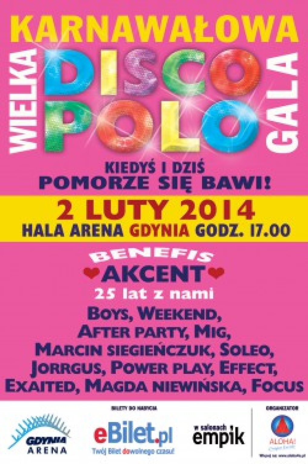 W niedzielę, 2 lutego, Gdynia Arena wypełni się po brzegi miłośnikami disco polo. Na fanów tego rodzaju muzyki czekają nie lada atrakcje – na scenie pojawią się m.in. niezwykle popularne zespoły „Boys” i „Weekend”, a więc z pewnością nie zabraknie takich superprzebojów jak „Jesteś szalona” i „Ona tańczy dla mnie”. Ponadto jubileusz 25-lecia działalności świętować będzie podczas tego koncertu znany i lubiany zespół „Akcent”.