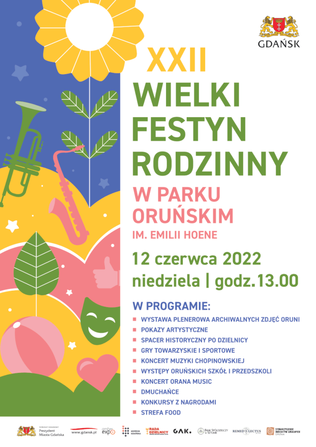 Wydarzenie wraca po 2-letniej przerwie, a tradycja festynów rodzinnych w Parku Oruńskim sięga 1998 roku. Festyn jest skierowany do mieszkańców dzielnicy Orunia-Św.Wojciech-Lipce oraz całego Gdańska i regionu, a gromadzi co rok około 1000 uczestników. Organizacji festynu, jak co roku podjął się szereg organizacji i działaczy zrzeszonych w Stowarzyszeniu Inicjatyw Lokalnych "Orunia" we współpracy z Urzędem Miejskim w Gdańsku, Międzynarodowymi Targami Gdańskimi, Amber Expo oraz Radą Dzielnicy i Strażą Miejską.