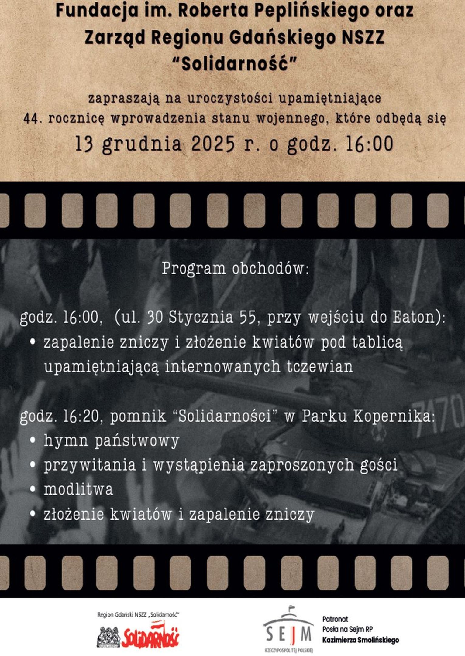 13 grudnia będziemy wspominać, podobnie ja w całej Polsce także w Tczewie, tragiczną rocznicę wprowadzenia stanu wojennego, trwającego w latach 1981-1983.
