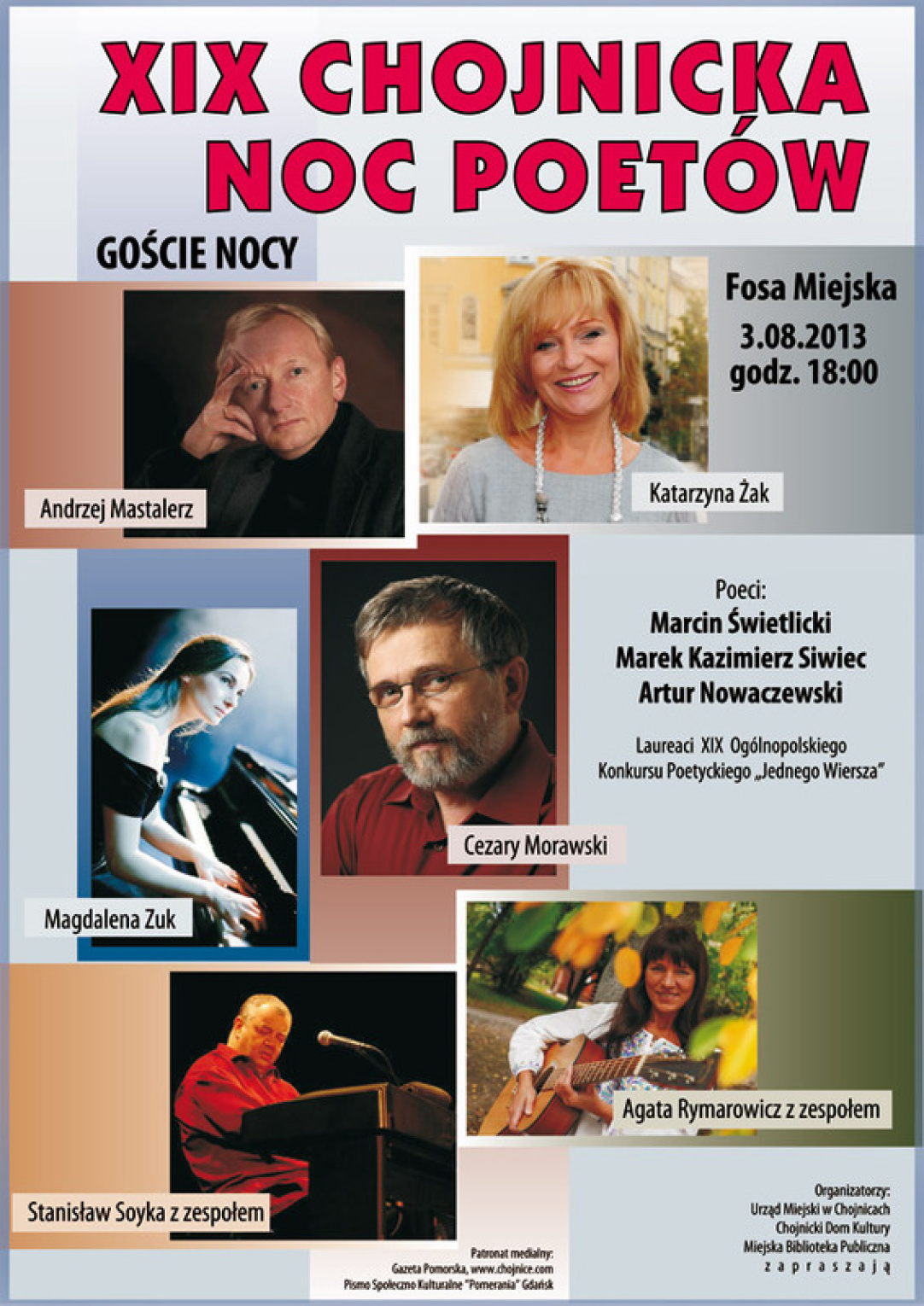 3 sierpnia 2013 r. od godz. 18:00 w Fosie Miejskiej w Chojnicach odbędzie się XIX Chojnicka Noc Poetów.